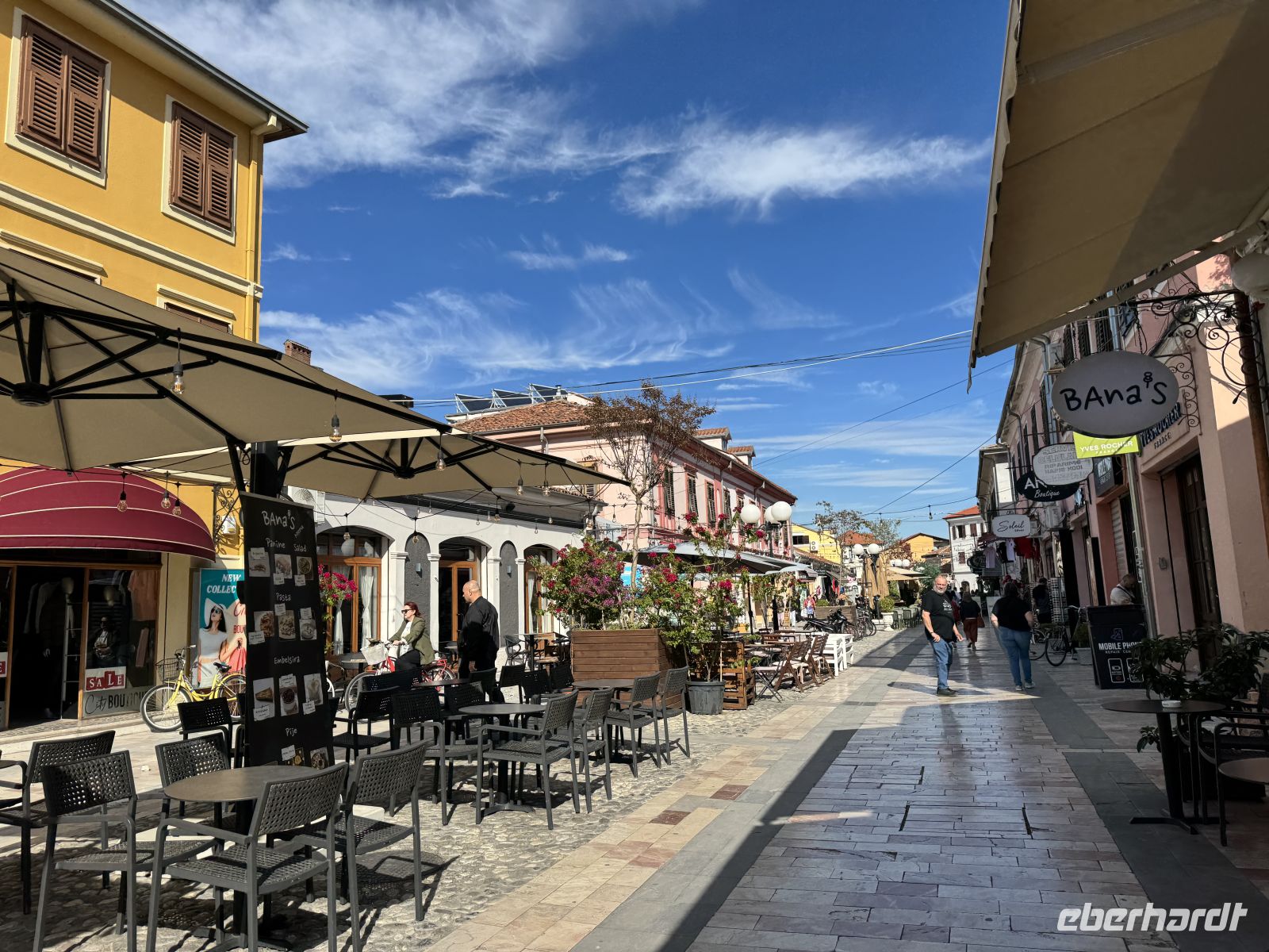 Durch die liebevoll restaurierte Altstadt schlendern wir zum Zentrum der Stadt, wo wir in einem der vielen Straßencafés eine Mittagspause einlegen. Einige der Gäste probieren das typische Blätterteiggebäck „Byrek“, das es in einer kleinen Bäckerei am Ende der Fußgängerzone zu kaufen gibt. Gut geschmeckt hat uns auch das leckere Eis, dass es wir in einer der vielen kleinen Eisdielen probieren konnten. Auch heute meinte es das Wetter wieder sehr gut mit uns. Bei herrlichem Sonnenschein begaben wir uns ausgeruht und gesättigt zurück nach Tirana.