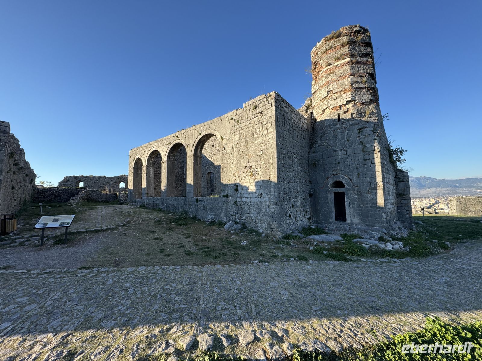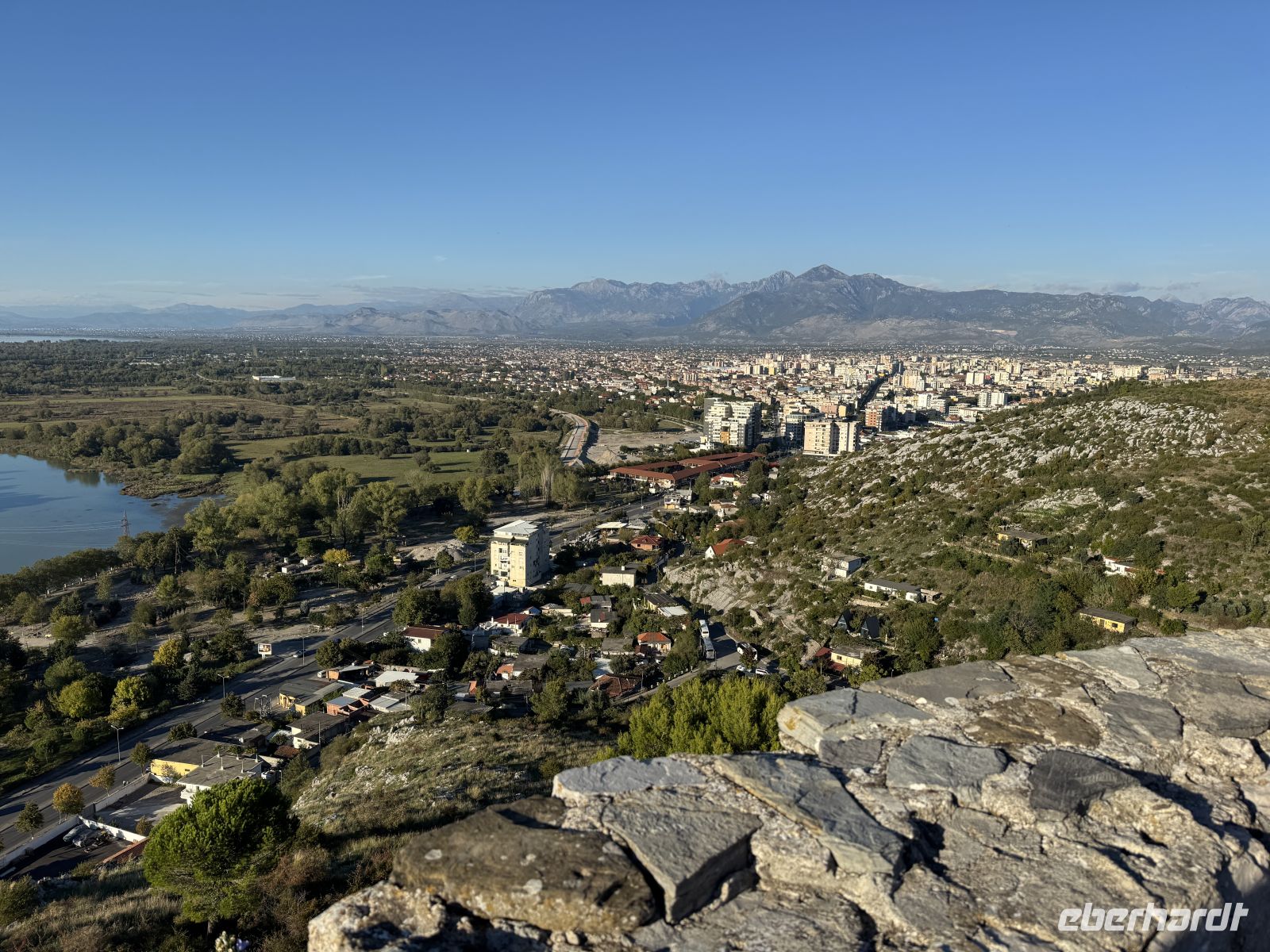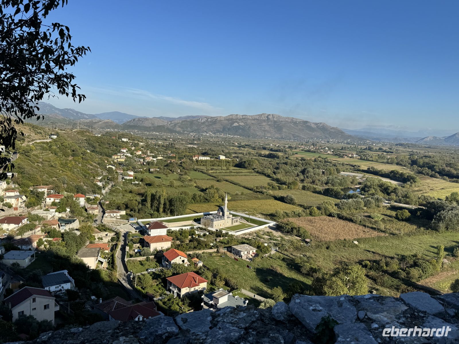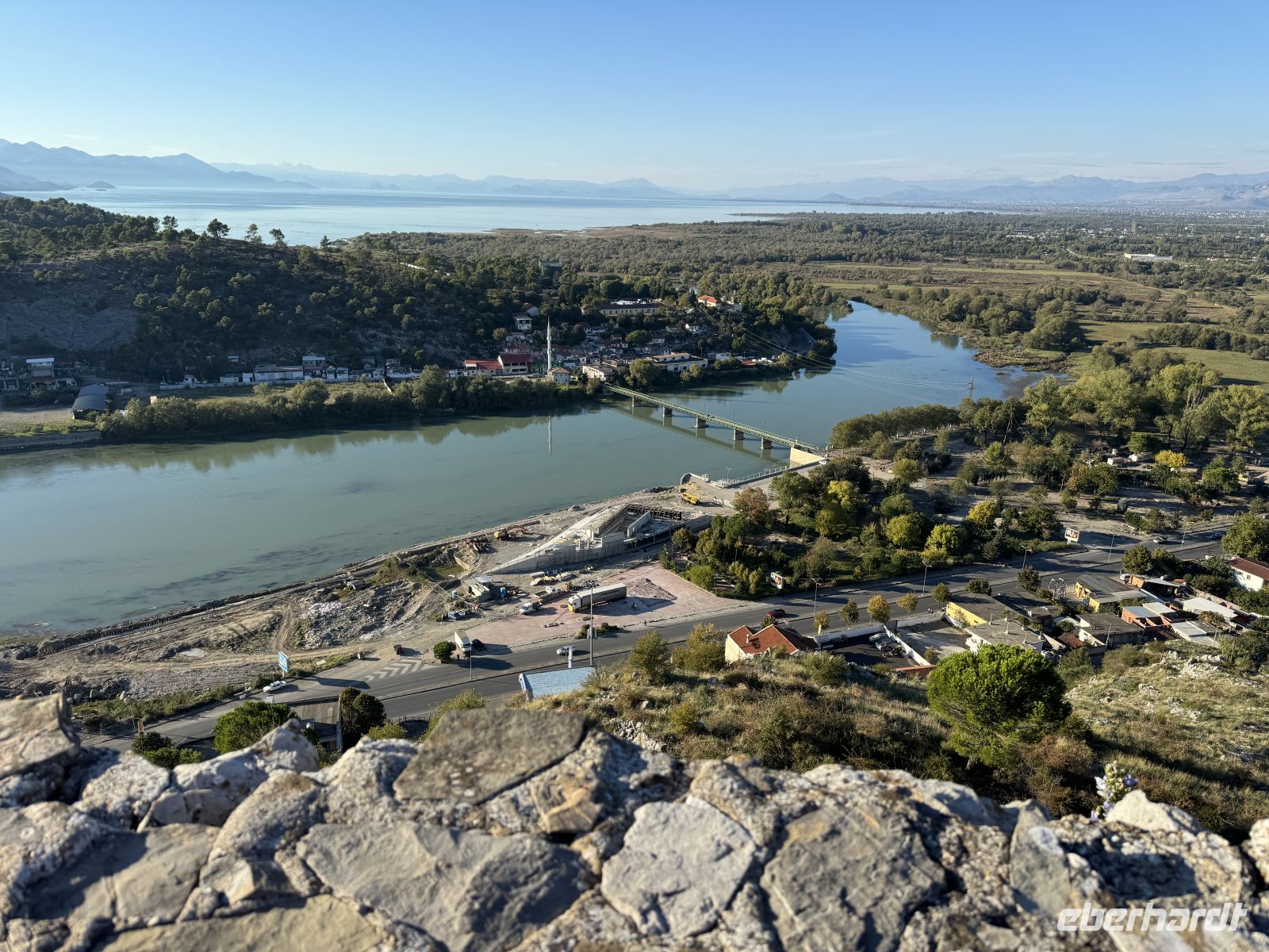 Angekommen in Shkodra begeben wir uns zu Fuß auf den Hügel steil über der Buna zwischen den Flüssen Buna und Drin auf die Burgruine Rozafa. Die Burg hat bis in die Neuzeit die Geschicke der Stadt bestimmt. Ihre Lage erlaubte wichtige Verkehrswege auf dem Fluss und an Land sowie später die Brücken zu kontrollieren, und bot über Jahrtausende Sicherheit.
