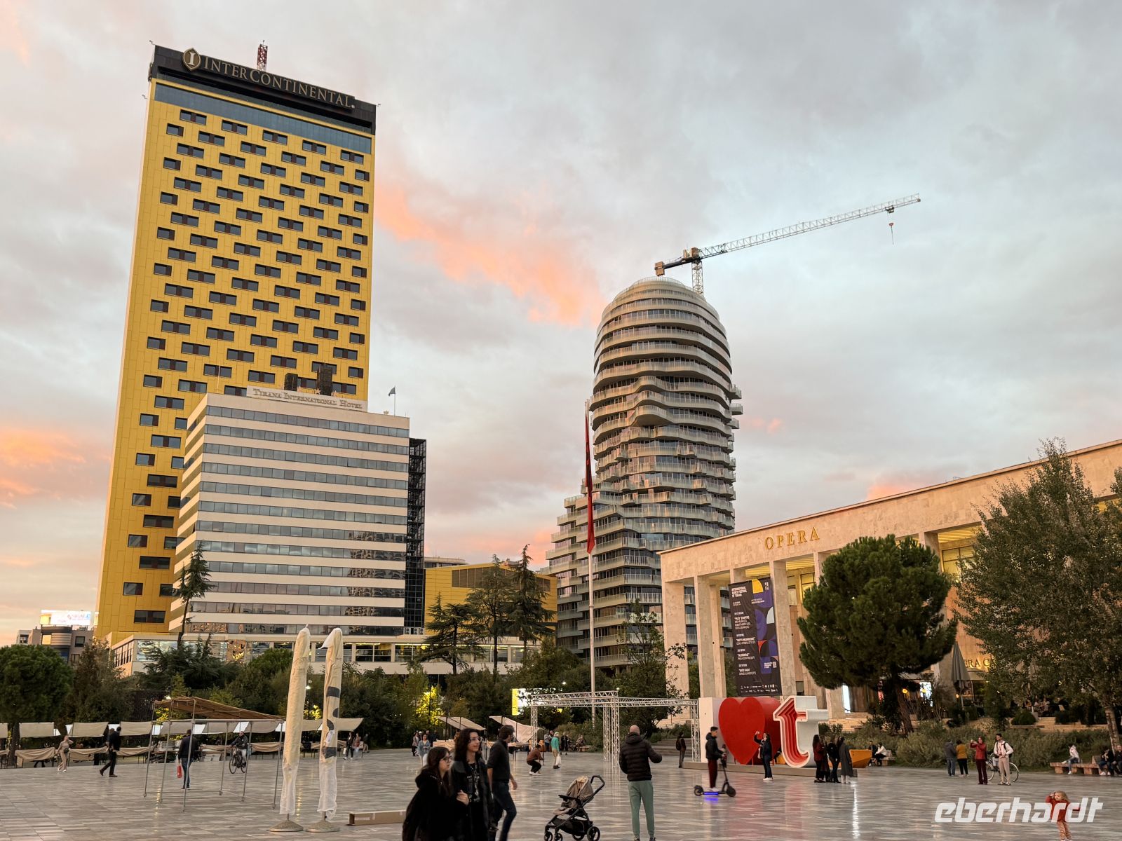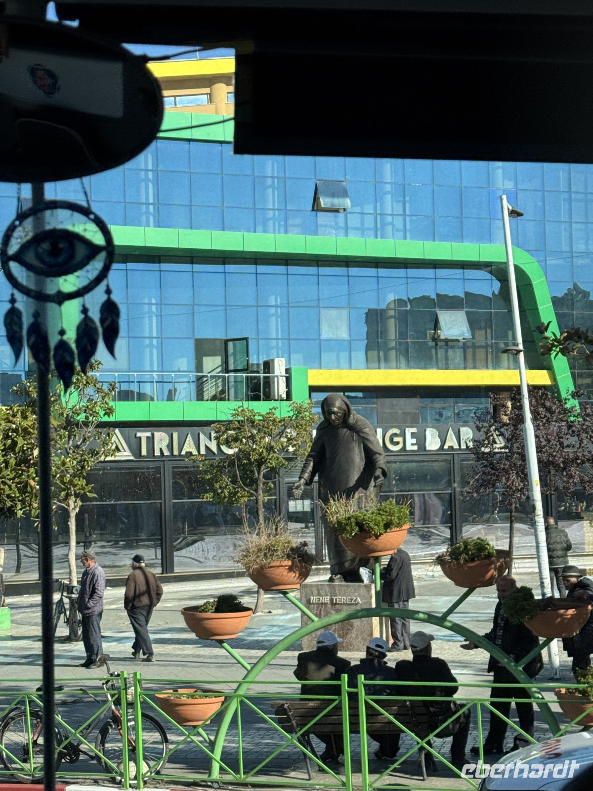 Etwas müde von der doch ziemlich langen Anreise aber bestens gelaunt fahren wir bei strahlendem Sonnenschein zu unserem Hotel im Zentrum Tiranas.