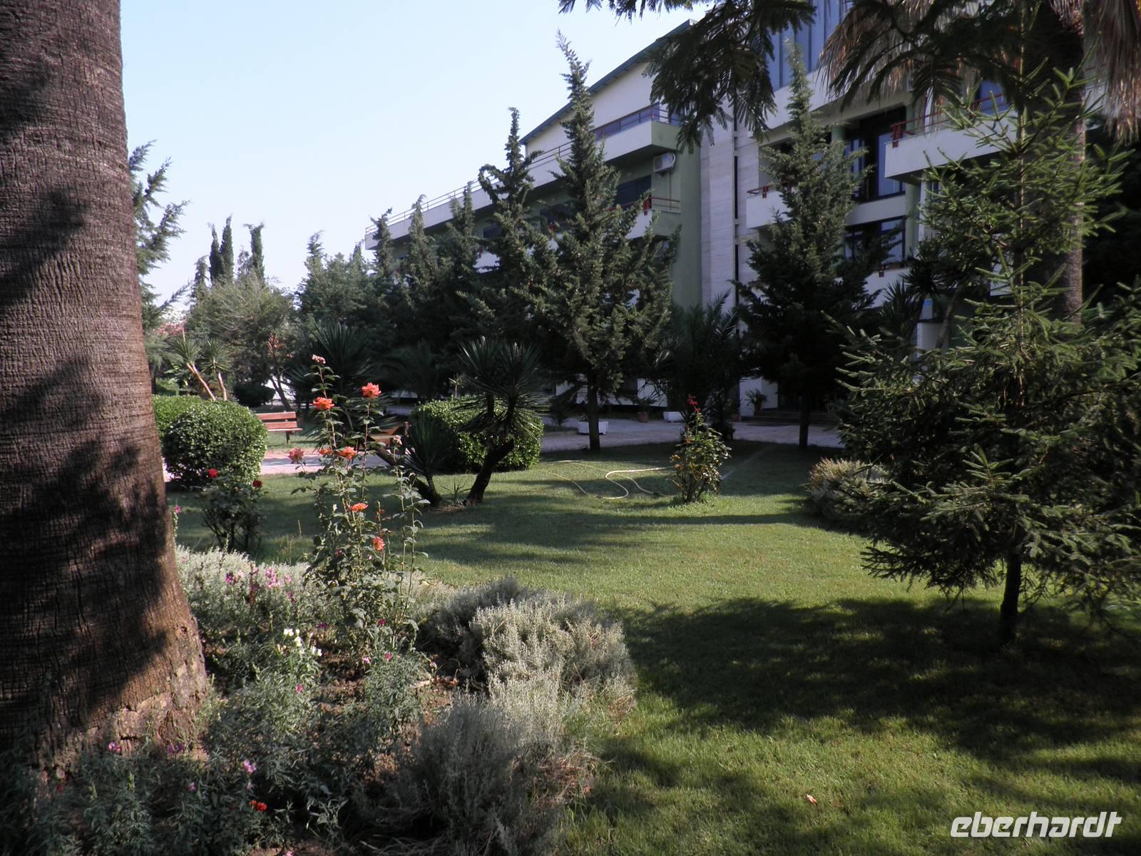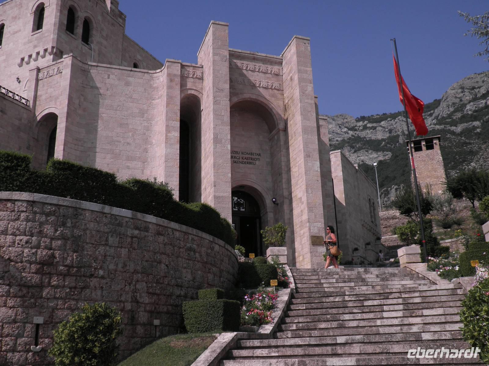 Am letzten Tag unserer Rundreise stand noch einmal die Geschichte Albaniens mit einem seiner bedeudensten Volkshelden, Skanderbeg, auf dem Programm. Nach einem kurzen Besichtigungsstopp am Kloster Ardenica erreichten wir in den Mittagsstunden Kruje. Kruje ist die Stadt Skanderbegs. Skanderbeg vereinte hier die albanischen Stämme im Kampf gegen die Osmanen. Nach Jahren erfolgreichen Widerstandes mußten die Albaner letztendlich der Übermacht der Osmanen Tributzollen und verloren ihre Unabhängigkeit. In Erinnerung an diese Zeit wurde das Skanderbegmuseum errichtet. Der Besuch des Museums und der anschließende Bummel über den Basar gehörten zu den Höhepunkten des Tages. Das Abendessen nahmen wir in einem Strandrestaurant in Durres ein. Anschließend fuhren wir zu dem Hotel "Tropical Resort. Einem Ferienkomplex der eigentlich zu einem längeren Verweilen einladet."