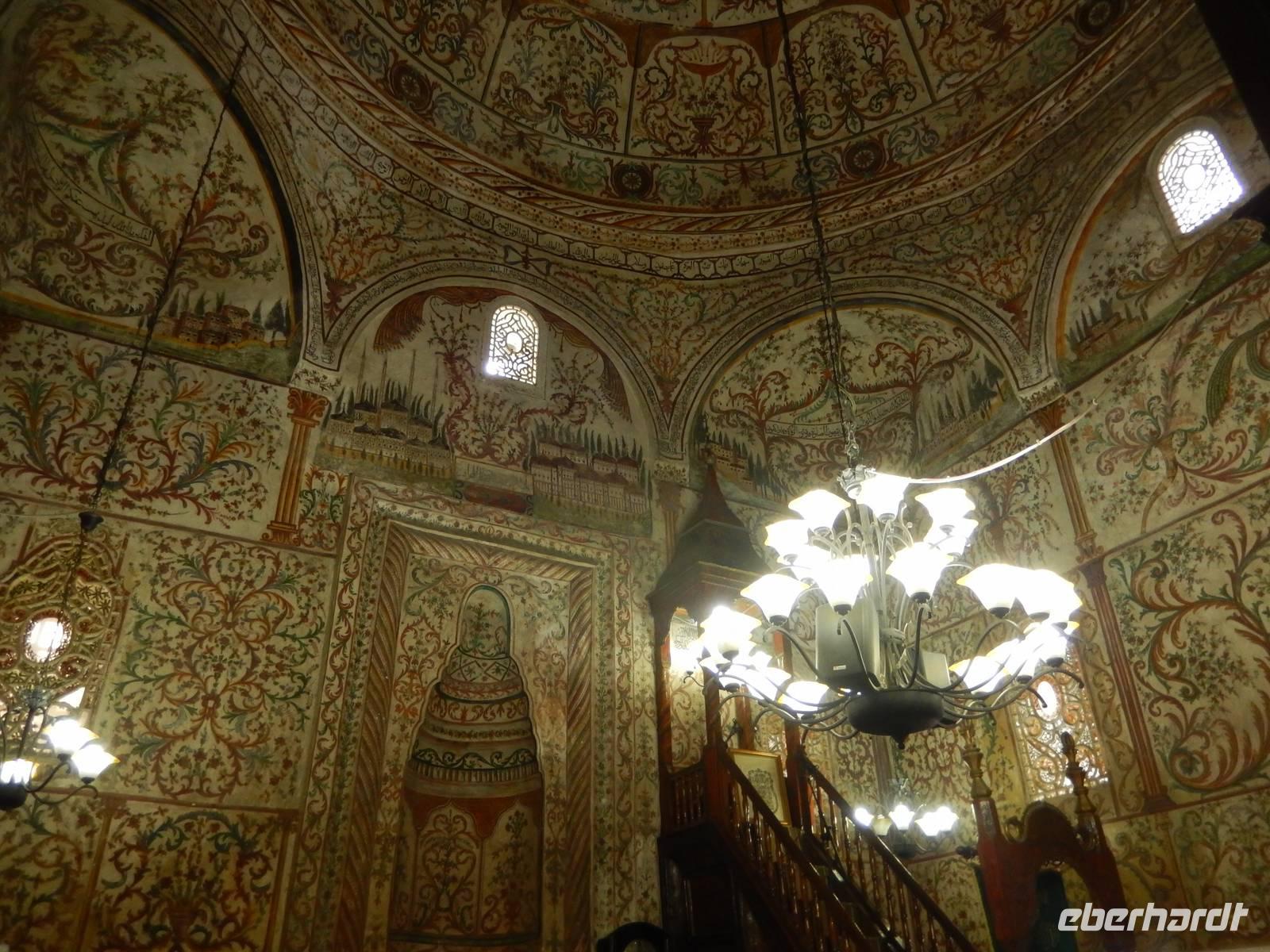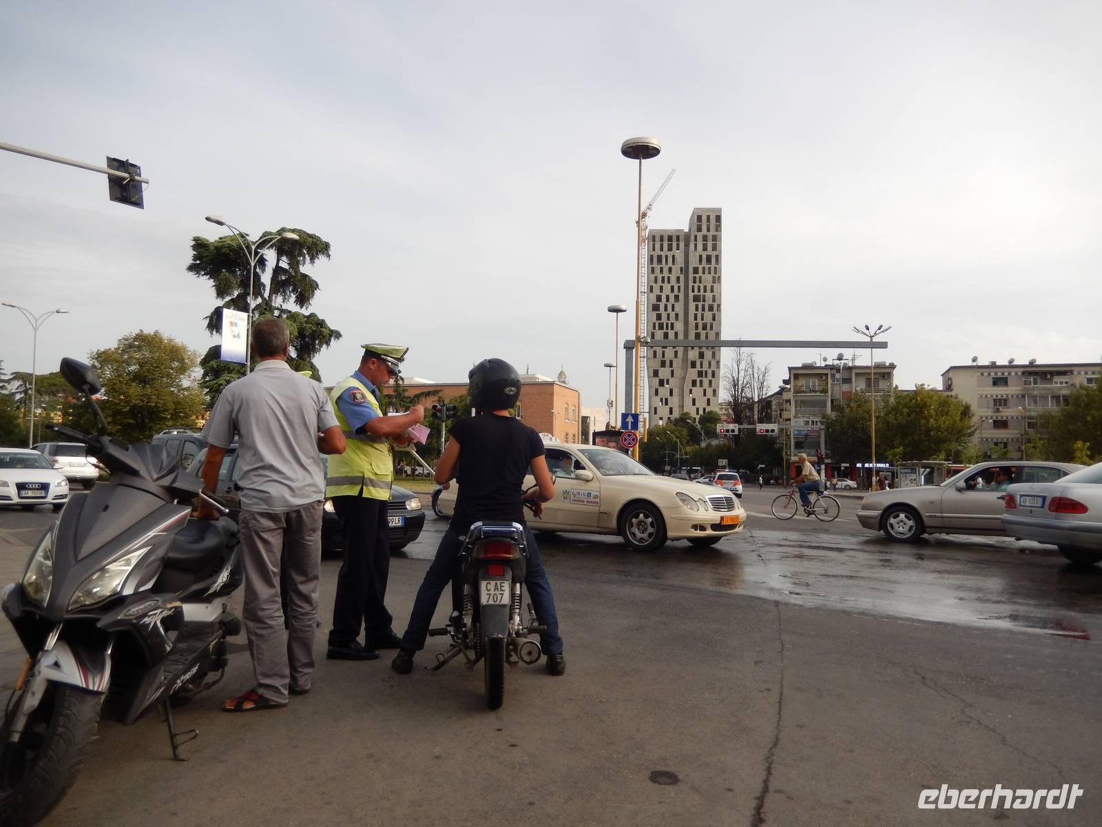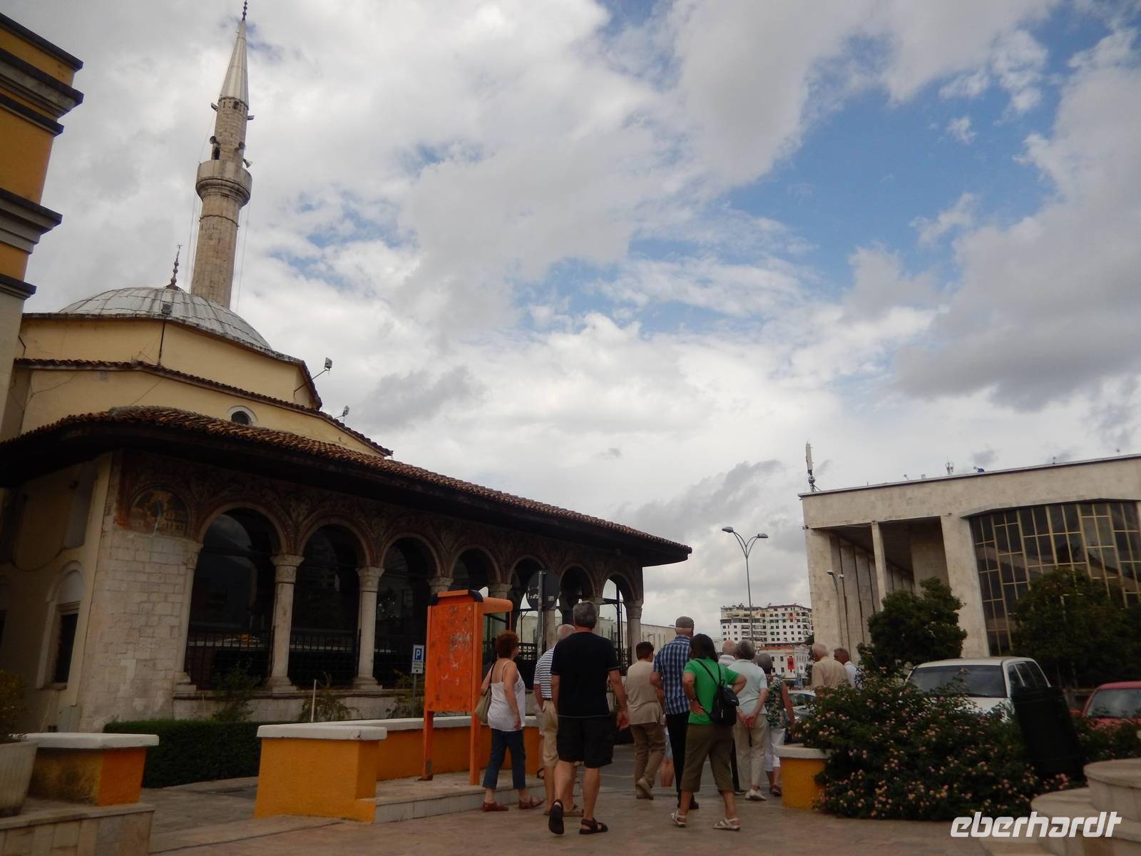 Nach einer erholsamen Nacht und dem ersten Frühstück auf albanischen Grund, brachen wir zu unserer Stadtrundfahrt und Stadtrundgang auf. Koli war hier in seinem Element und brachte uns die Geschichte sowie die Sehenswürdigkeiten der Hauptstadt näher. Wir kamen am Skanderbeg Platz vorbei, den schmucken italienischen Häusern, der Pyramide von Enver Hoxha (welche er als Grabstätte bauen ließ) und liefen anschließend noch über die Gerberbrücke (Ura e Tabakeve), diese stammt aus dem 18. Jahrhundert. Zum Abschluss unseres Stadtrundganges besuchten wir noch die Et´hem-Bey Moschee. Hier durften wir sogar einen Blick nach drinnen werfen.