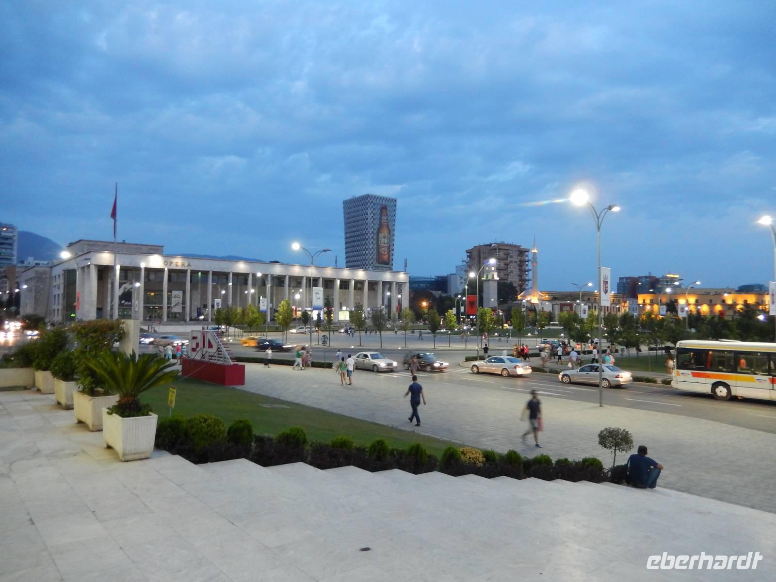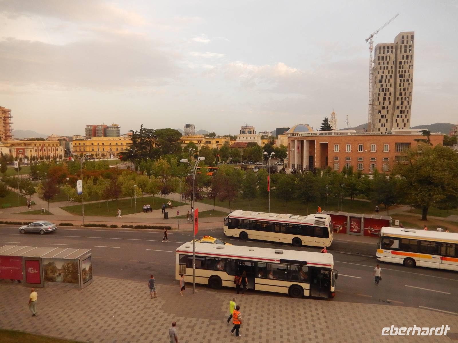 Um kurz nach 5 Uhr morgens traf sich eine kleine Reisegruppe von nur 14 Personen, plus Reisebegleiter am Flughafen in Dresden. Der Grund dieses zeitigen Treffens sollte das höchst gelegenste Land Europas sein - Albanien. Dadurch, dass wir schon alle unsere Bordkarten ausgedruckt hatten ging der Check-In sehr schnell. So gaben wir nur noch unsere Koffer ab und stiegen kurze Zeit später schon in den Flieger nach München. Dort hatten wir einen sehr guten Anschluss zu unserem Weiterflug sodass wir schon um 10:55 Uhr, albanischen Boden betraten. Hier erwartete uns bereits unser örtlicher Reiseleiter Koli. Da wir heute in Dresden bei 7 Grad gestartet waren, hauten uns die 30 Grad in Albanien fast um. Daher beschlossen wir den Besuch des Nationalmuseums auf den Nachmittag und die Besichtigung der Stadt auf den morgigen Tag in der Früh zu verlegen.