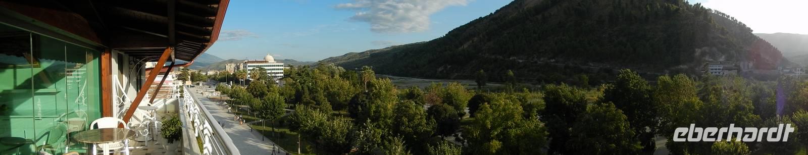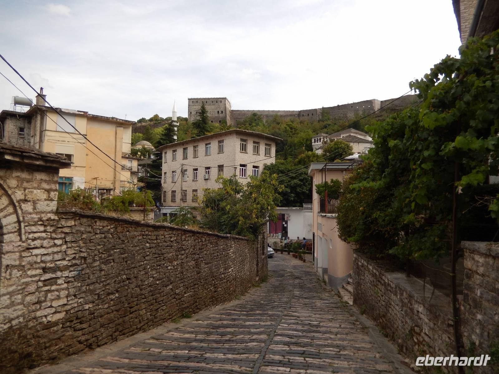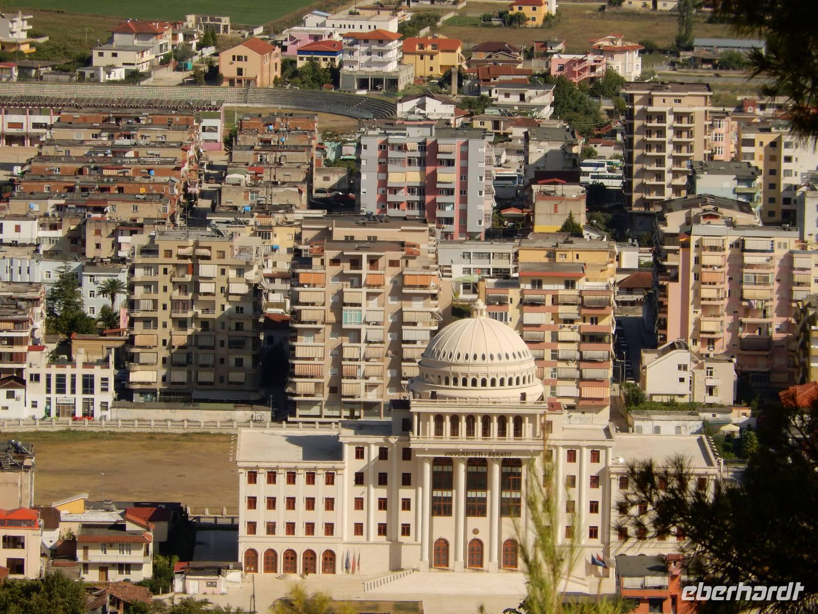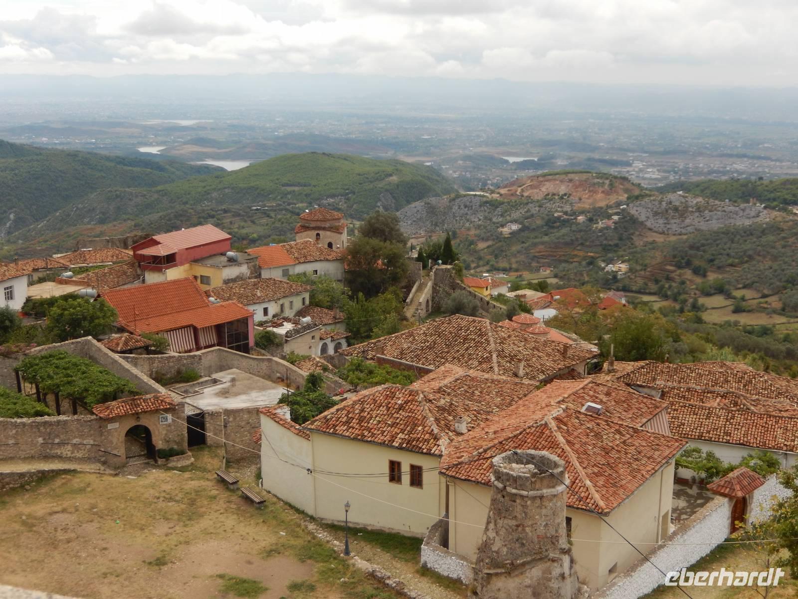 Am Morgen erwartete uns ein Frühstück de luxe. Das Buffet war reichlich gedeckt und wir speisten auf der Dachterrasse und genossen die morgendliche frische Luft. Gegen 9 Uhr verließen wir unser schönes Hotel und Koli schlug vor, einen anderen Weg zu fahren damit wir auch etwas von den Dörfern sehen können. Er erklärte uns auf dem Hinweg nach Gijrokaster die umliegende Landschaft, spielte uns kurz typische einheimische Musik vor und erläuterte uns die Zusammenhänge der umliegenden Länder mit Albanien. In Gijrokaster aßen wir abermals über den Dächern der Stadt, ehe es zu dem Geburtshaus von Enver Hoxha ging. Dieses beheimatet heute ein Ethnografisches Museum. Hier erfuhren wir mehr über die alten Lebensgewohnheiten der Einwohner.