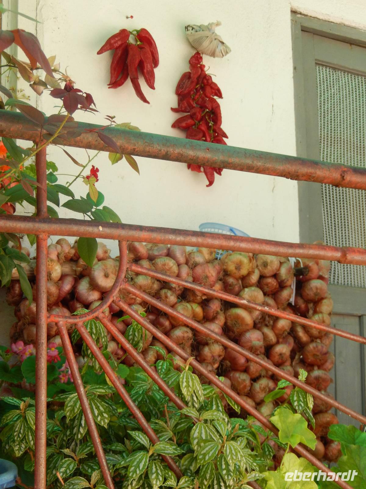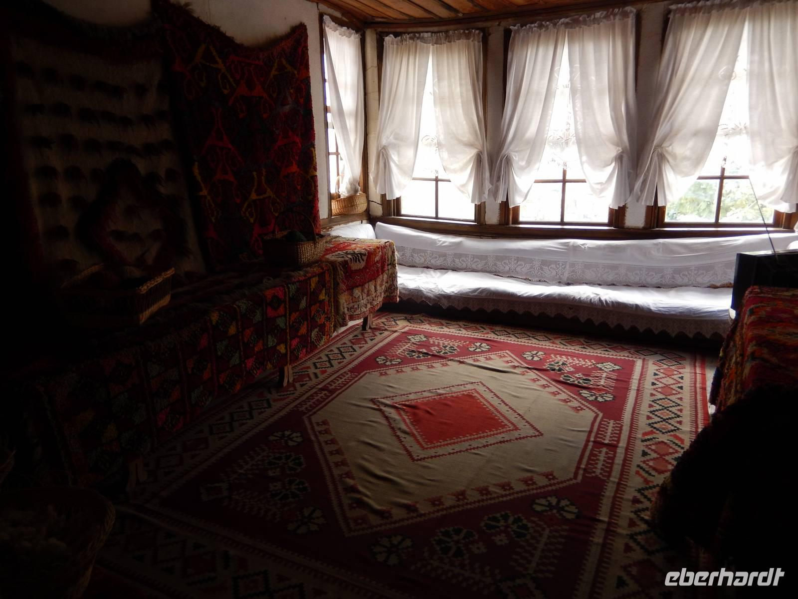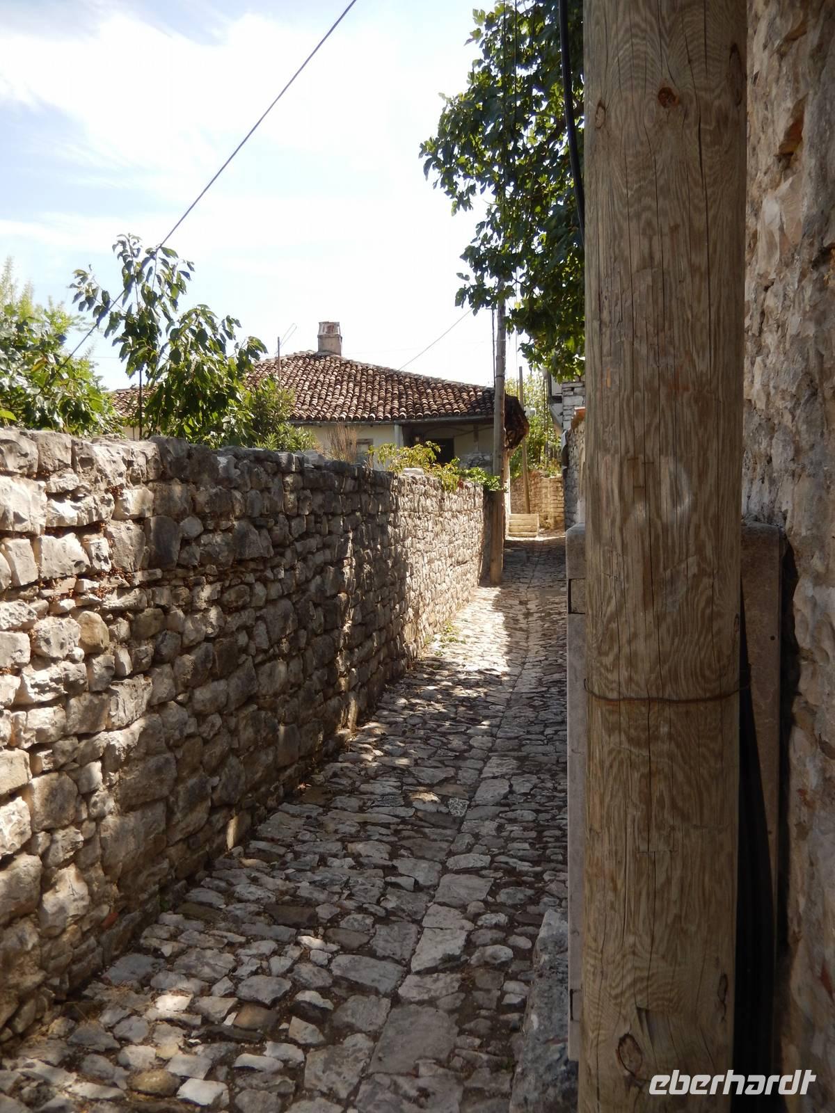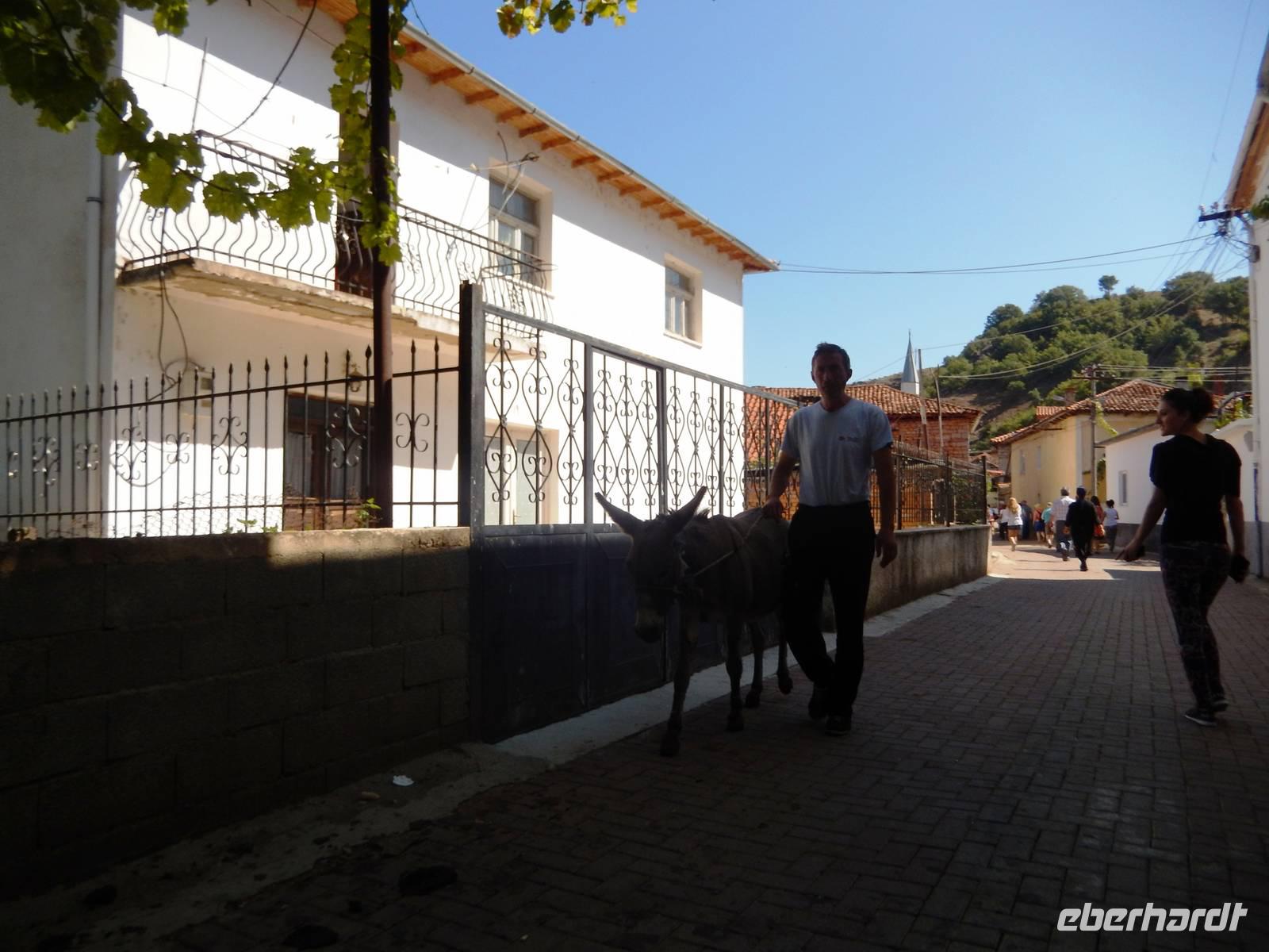Am Morgen erwartete uns ein Frühstück de luxe. Das Buffet war reichlich gedeckt und wir speisten auf der Dachterrasse und genossen die morgendliche frische Luft. Gegen 9 Uhr verließen wir unser schönes Hotel und Koli schlug vor, einen anderen Weg zu fahren damit wir auch etwas von den Dörfern sehen können. Er erklärte uns auf dem Hinweg nach Gijrokaster die umliegende Landschaft, spielte uns kurz typische einheimische Musik vor und erläuterte uns die Zusammenhänge der umliegenden Länder mit Albanien. In Gijrokaster aßen wir abermals über den Dächern der Stadt, ehe es zu dem Geburtshaus von Enver Hoxha ging. Dieses beheimatet heute ein Ethnografisches Museum. Hier erfuhren wir mehr über die alten Lebensgewohnheiten der Einwohner.