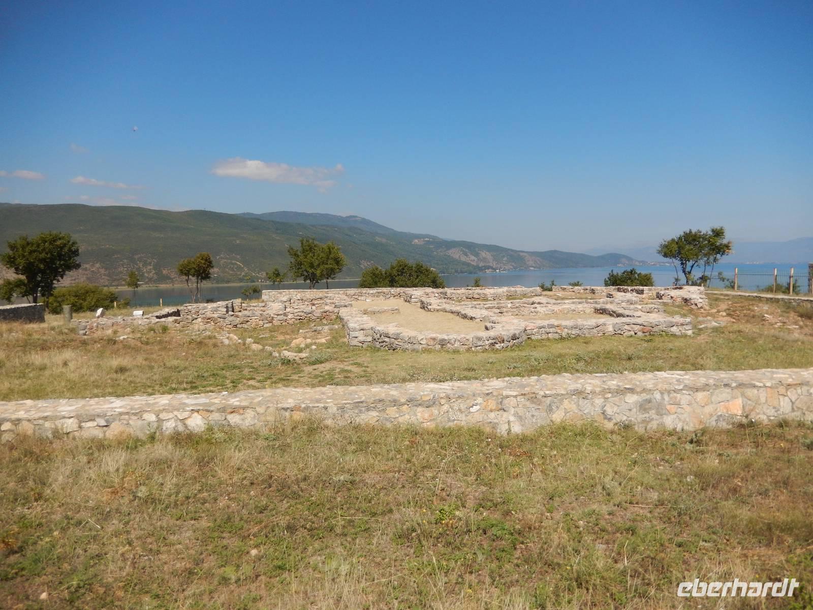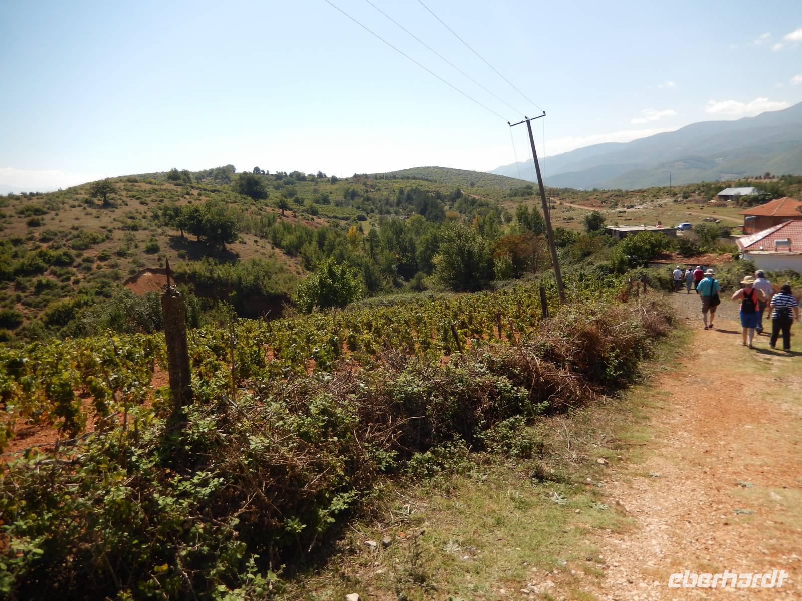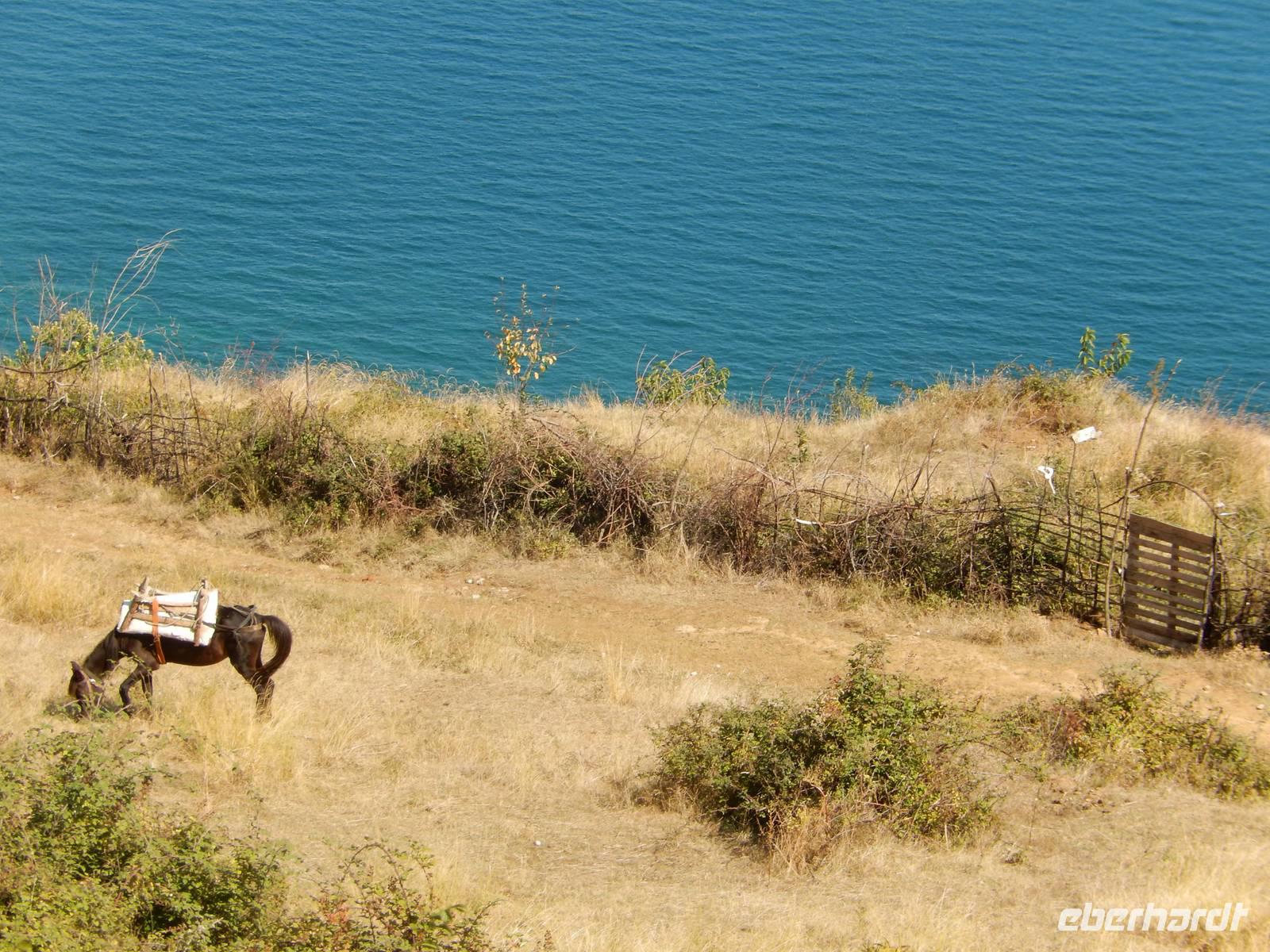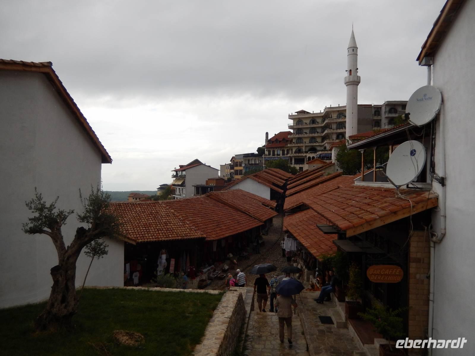 Die Wandertruppe folgte zunächst erst einmal schmalen Gassen, die durch die Stadt gingen, ehe sie am Stadtrand auf einen Pfad trafen welcher sie nach oben führte. Unterwegs hatte man eine herrliche Aussicht auf das glasklare Wasser und konnte sich auch einen guten Überblick auf die Stadt verschaffen. Auf dem Weg nach unten pflückten wir noch nicht ganz reife Walnüsse, knackten sie und ließen sie uns schmecken. Am Nachmittag nutzten dann die meisten Gäste die warmen Sonnenstrahlen und hüpften in den Ohridsee. Das Abendessen wurde im Hotel serviert und anschließend gab es noch albanisch/europäische Livemusik.