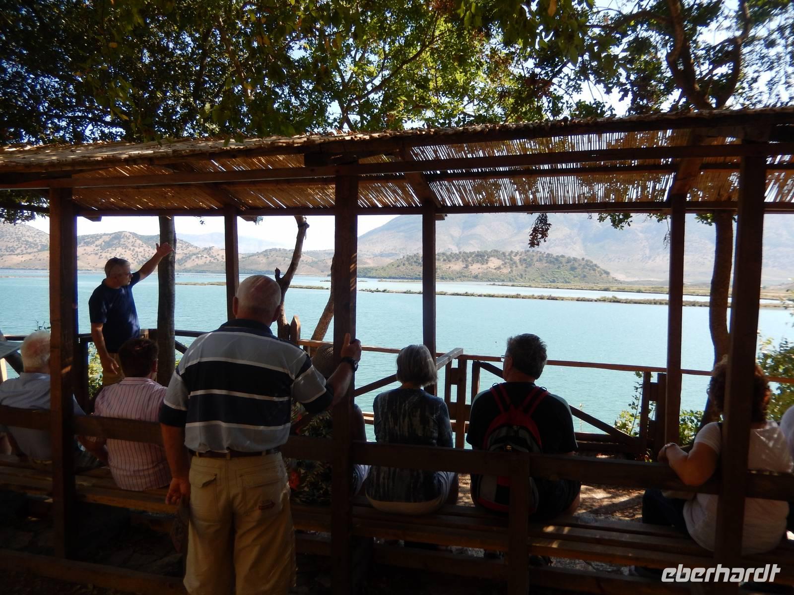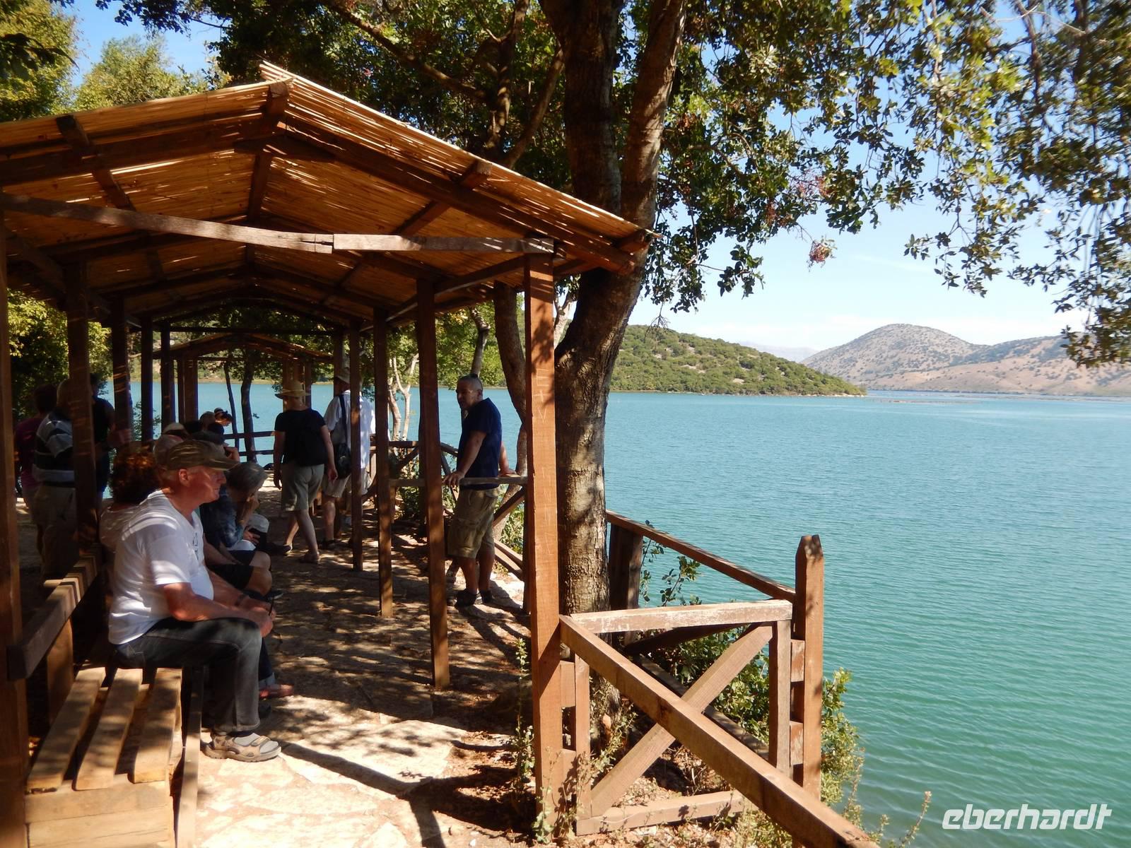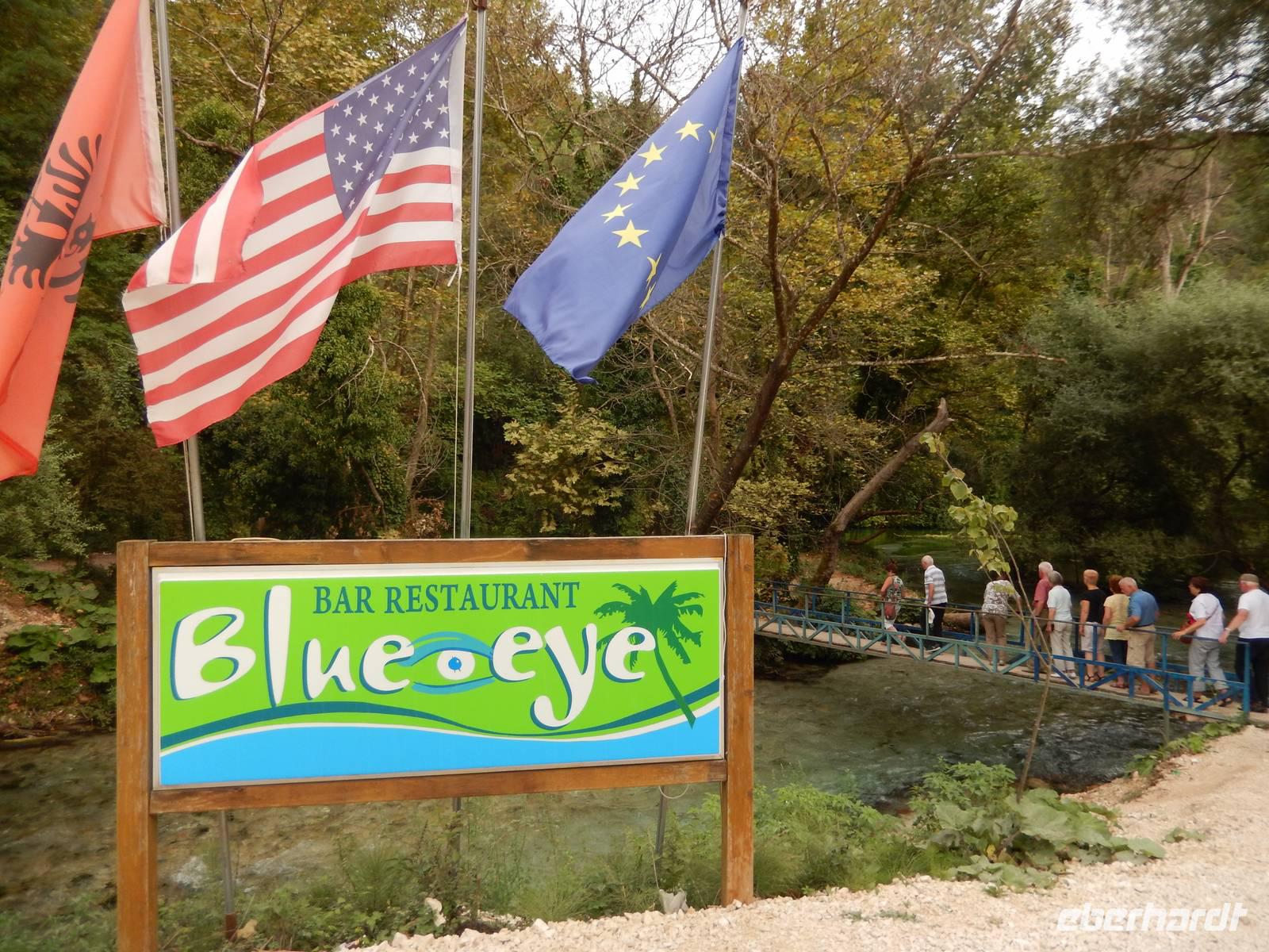 Nachdem wir wieder den Bus zu Fuß erreicht hatten, fuhren wir zum „Blue Eye". Hier kommt das Wasser unterirdisch aus einer Quelle und durch Lichtspiegelungen sieht es unheimlich schön und klar aus. Das ist hier schon ein reizendes Fleckchen Erde. Nach einer Kaffeepause verließen wir den idyllischen Ort und machten uns auf nach Saranda. Hier wartete das schicke Hotel „Brillant" auf uns, mit seinem Restaurant direkt am Meer. Hier war der Tisch unter anderem mit Fisch reichlich gedeckt und wir speisten wieder einmal vorzüglich.