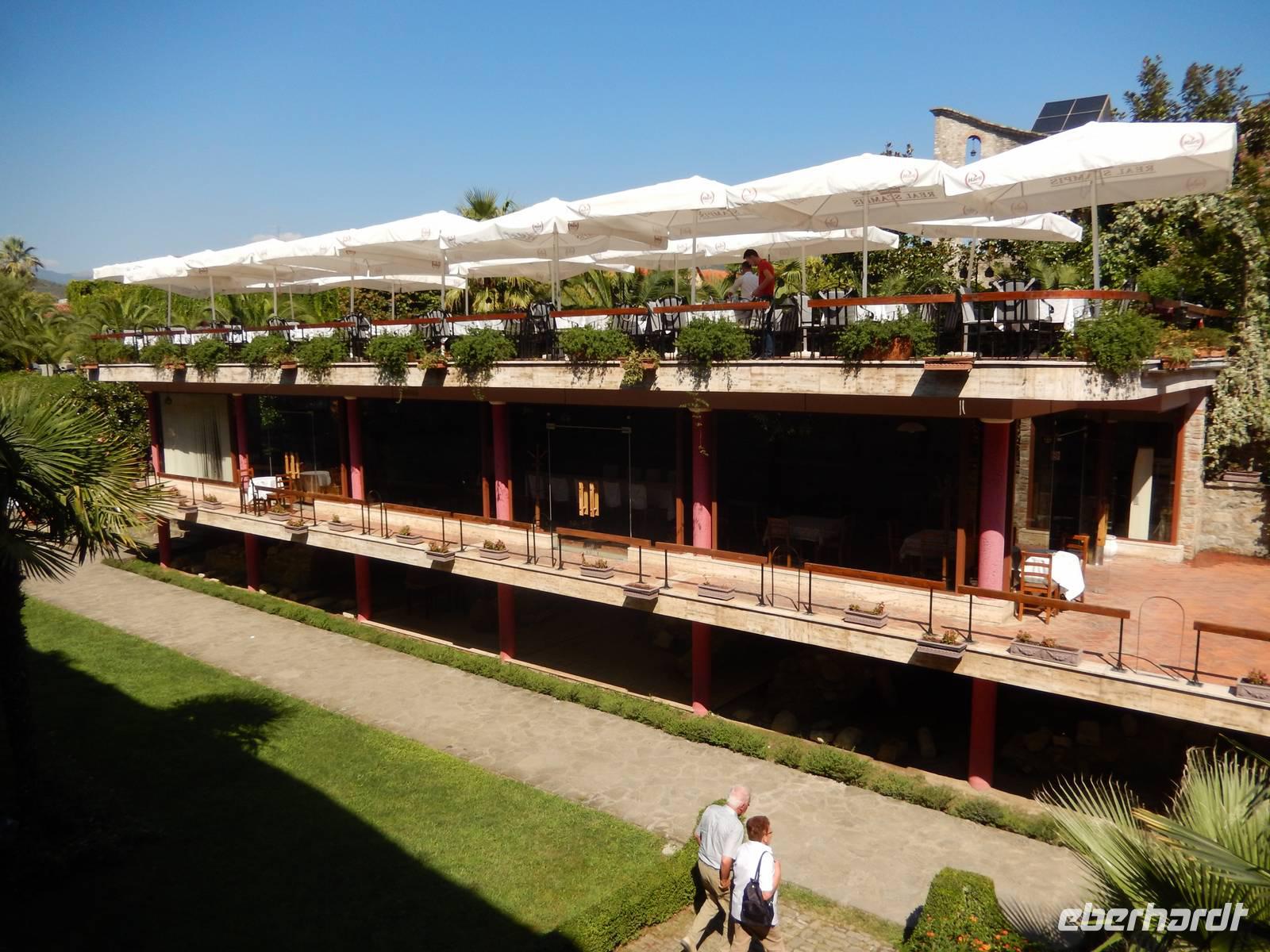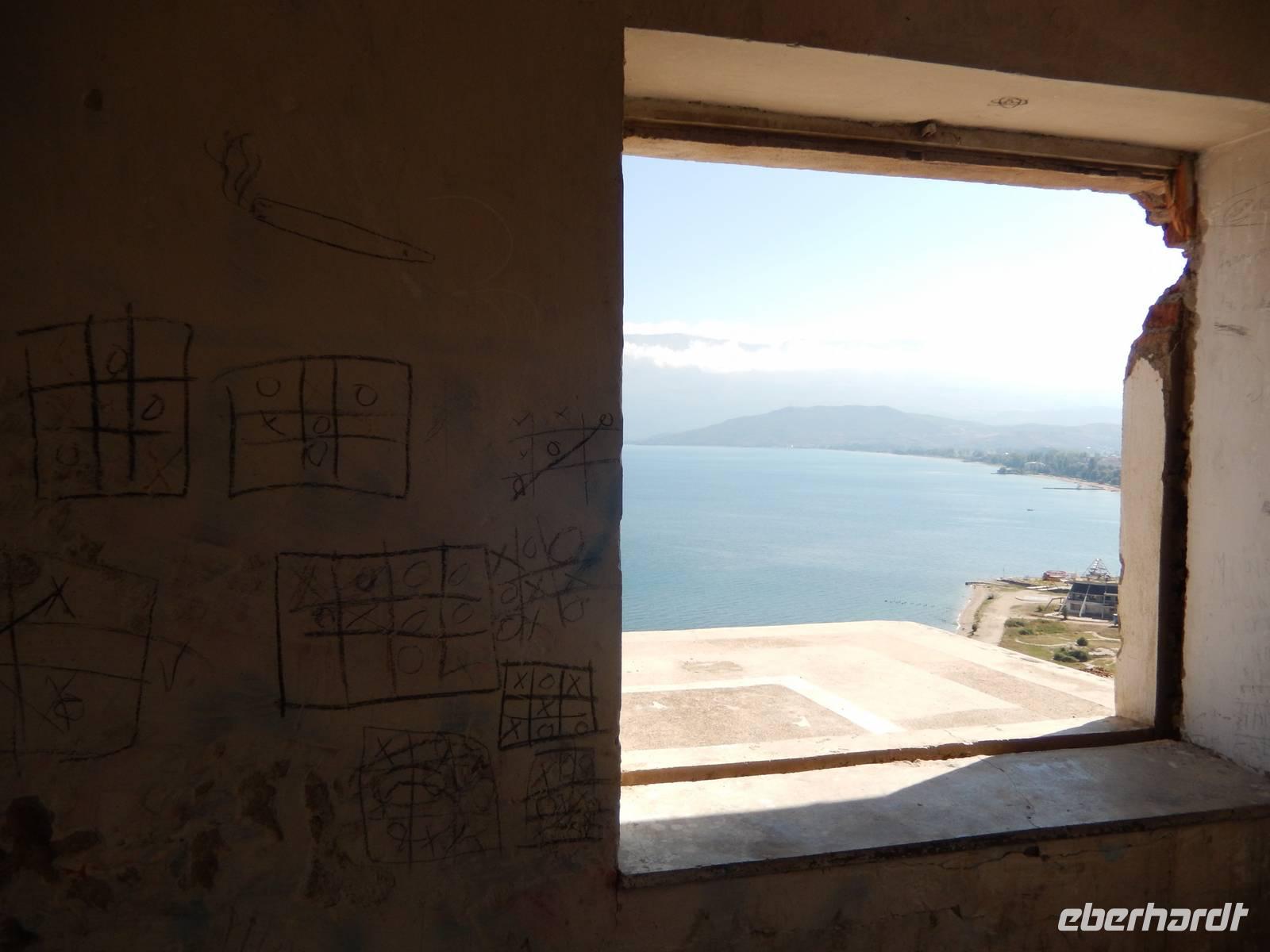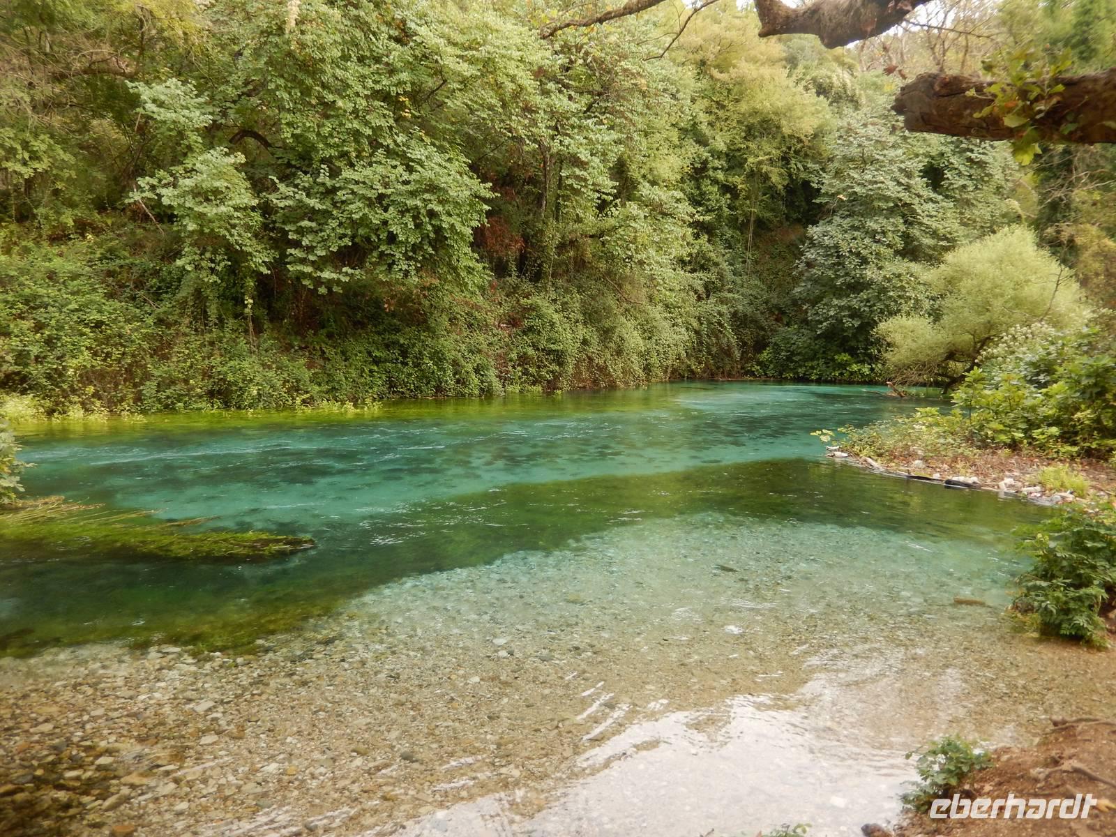 Nachdem wir wieder den Bus zu Fuß erreicht hatten, fuhren wir zum „Blue Eye". Hier kommt das Wasser unterirdisch aus einer Quelle und durch Lichtspiegelungen sieht es unheimlich schön und klar aus. Das ist hier schon ein reizendes Fleckchen Erde. Nach einer Kaffeepause verließen wir den idyllischen Ort und machten uns auf nach Saranda. Hier wartete das schicke Hotel „Brillant" auf uns, mit seinem Restaurant direkt am Meer. Hier war der Tisch unter anderem mit Fisch reichlich gedeckt und wir speisten wieder einmal vorzüglich.