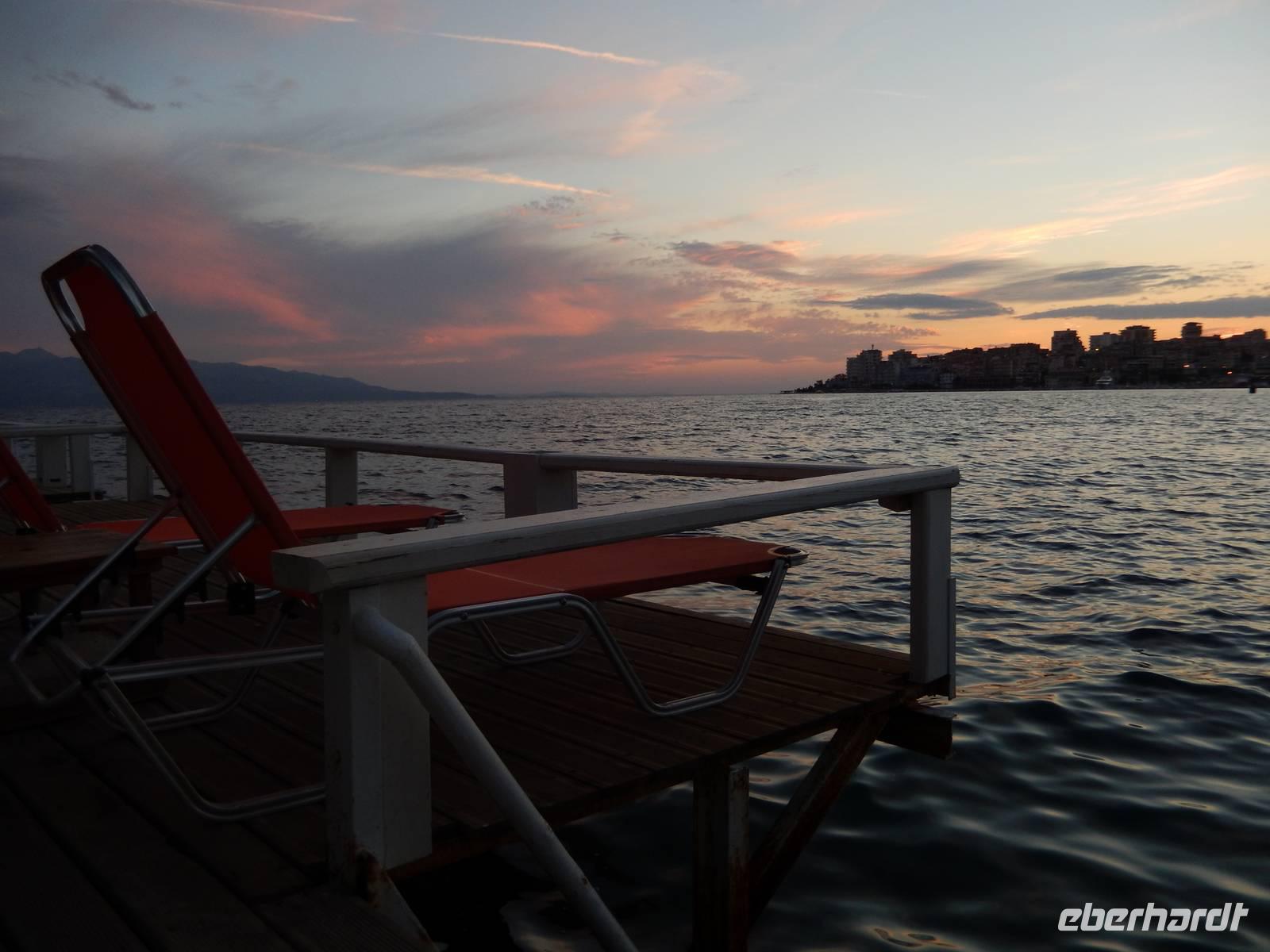 Am Nachmittag hatte jeder Zeit, um sie individuell zu gestalten. Der eine Teil schlenderte die Promenade entlang und der andere Teil testete die Temperatur des ionischen Meeres. Es kann gesagt werden, die Temperatur war perfekt.
