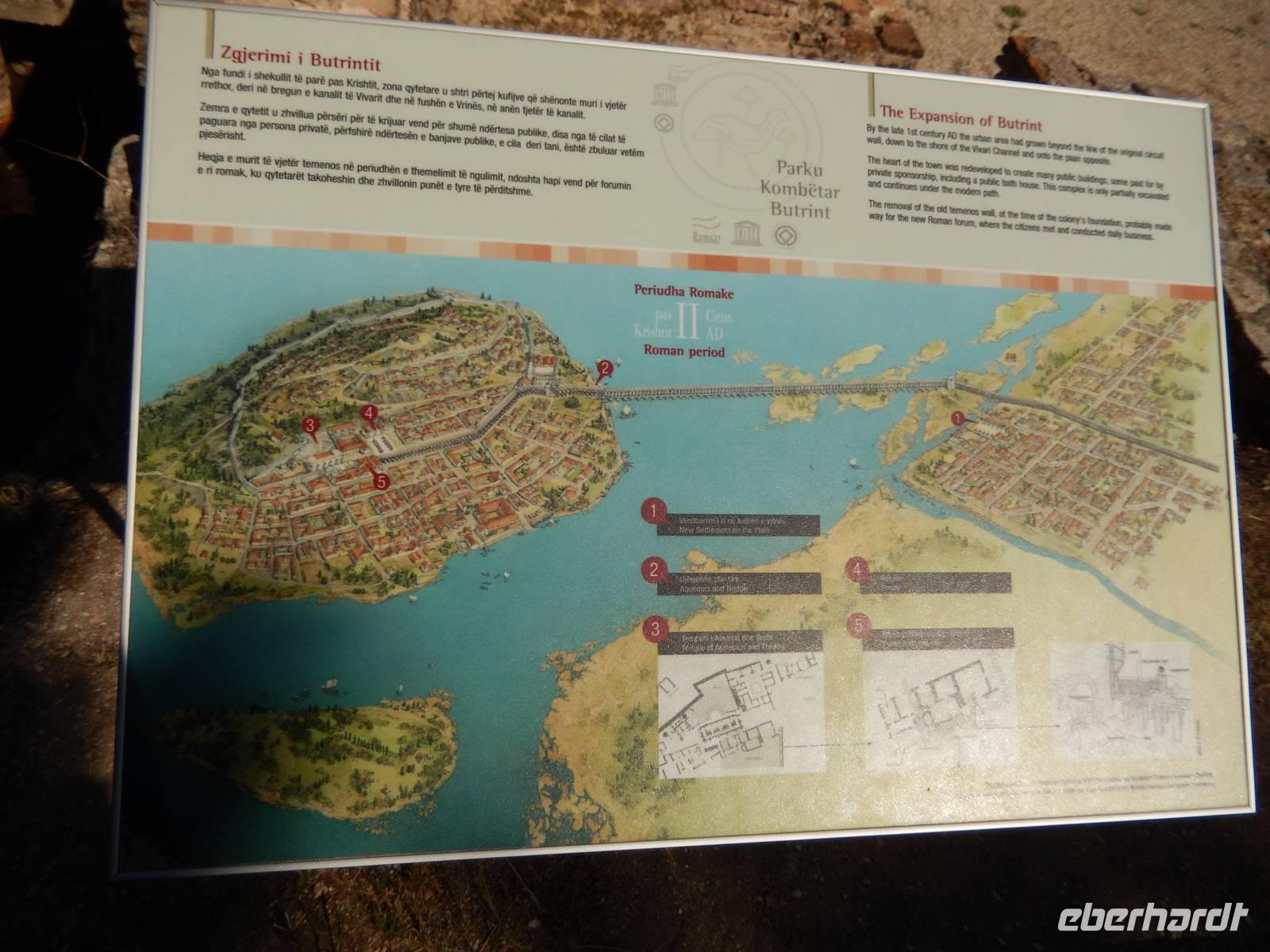 Heute stand das UNESCO Weltkulturerbe Butrint auf dem Programm. Da uns Koli hier nicht führen durfte, bekamen wir eine örtliche Reiseleiterin, welche uns die Details der alten Stadt ausführlich erklärte. Unser Rundgang führte uns zur Gebetsstätte, dem Theater, dem römischen Bad, der Basilika, bis hin zum alten venezianischen Schloss. Hier konnte man sich teilweise noch gut vorstellen, wie es früher einmal ausgesehen haben musste, da vieles noch sehr gut erhalten war.