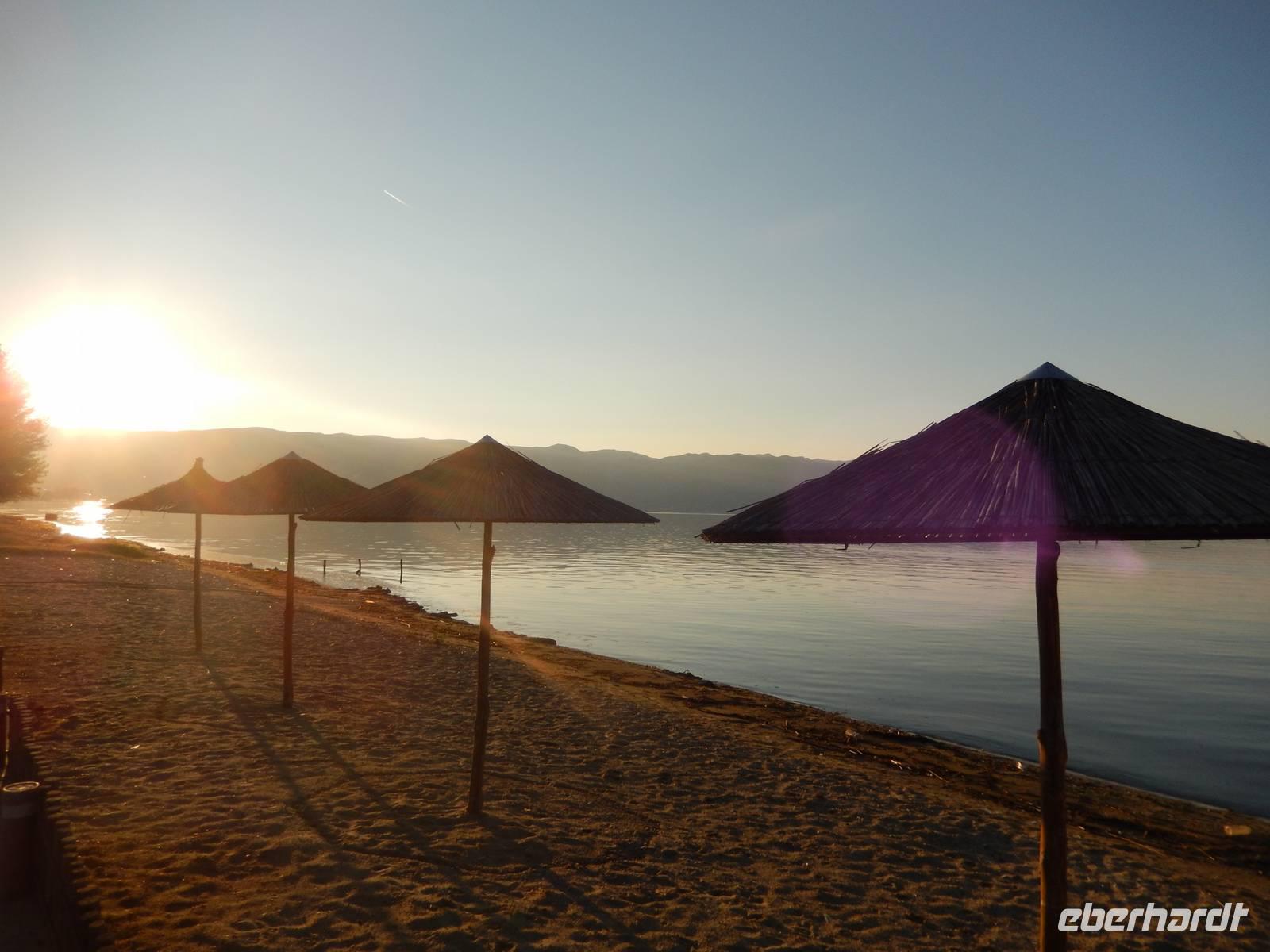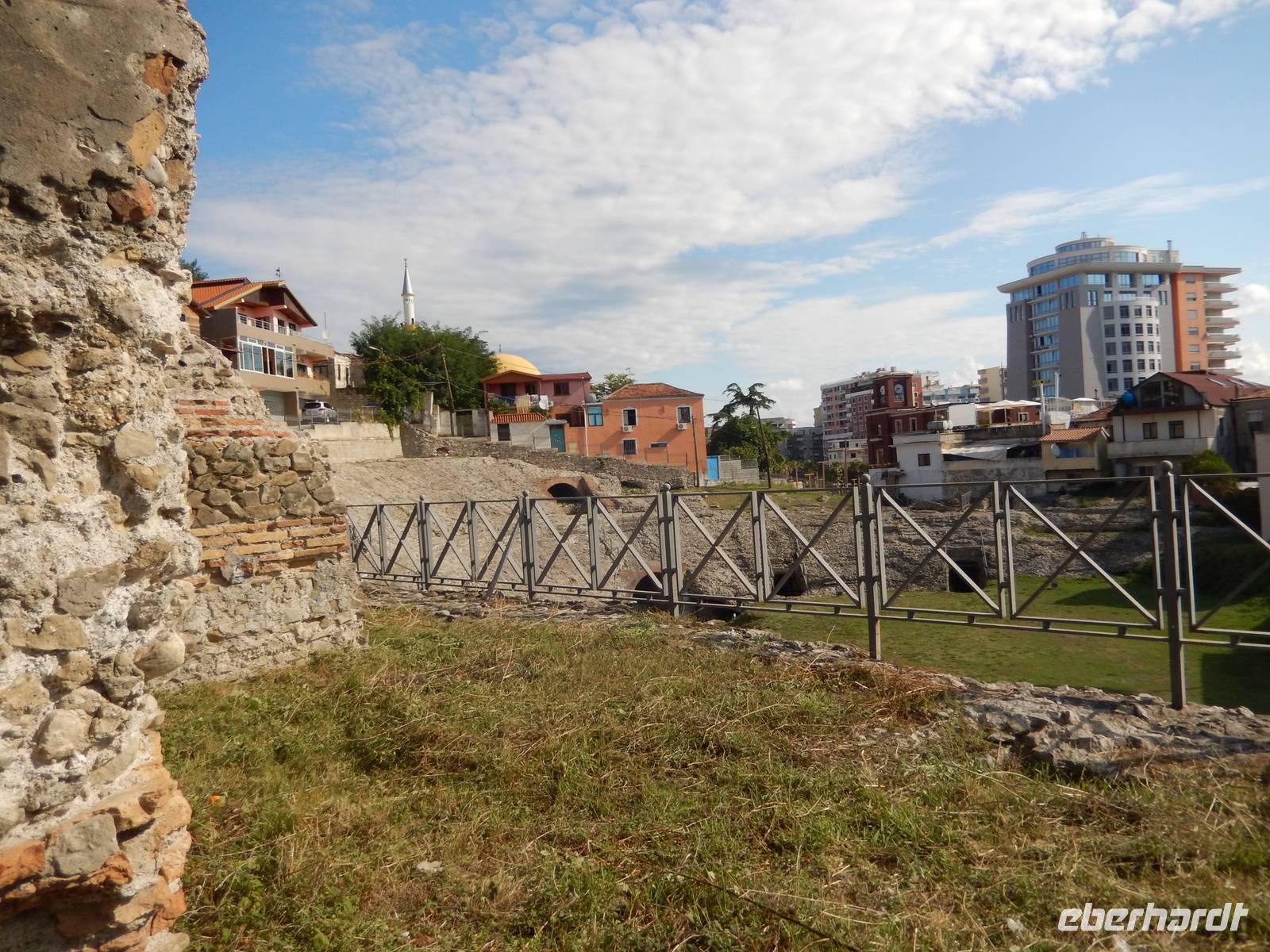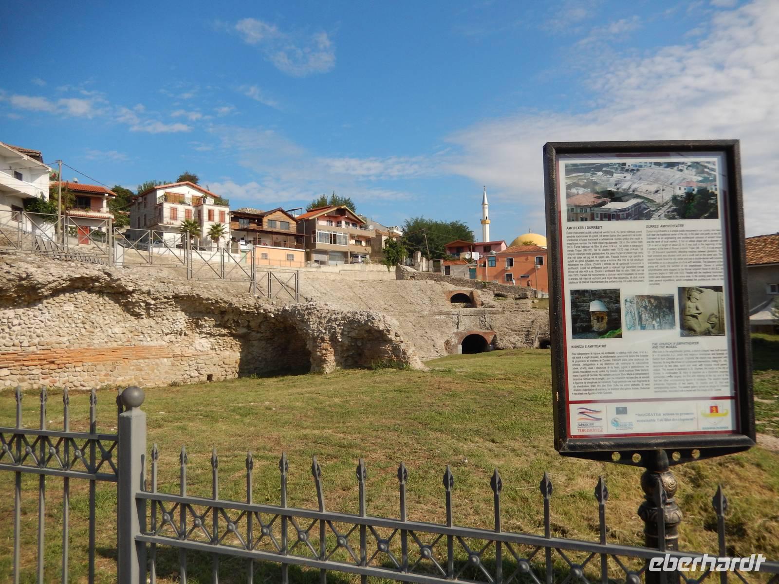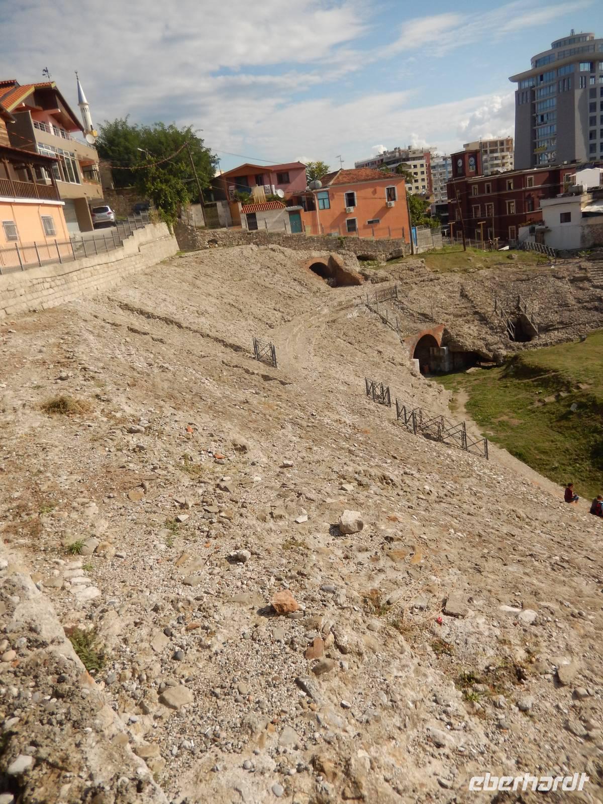 Nachdem wir uns am Buffet gestärkt hatten nahmen wir Abschied vom Meer und fuhren nach Durres. Hier besichtigten wir das weltweit älteste römische Amphitheater und bestaunten die alten und dicken Stadtmauern der Stadt. Nach der Besichtigung fuhren wir über mehrere Dörfer und schöner Landschaft mit Bergen nach Pogradec, wo wir am Nachmittag in unserem Hotel ankamen und die frisch renovierten Zimmer bezogen. Wir nutzten die freie Zeit am Nachmittag und schauten uns das etwa 22.000 Einwohner große Städtchen an. Am Abend brachte uns der Bus sicher ins Restaurant und zurück, wobei wir uns schon alle auf den sonnenreichen Tag, der für morgen angekündigt war, freuten. Da hieß es nämlich Badesachen einpacken und ab zum größten See Albaniens.