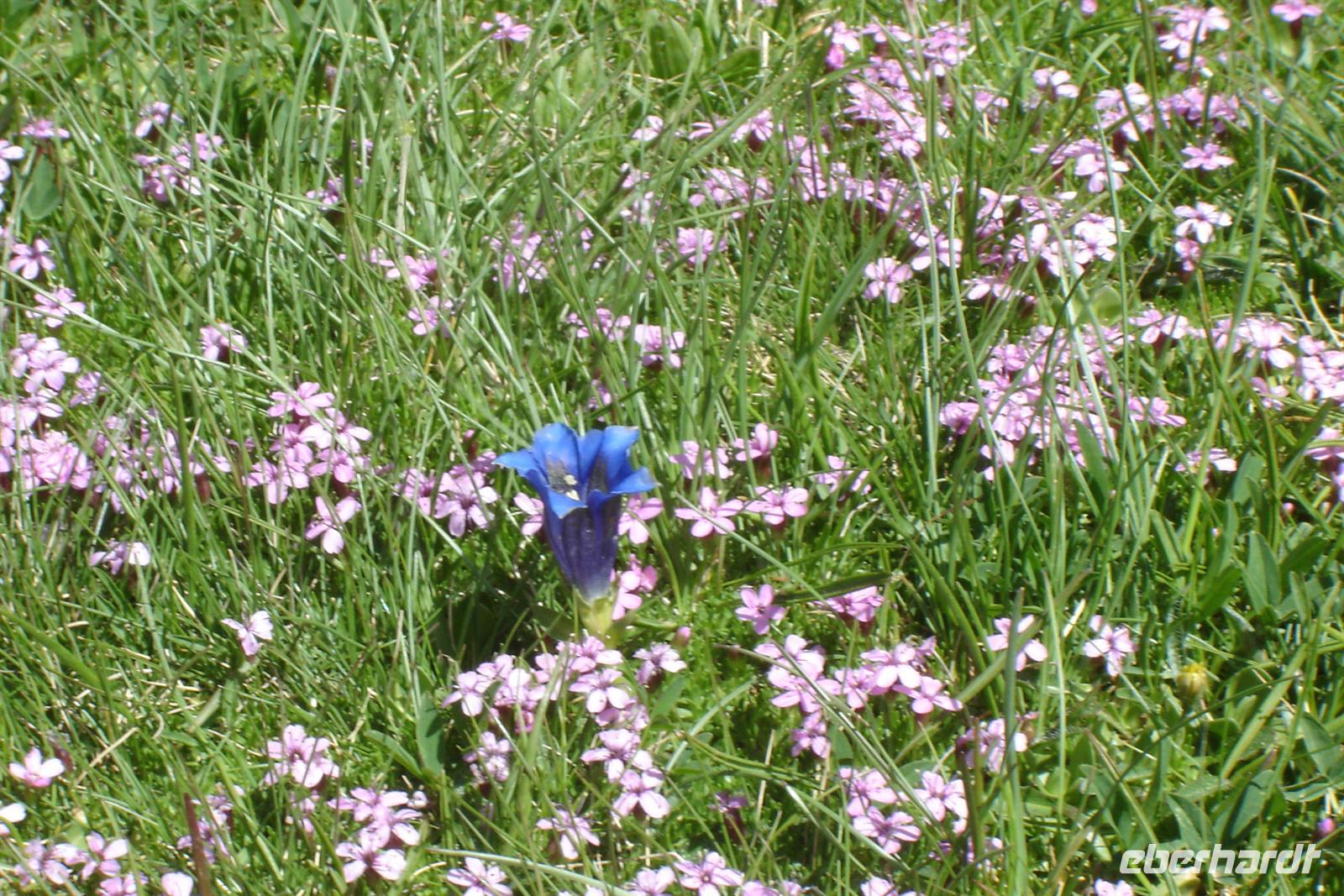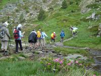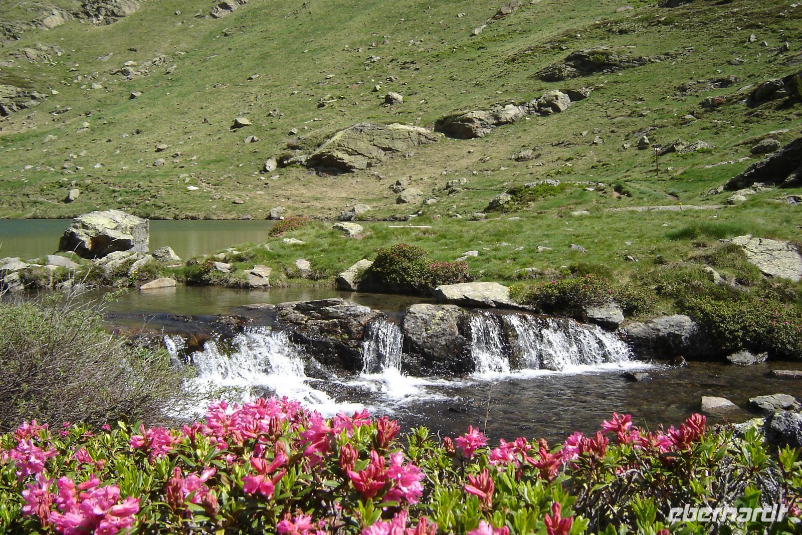 Nach der kleinen Mittagspause und setzten wir unsere Wanderung zur Berghütte am Ensagents-See auf ca. 2400 Metern fort. In der kleinen Berghütte trafen wir einige französische Wanderer, mit denen wir einen kleinen Plausch hielten. Auf dem Rückweg folgten wir teilweise denselben Weg und konnten noch einmal die bunten Blümlein am Wegrand bestaunen.
