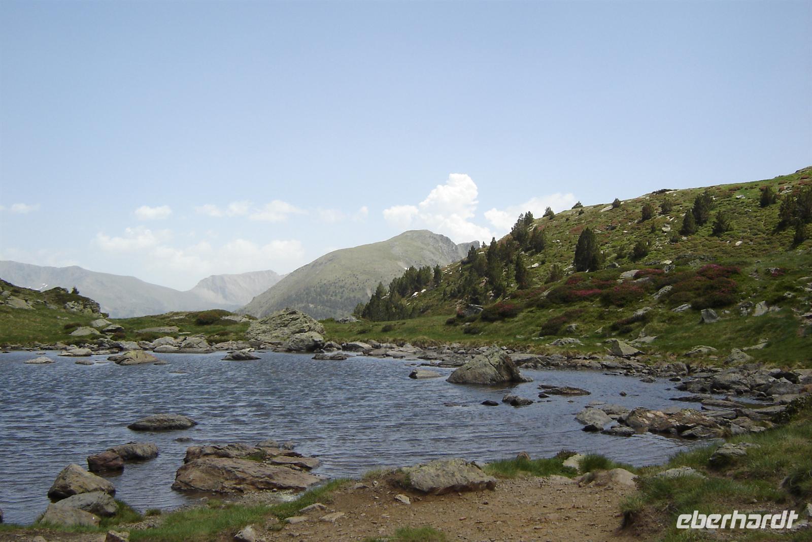 Die heutige Wanderung starteten wir am Canillo Encamp auf ca. 1900 Meter Höhe. Es ging durch einen schattig kühlen Kiefernwald, bevor wir teils auf sehr großem Geröll oder kleinen Felsen hinauf zum versteckten Moreno-See kletterten. Hier wurde unsere Mühe belohnt, denn dieser unberührter Felck Natur strahlte so viel Idylle und Schönheit aus, dass man alles Negative hinter sich lassen konnte und nur diese traumhafte Landschaft genießen möchte.