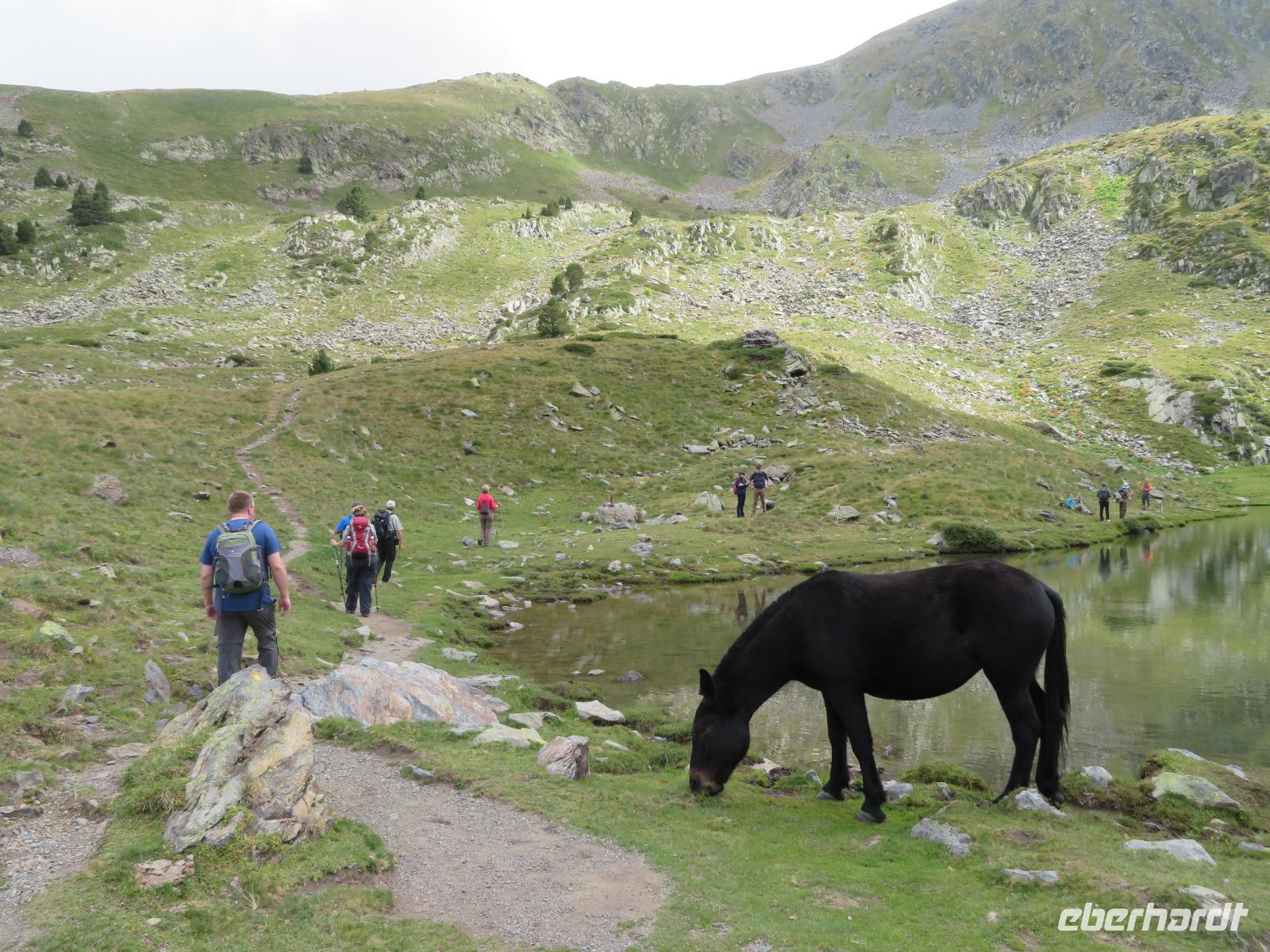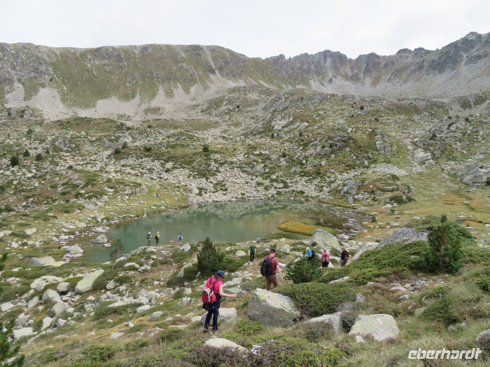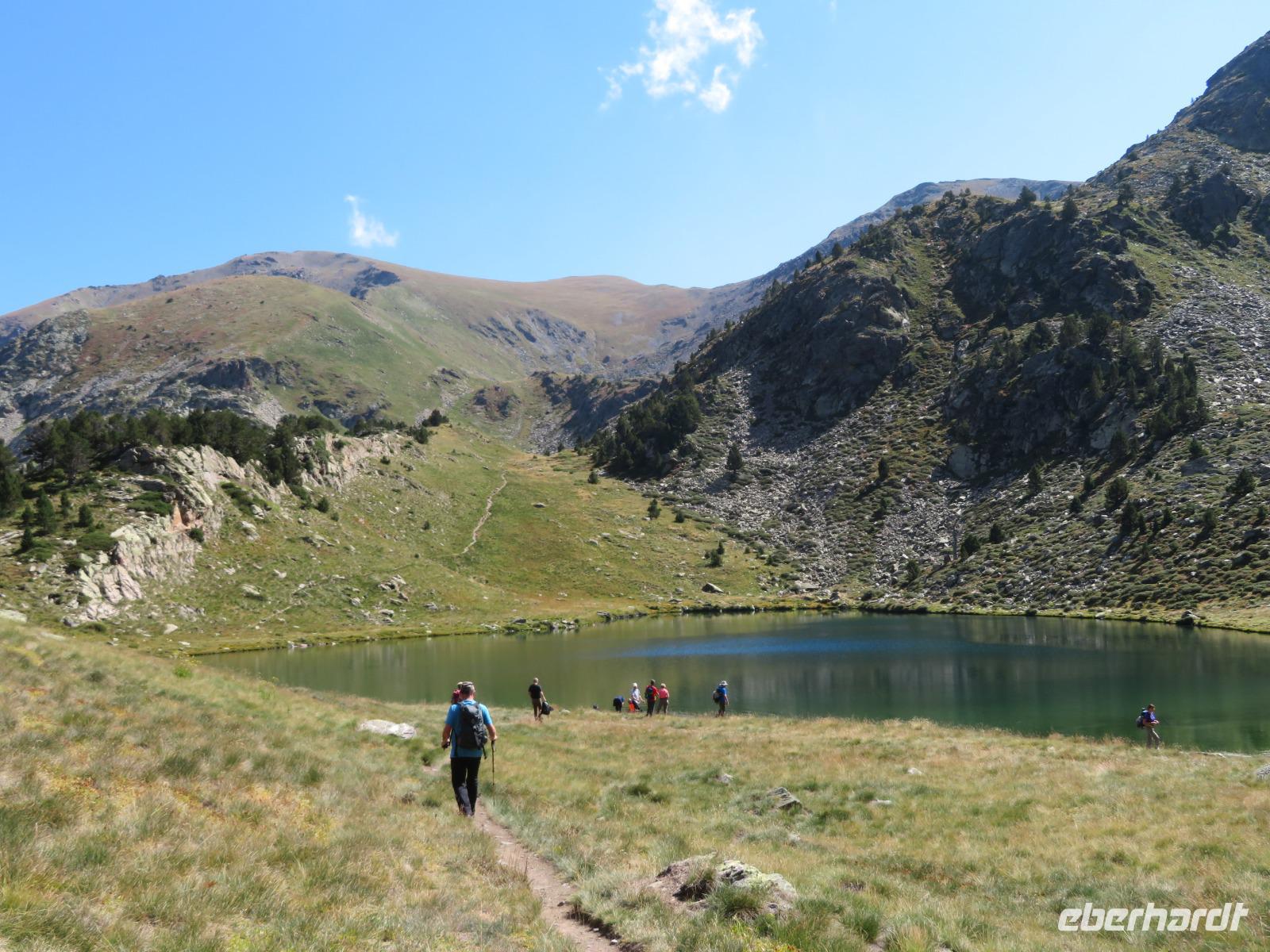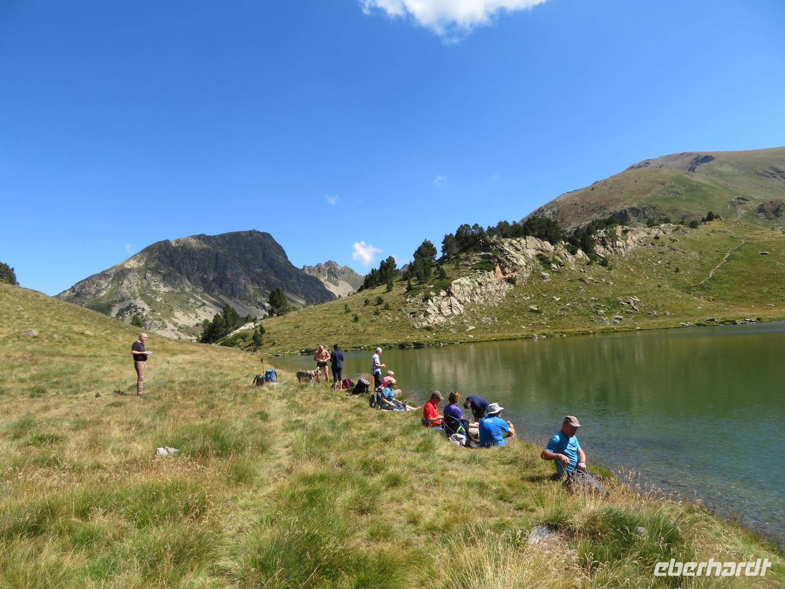 Marco schlägt uns heute eine alternative Wanderung vor und da wir wissen, er kennt die Bergwelt wie seine Westentasche, haben wir vollstes Vertrauen. Inzwischen kennt er auch uns ganz gut und kann als erfahrener Wanderführer unsere Fähigkeiten beim Wandern einschätzen. Es wird ein sportlicher Tag in jeder Hinsicht. Andorra ist nämlich auch Austragungsort internationaler Sportveranstaltungen - heute und morgen ist die "vuelta" zu Gast und alle sind im Rad-Fieber. Im Winter findet der Ski-Weltcup statt im Zwergstaat und weiterhin Mountain Running und Mountain Biking Weltmeisterschaften. Da sagen wir "klein, aber oho"! Damit Marco heute rechtzeitig nach Hause kommt, bevor die "vuelta" einfährt, starten wir etwas früher als gewohnt. Und weil es im Incles-Tal so schön war, nehmen wir uns heute die andere Seite vor. An einem Gestüt beginnt unsere Wanderung in den Morgenstunden und langsam kitzeln die ersten Sonnenstrahlen die Berggipfel. Wir können kaum einen Weg erkennen, aber Marco führt uns zielsicher durch die felsige Landschaft. Wir passieren mehrere Bergseen, die eingerahmt sind von steilen Felswänden. Auf dem Grat erblicken wir in der Ferne eine Herde Schafe und wir fragen uns, wie die Schäfer wohl alle ihre Schäfchen wieder finden!? Es ist wieder ein fantastischer Tag inmitten der traumhaften Berglandschaft Andorras. Da wir heute etwas früher zurück am Hotel sind, bleibt Zeit für einen Besuch um Spa des Hotels oder ein Bad im Pool oder die Auffahrt mit der Seilbahn.