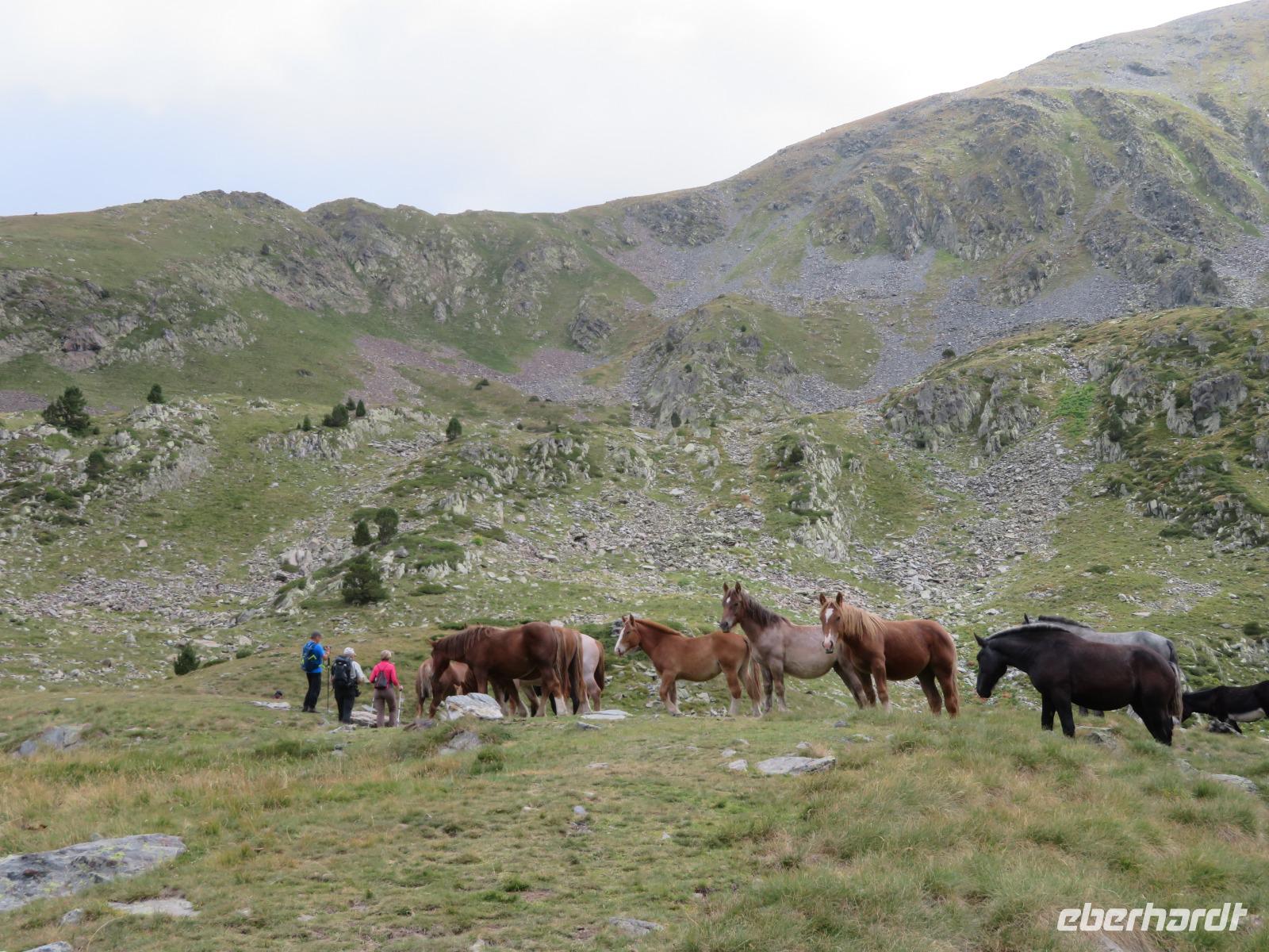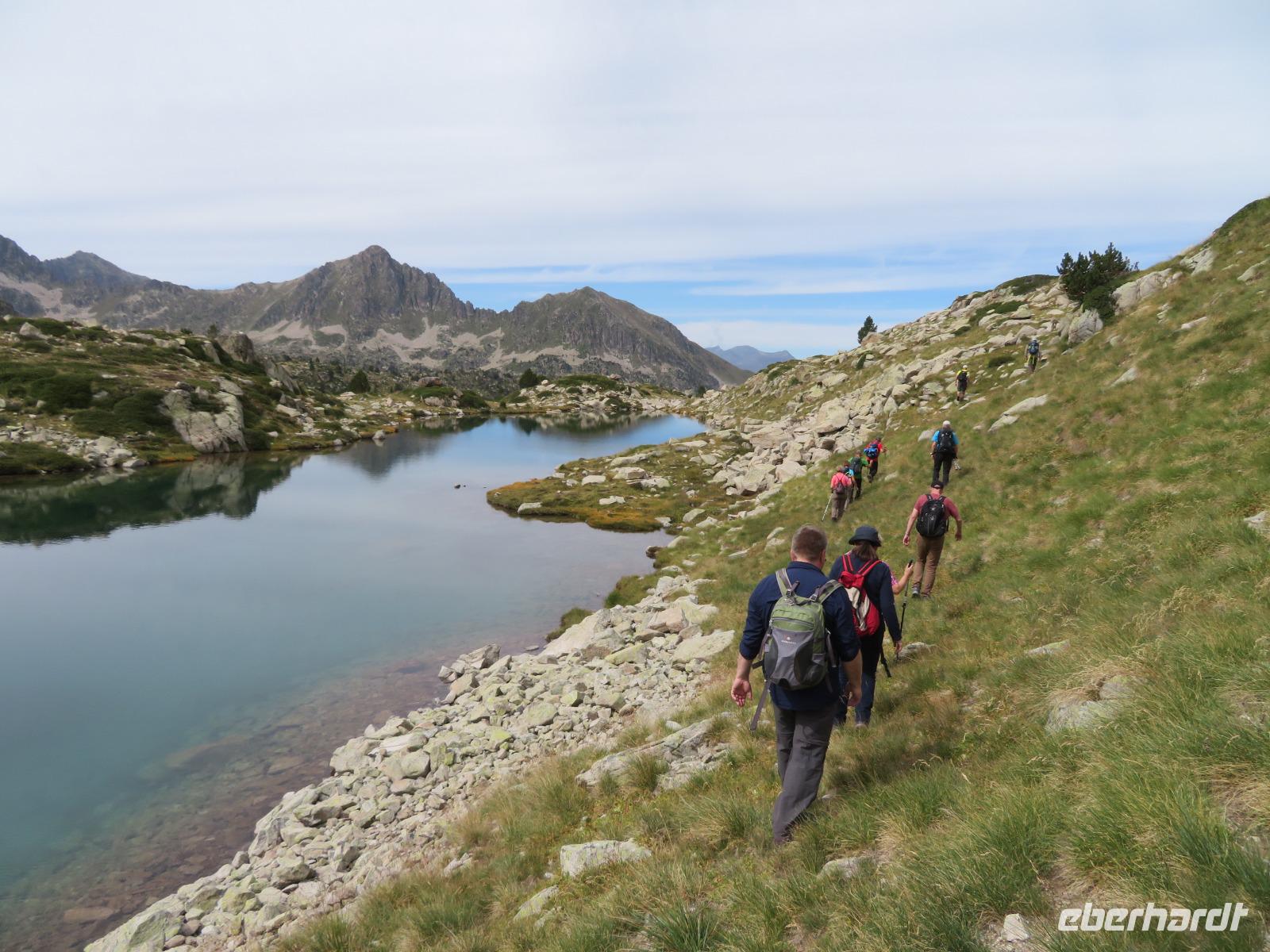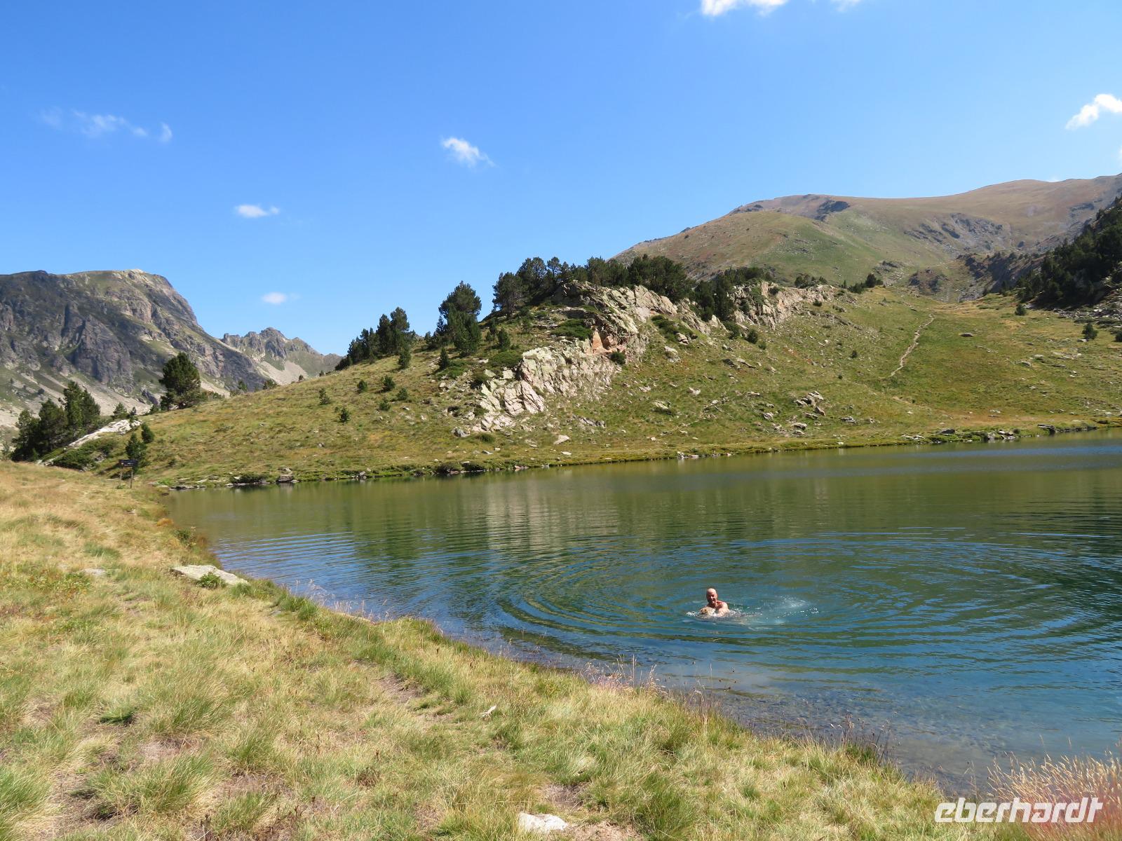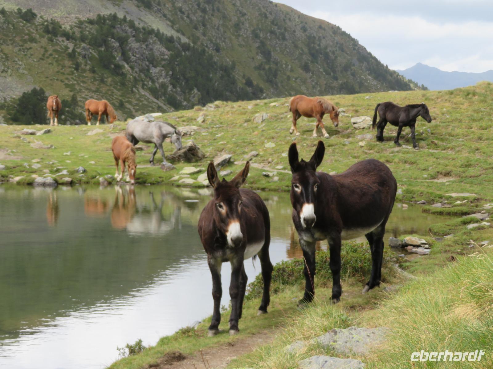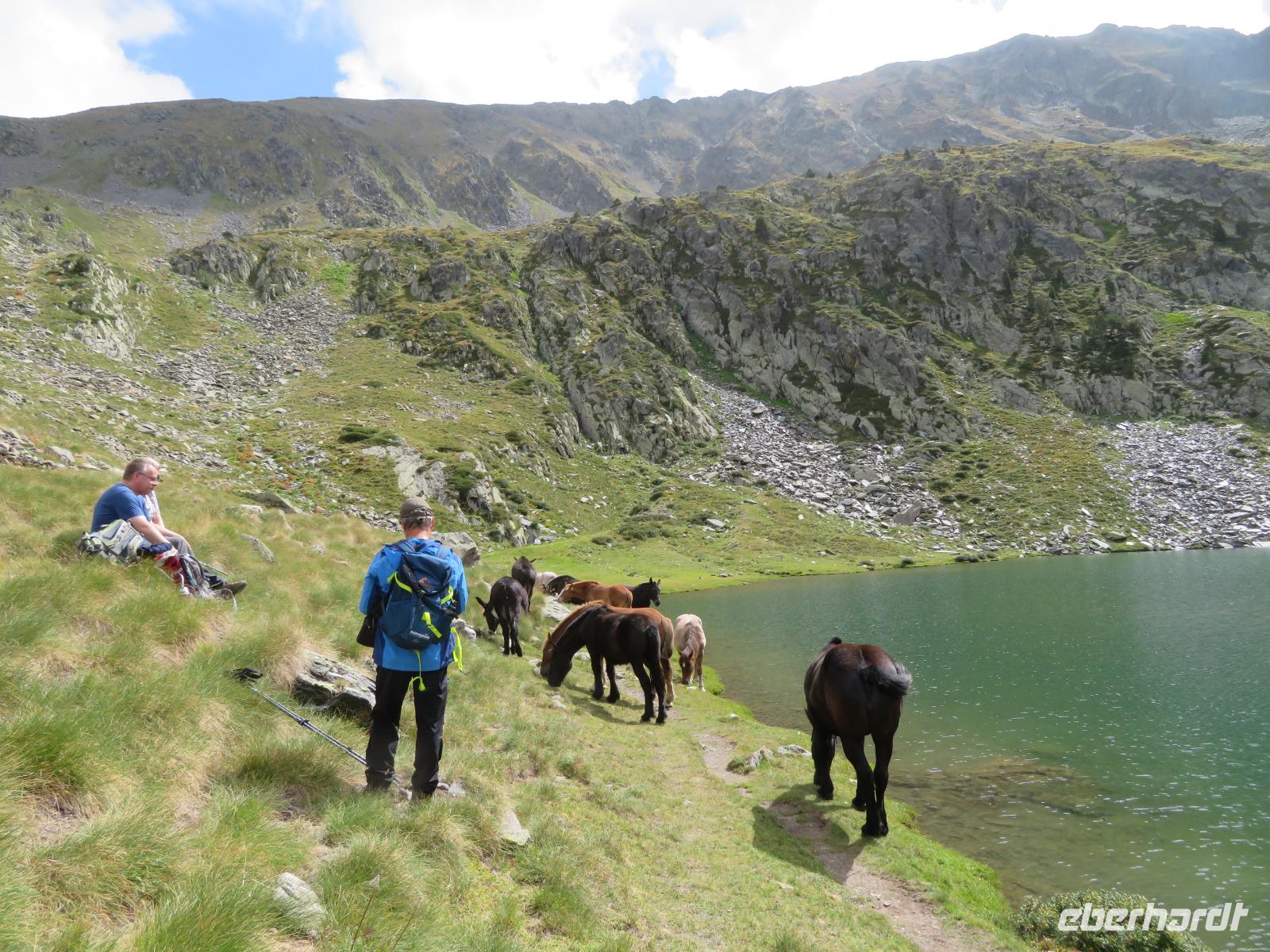 Marco schlägt uns heute eine alternative Wanderung vor und da wir wissen, er kennt die Bergwelt wie seine Westentasche, haben wir vollstes Vertrauen. Inzwischen kennt er auch uns ganz gut und kann als erfahrener Wanderführer unsere Fähigkeiten beim Wandern einschätzen. Es wird ein sportlicher Tag in jeder Hinsicht. Andorra ist nämlich auch Austragungsort internationaler Sportveranstaltungen - heute und morgen ist die "vuelta" zu Gast und alle sind im Rad-Fieber. Im Winter findet der Ski-Weltcup statt im Zwergstaat und weiterhin Mountain Running und Mountain Biking Weltmeisterschaften. Da sagen wir "klein, aber oho"! Damit Marco heute rechtzeitig nach Hause kommt, bevor die "vuelta" einfährt, starten wir etwas früher als gewohnt. Und weil es im Incles-Tal so schön war, nehmen wir uns heute die andere Seite vor. An einem Gestüt beginnt unsere Wanderung in den Morgenstunden und langsam kitzeln die ersten Sonnenstrahlen die Berggipfel. Wir können kaum einen Weg erkennen, aber Marco führt uns zielsicher durch die felsige Landschaft. Wir passieren mehrere Bergseen, die eingerahmt sind von steilen Felswänden. Auf dem Grat erblicken wir in der Ferne eine Herde Schafe und wir fragen uns, wie die Schäfer wohl alle ihre Schäfchen wieder finden!? Es ist wieder ein fantastischer Tag inmitten der traumhaften Berglandschaft Andorras. Da wir heute etwas früher zurück am Hotel sind, bleibt Zeit für einen Besuch um Spa des Hotels oder ein Bad im Pool oder die Auffahrt mit der Seilbahn.