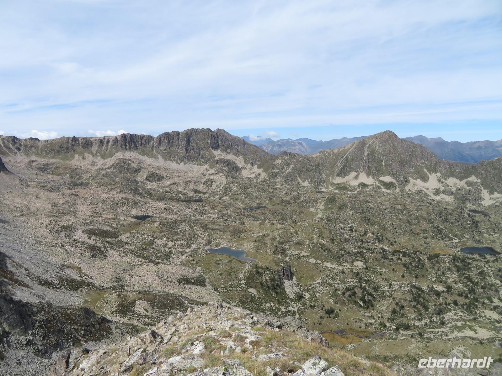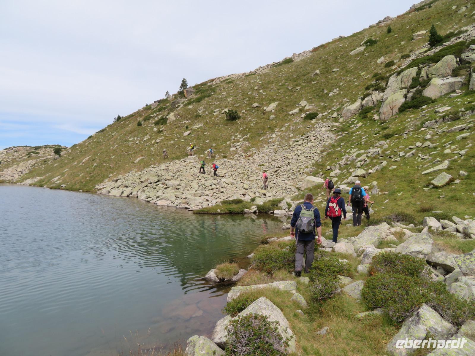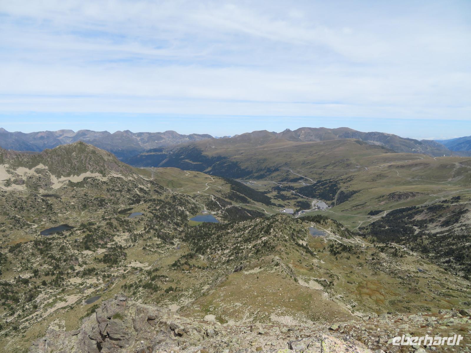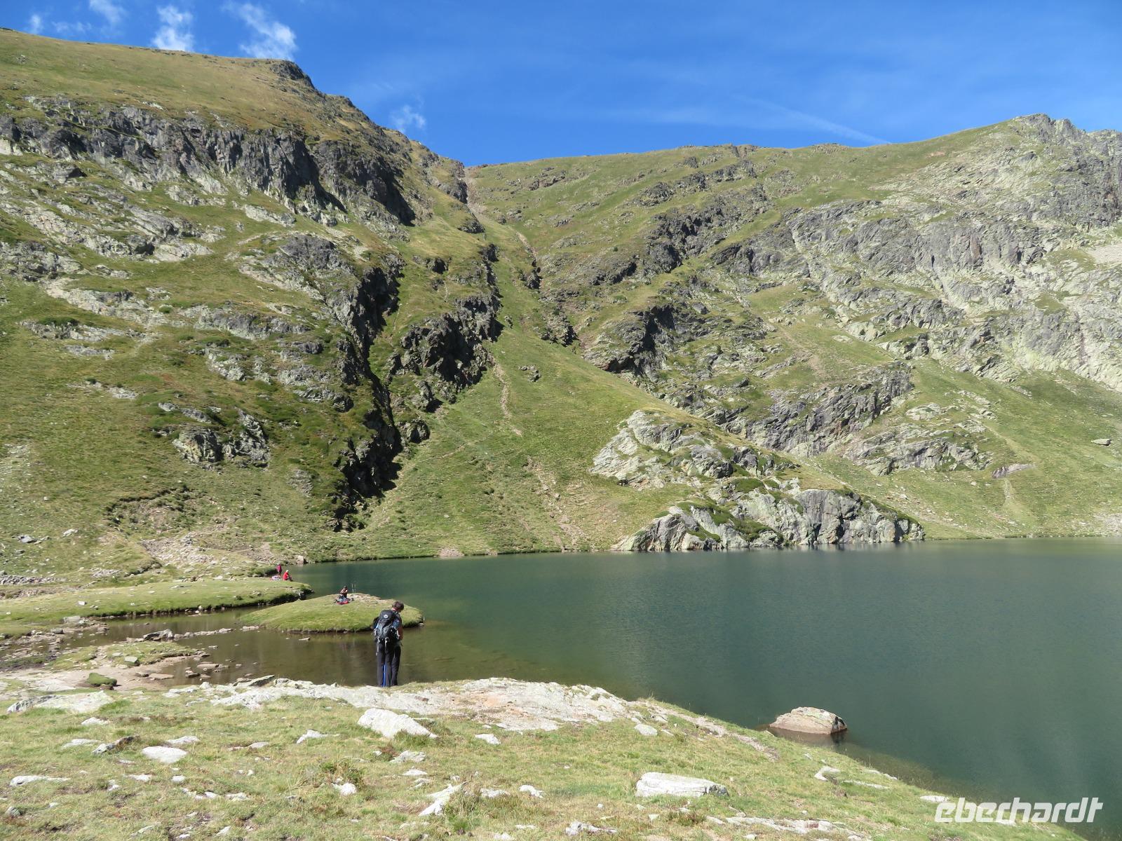 Marco schlägt uns heute eine alternative Wanderung vor und da wir wissen, er kennt die Bergwelt wie seine Westentasche, haben wir vollstes Vertrauen. Inzwischen kennt er auch uns ganz gut und kann als erfahrener Wanderführer unsere Fähigkeiten beim Wandern einschätzen. Es wird ein sportlicher Tag in jeder Hinsicht. Andorra ist nämlich auch Austragungsort internationaler Sportveranstaltungen - heute und morgen ist die "vuelta" zu Gast und alle sind im Rad-Fieber. Im Winter findet der Ski-Weltcup statt im Zwergstaat und weiterhin Mountain Running und Mountain Biking Weltmeisterschaften. Da sagen wir "klein, aber oho"! Damit Marco heute rechtzeitig nach Hause kommt, bevor die "vuelta" einfährt, starten wir etwas früher als gewohnt. Und weil es im Incles-Tal so schön war, nehmen wir uns heute die andere Seite vor. An einem Gestüt beginnt unsere Wanderung in den Morgenstunden und langsam kitzeln die ersten Sonnenstrahlen die Berggipfel. Wir können kaum einen Weg erkennen, aber Marco führt uns zielsicher durch die felsige Landschaft. Wir passieren mehrere Bergseen, die eingerahmt sind von steilen Felswänden. Auf dem Grat erblicken wir in der Ferne eine Herde Schafe und wir fragen uns, wie die Schäfer wohl alle ihre Schäfchen wieder finden!? Es ist wieder ein fantastischer Tag inmitten der traumhaften Berglandschaft Andorras. Da wir heute etwas früher zurück am Hotel sind, bleibt Zeit für einen Besuch um Spa des Hotels oder ein Bad im Pool oder die Auffahrt mit der Seilbahn.