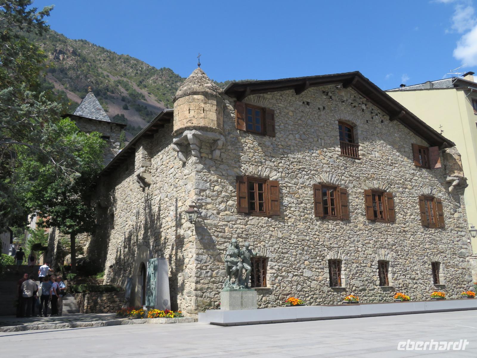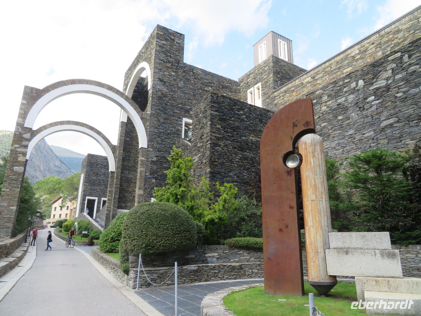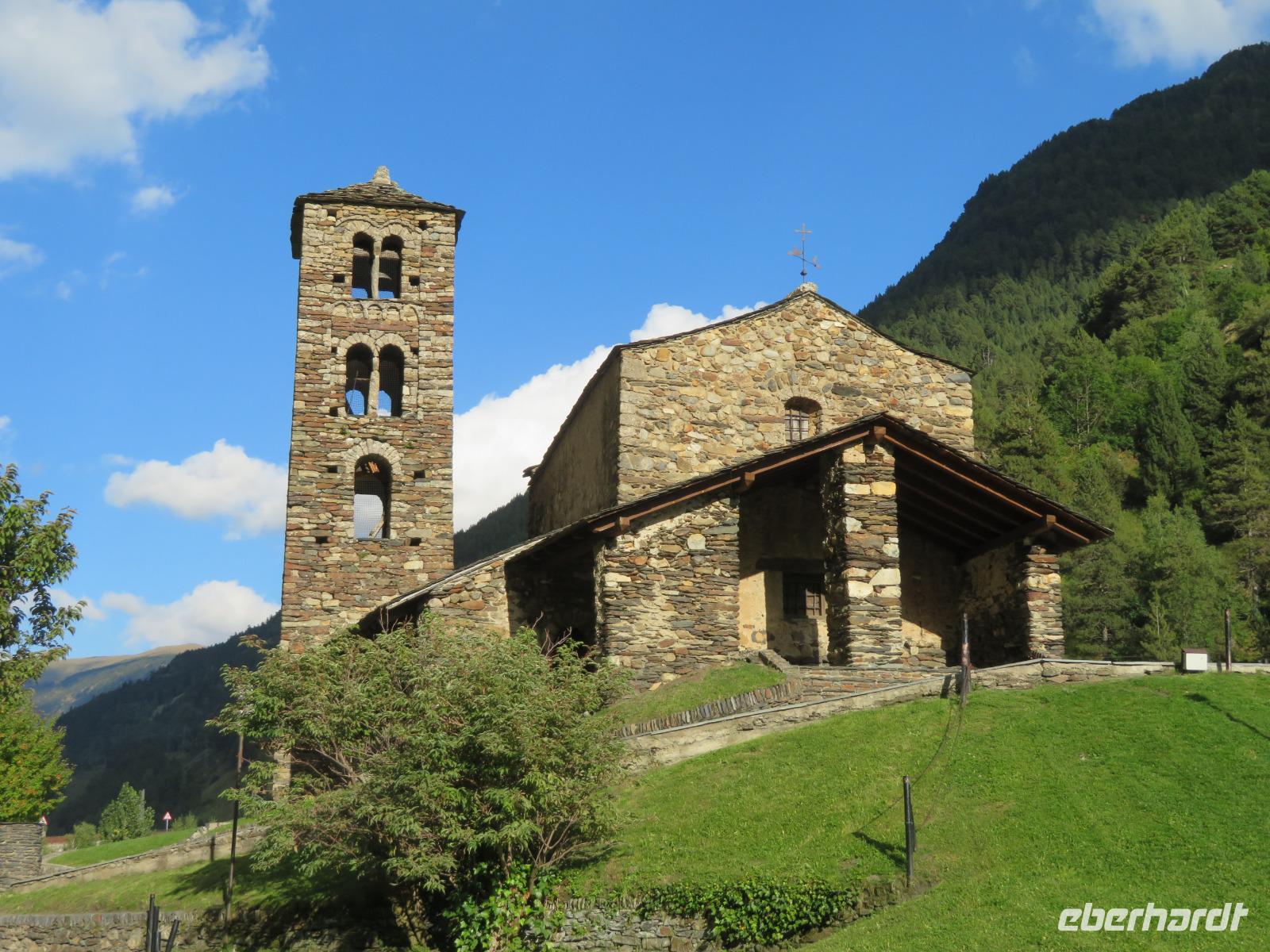 Heute bleiben die Wanderschuhe zu Hause und wir unternehmen eine Rundfahrt durch Andorra mit dem Bus, um Land und Leute etwas besser kennenzulernen. Unser erstes Ziel ist die Kleinstadt Ordino, die am Morgen noch recht verschlafen wirkt. Ein Schmuckstück ist das Plandolit-Museum, das uns in die Zeit des 16.-19. Jhd. zurück versetzt. In dem alten Herrenhaus verbergen sich viele Altags- und Einrichtungsgegenstände sowie Gemälde, Bücher und Kunstwerke aus der Zeit der Familie Areny-Plandolits, die die Geschichte Andorras maßgeblich beeinflusste. Danach führt uns der Weg in eine Likörfabrik, wo wir - man mag es kaum glauben - auf Sächsisch begrüßt werden. Die Auswahl ist riesig und wir können uns durch das gesamte Sortiment probieren. Prost! Bei bester Fernsicht fahren wir noch zu einem Aussichtspunkt, von wo wir einen herrlichen Blick auf die Bergwelt der Pyrenäen haben - heute sogar völlig ohne Anstrengung! Schließlich geht es nach Andorra la Vella, die höchst gelegene Hauptstadt Europas. Wir besuchen die Casa de la Vall, das ehemalige Parlamentsgebäude aus dem 16. Jhd., wo wir Eintritt in den Sitzungs- und Gerichtssaal bekommen und viel Wissenswertes zum Thema Politik im Zwergstaat erfahren. Danach bleibt noch etwas Zeit zum Bummeln und Shoppen im "Steuer-Paradies". Unser letzter Stopp ist die Kirche Meritxell in der Gemeinde Canillo. Am 08. September feierte das ganze Land seinen Nationalfeiertag zu Ehren der lieben Frau von Meritxell. Während die ursprüngliche Kapelle im romanischen Stil erbaut wurde, erscheint der neue Kirchenbau mit seinen Bögen, Türmen und Kollonaden überdimensioniert und sehr modern. Im Innenraum können wir eine Nachbildung der Madonna-Statue finden sowie eine Miniatur-Ausstellung von Andorras romanischen Kirchen. Auf der Rückfahrt zum Hotel legen wir noch einen letzten Fotostopp an einer dieser schönen Kirchen ein und bedanken und bei unserem Reiseleiter Anthony.