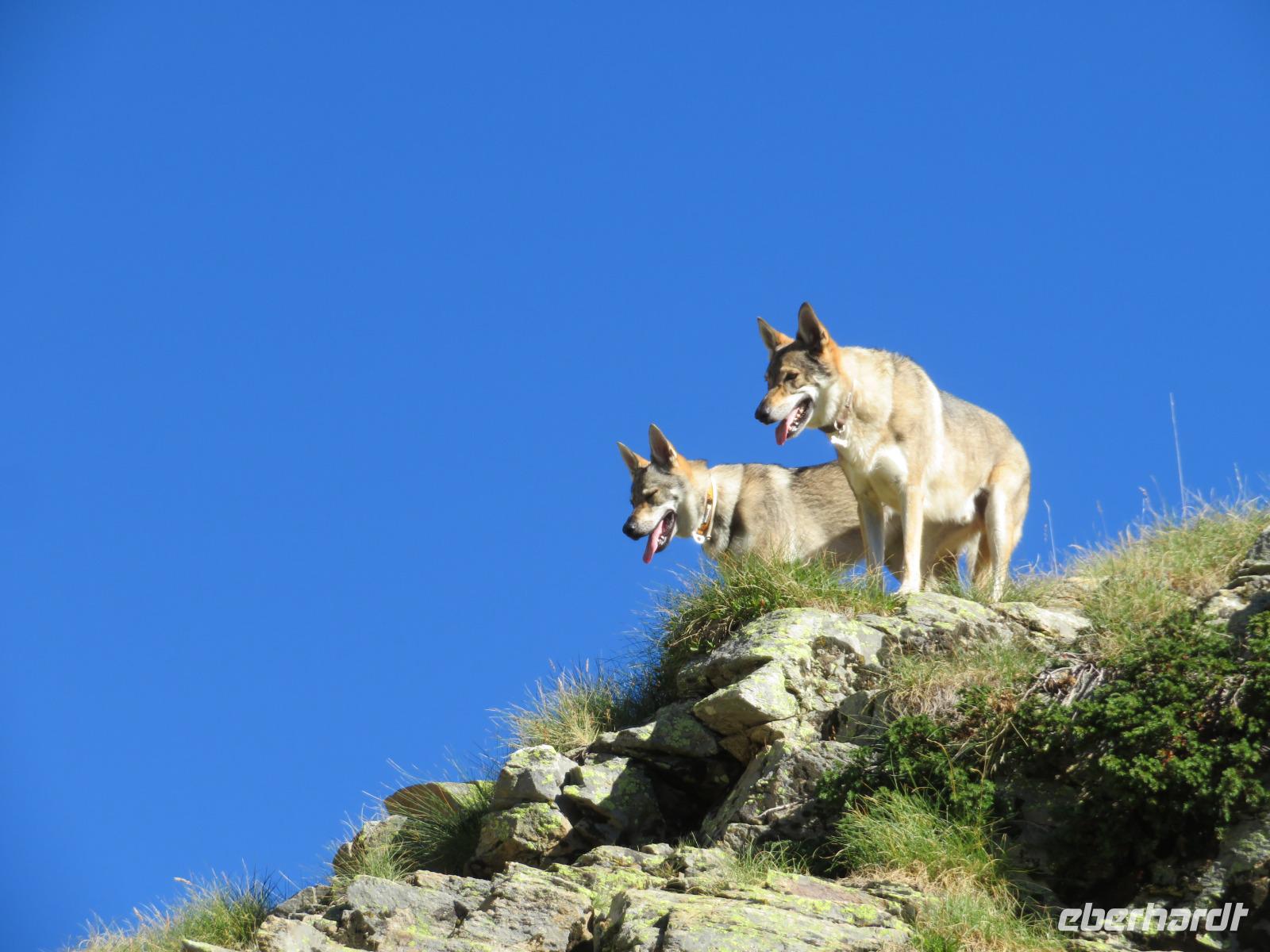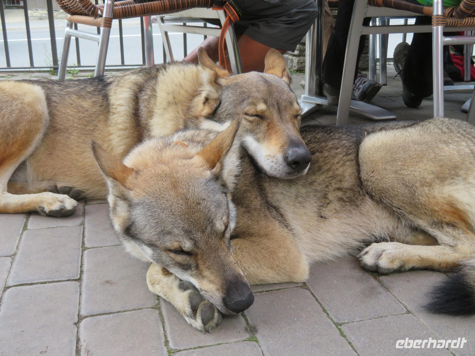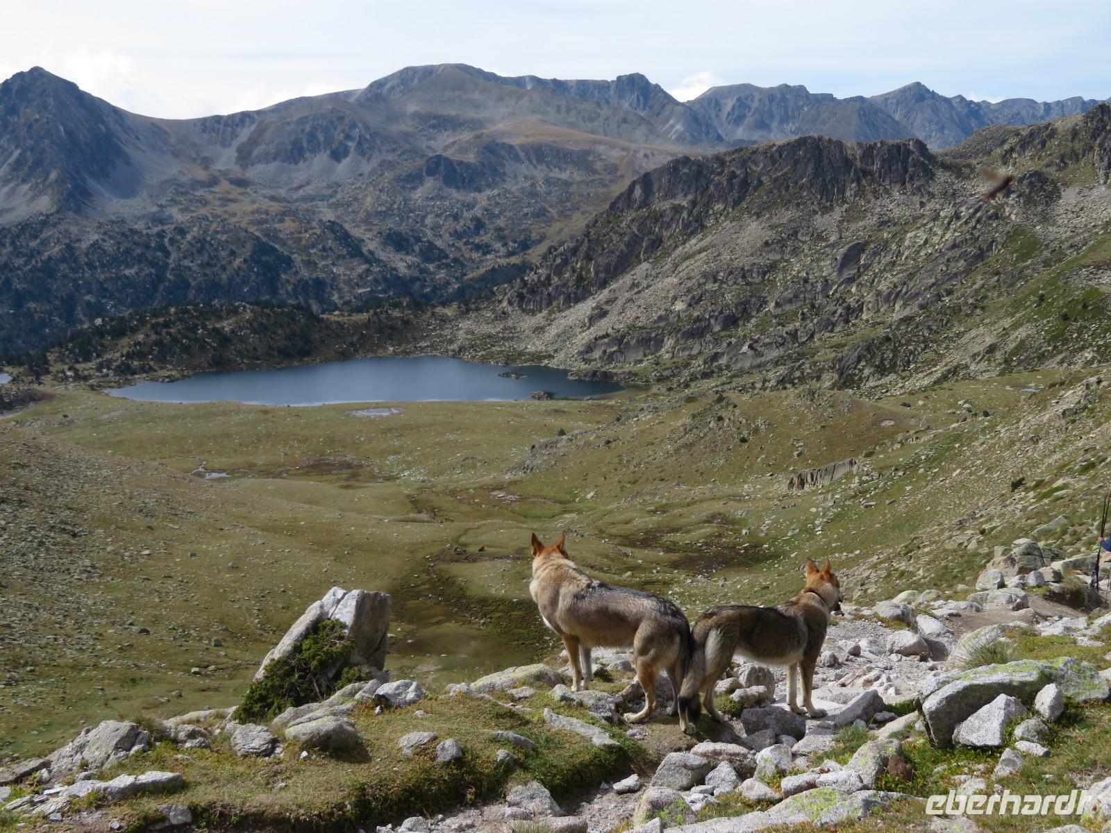 An unserem letzten Wandertag werden wir nochmal zu Gipfelstürmern! Im Winter ist Grau Roig ein Eldorado für Skifahrer und für uns ist es heute ein herrliches Wandergebiet. Noch einmal begleiten uns Selene und Nuuk und bereiten uns viel Freude, wenn sie miteinander rumtoben. Als Marco uns zu Beginn den Gipfel in der Ferne zeigt, können wir noch nicht glauben, dass wir später dort oben stehen werden. Über Stock und Stein arbeiten wir uns Stück für Stück hinauf bis uns schließlich die Bergwelt der Pyrenäen zu Füßen liegt. Wir haben es auf den Montmalús auf 2.781 Meter geschafft und können ganz stolz sein. Oben gibt es ein Picknick mit Höhenluft und viele Gipfelfotos. Aber das soll es natürlich noch nicht gewesen sein - wir müssen auch wieder runter. Und hinab geht es durch eine wilde Hochgebirgslandschaft, über Wiesen und vorbei an mehreren Seen bis wir schließlich den Ausgangspunkt an der Talstation erreichen. Es war eine wunderbare Abschlusstour, die herausfordernd, aber auch ganz besonders aussichtsreich war. In unserer "Stammkneipe" verabschieden wir uns von unserem Wanderführer Marco, der uns mit ausgesprochen viel Freude und Wissen durch die Berge Andorras geleitet hat. Vielen Dank für die tollen Wanderausflüge! Und heute sind sogar unsere beiden tierischen Begleiter müde.