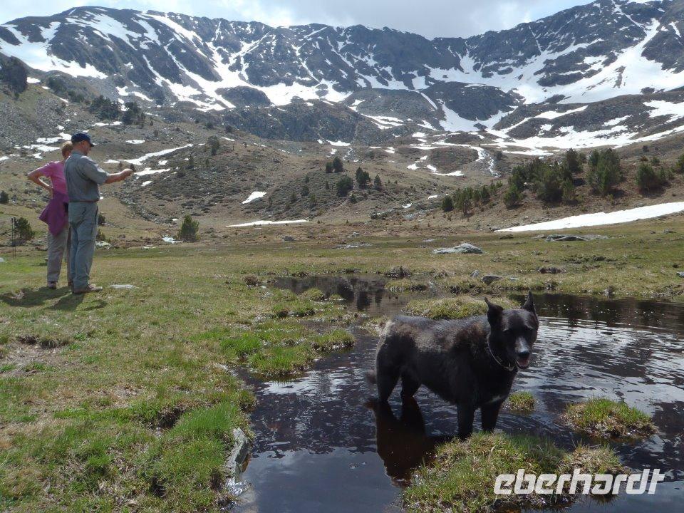 Für unsere heutige Wanderung mussten wir gar nicht erst in einen Bus steigen. Wir liefen direkt vom Hotel aus zum Start der heutigen Wanderung. Dort wartet auch schon Rika ganz geduldig auf uns. Wir verließen das Dorf Soldeu über einen recht steilen Anstieg, danach ging es auf eher natürlichen Wegen weiter. Schon nach dieser kurzen Strecke war allen klar, dass es heut kein leichtes Unterfangen wird. Anfangs läuft man viel durch bewaldetes Gebiet, doch sobald sich dieser lichtet, hat man einen wunderschönen Ausblick auf ElTarter, das Envalira-Tal und das Tal von Incles. Unser Ziel war ein Bergsee, wo wir auch Rast machten. Wenn man es bis hierher geschafft hat, wird man mit einem unglaublich tollem Panorama belohnt. Andorra hatte in diesem Jahr einen außergewöhnlich langen Winter, so dass wir auf den hohen Gipfeln teilweise noch Schnee liegen sahen, was einen wunderbaren Kontrast zu der sonst so grünen und teilweise schon blühenden Landschaft ergab. Hatte für uns aber auch den Nachteil, dass wir nicht noch weiter hinauf zu unserer nächsten Etappe wandern konnten. Wir waren also eher als gedacht wieder beim Anstieg und zurück im Tal. Wir hatten drei Möglichkeiten: direkt zurück zum Hotel, einen nochmal so schwierigen Weg, wie wir gerade schon hinter uns hatten oder noch eine kleine gemütliche Runde. Für uns war klar, dass noch keiner zurück ins Hotel wollte. Wir liefen alle gemeinsam den kürzeren Weg. War im Nachhinein auch gut so, denn gerade im Hotel angekommen, fing es an zu regnen. Nach einem anstrengenden aber sehr schönen Tag, mit wunderbaren Blicken ins Tal, ließen wir den Abend wieder ganz in Ruhe, jeder für sich, ausklingen.
