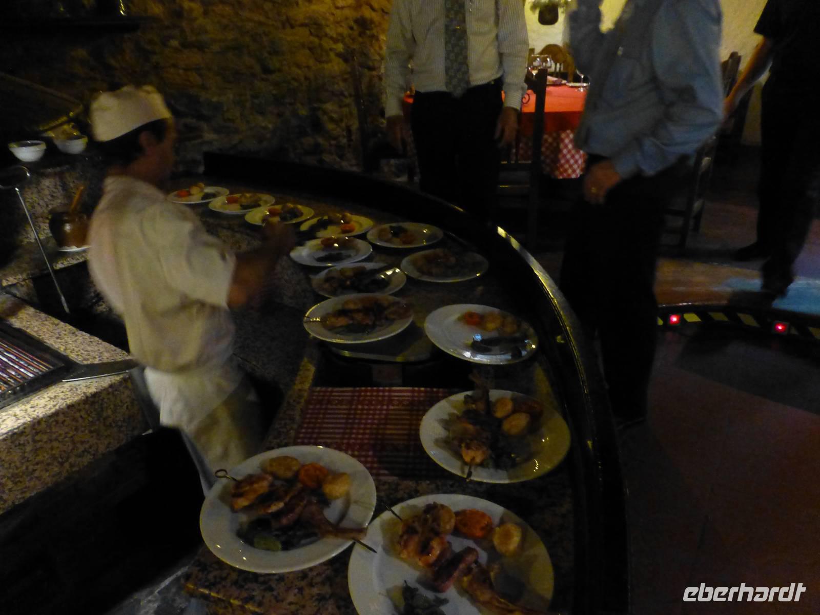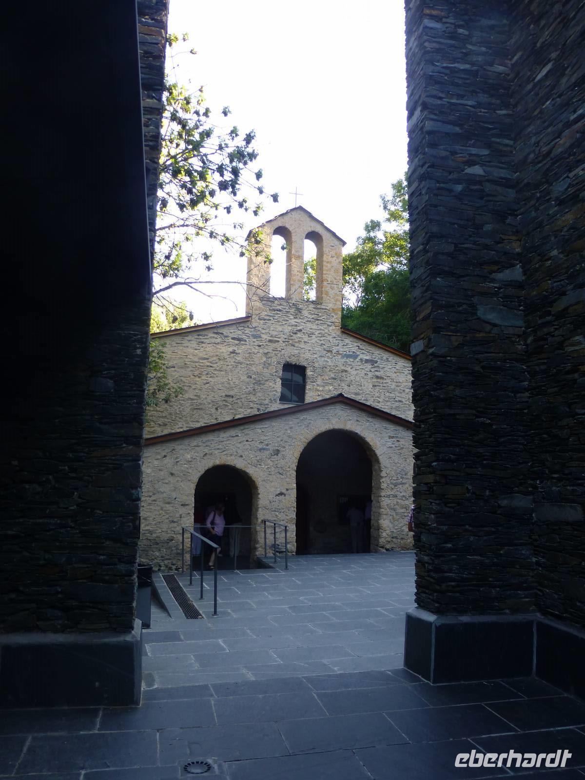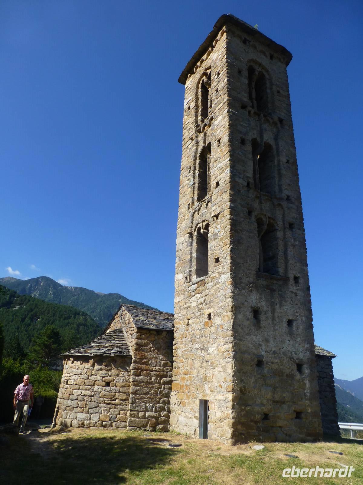 Während es für die Intensiv-Wanderer mit Marco heute nach Ransol ging, starteten wir mit Helga und Vincent pünktlich am Hotel. Wir fuhren zur Kirche Mertixell, welche nach einem Brand in den siebziger Jahren ganz modern und in die Natur eingepasst, wieder aufgebaut wurde. Sie hat den höchsten Glockenturm (35 m) Andorras und liegt 1535 m hoch. Gleichzeitig befindet sich hier der Mittelpunkt des Landes. Mertixell bedeutet Mittagssonne. Weiter ging die Fahrt mit Halt an der alten romanischen Kirche Sant Miquel d´Engolasters bis zum See. Der größte Stausee wurde 1991 gebaut, einer der 56 andorranischen Bergseen wird hier angestaut. Nach einer kurzweiligen Seeumrundung ging es mit dem Bus bergab bis zur spanischen Grenze auf 900 m. Wir wollten in die spanische Enklave Os de Civic, welche 1600 m hoch liegt und 108 Einwohner hat. Der Ort ist nur über Spanien erreichbar. Hier gab es die Möglichkeit, typischen Käse, Wurst und Mitbringsel zu kaufen, danach ging es zum Mittagessen in ein andorranisch-spanisches Restaurant. Das Essen war sehr reichlich, 2 Vorspeisen, dann Suppe, Fleisch und Eis zum Nachtisch. Alles „gewürzt" mit Portwein, Sangria, viel Wein und Crema.