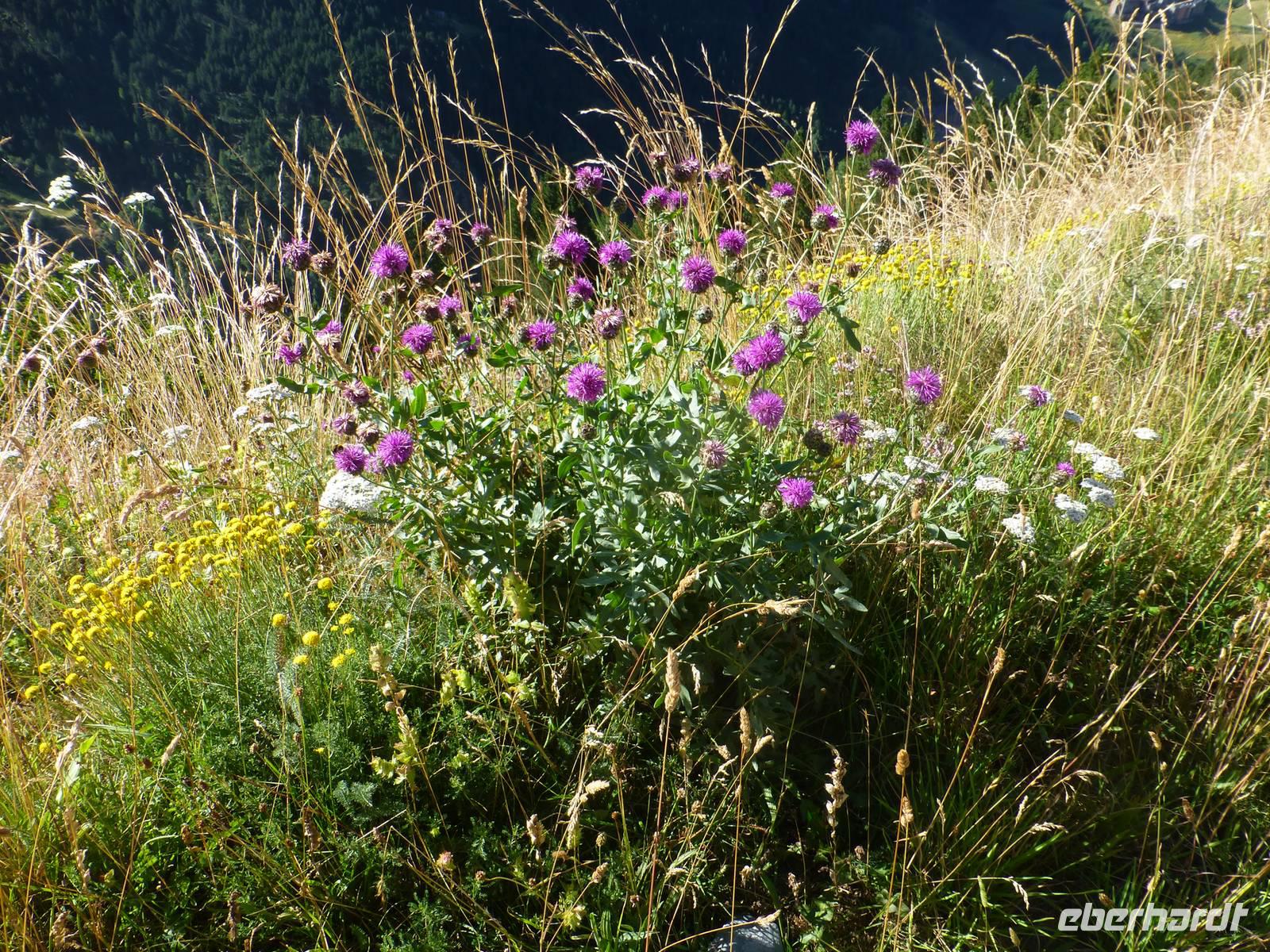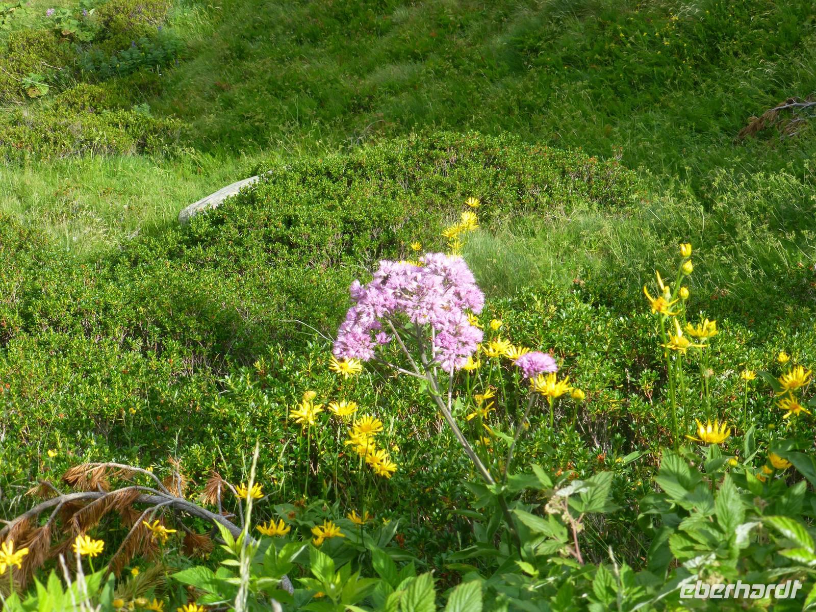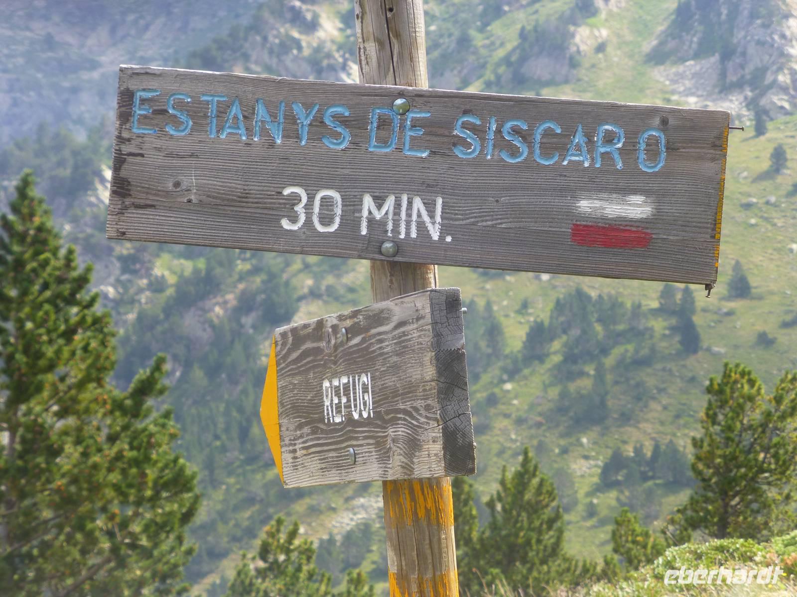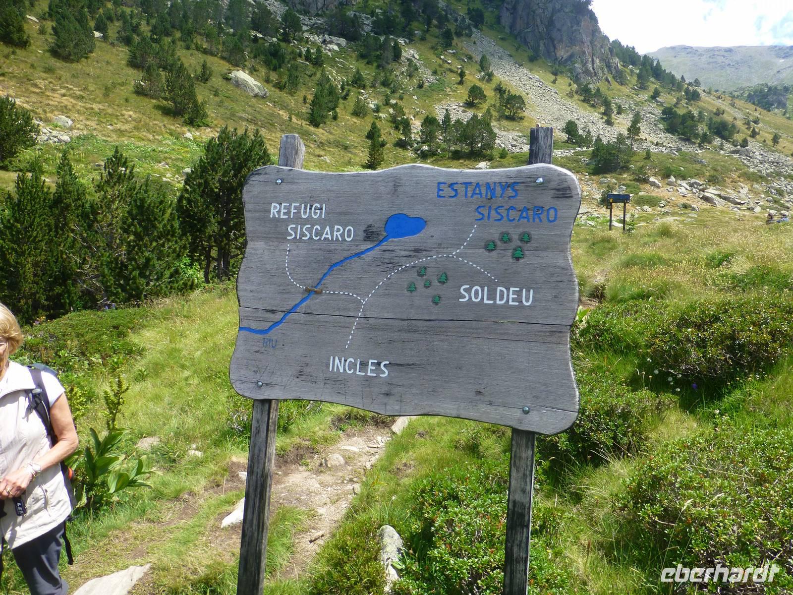 Beide Gruppen starteten gemeinsam bereits um 08.30 Uhr, wieder nach einem umfangreichen Frühstück. Hinter dem Hotel begann ein flotter Aufstieg über Stock und Stein. Nach einer Rast trennten sich die Gruppen, die Intensiv-Wanderer stiegen mit Marco und seinen Hunden wieder ins Tal ab, um dann Richtung Pas de les Vaques und zum Refugi zu wandern.Unsere Gruppe lief jetzt gemütlicher weiter durch die beeindruckende Bergwelt zum Estany del Siscaro auf 2324 m Höhe. Bei einer ausgiebigen Rast am See bewunderten wir Gänsegeier und Bergziegen und erfreuten uns an den vielen schönen Blumen. Unsere Bergführer Ada und Ignacie erzählten von den eingeführten Murmeltieren, deren schrille Töne wir gehört haben. Es gab auch einige mutige Schwimmer, die sich im malerischen See vergnügten. Der Abstieg erfolgte zurück ins Tal, wo wir uns entschlossen, die restlichen Kilometer bis ins Hotel zu laufen.