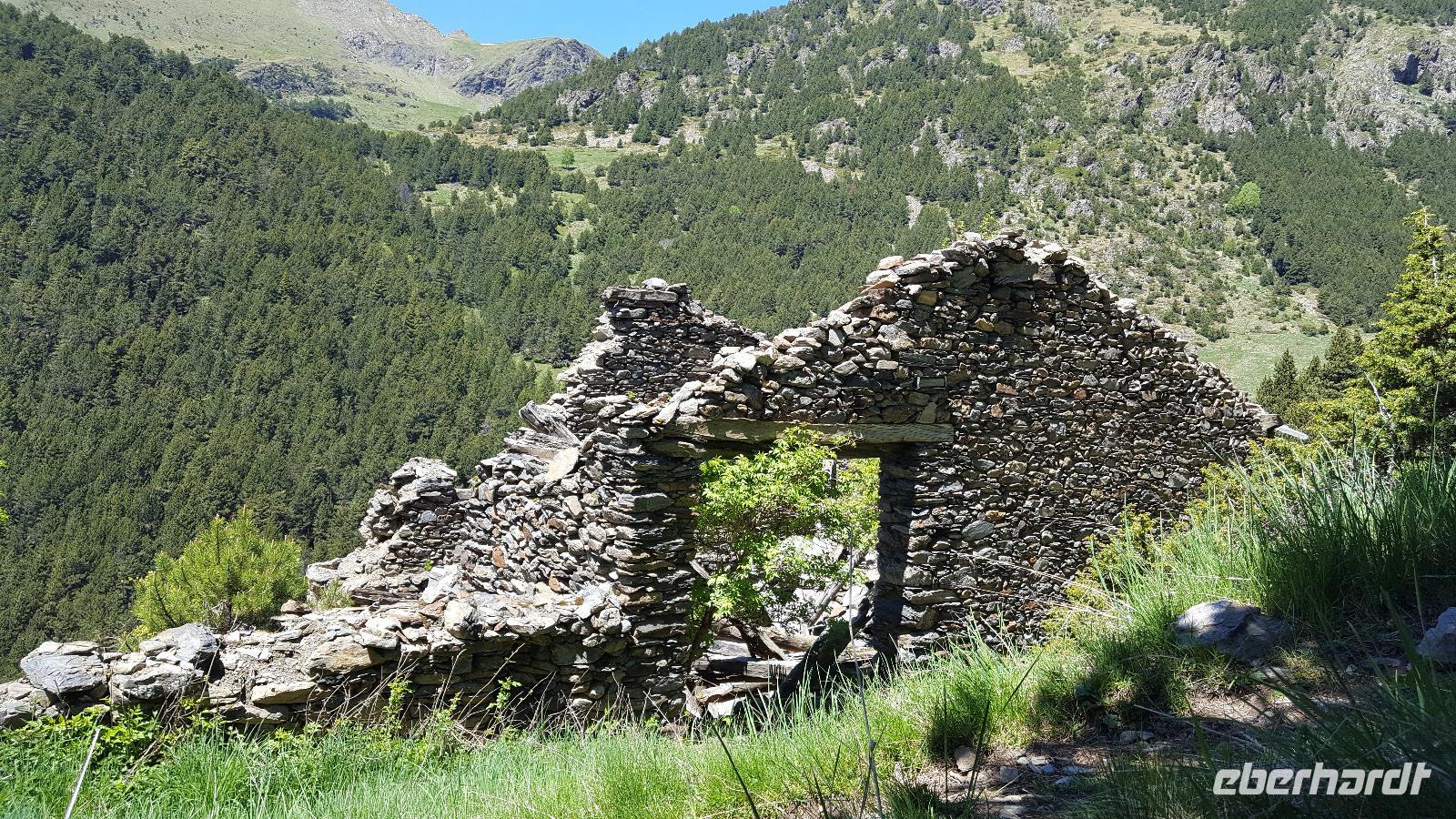 Der Abstieg fiel uns etwas leichter und immer am Riu de la Coma entlang. Durch verlassene Gehöfte und unzählige Steinmauern wirkte die Landschaft sehr reizvoll.