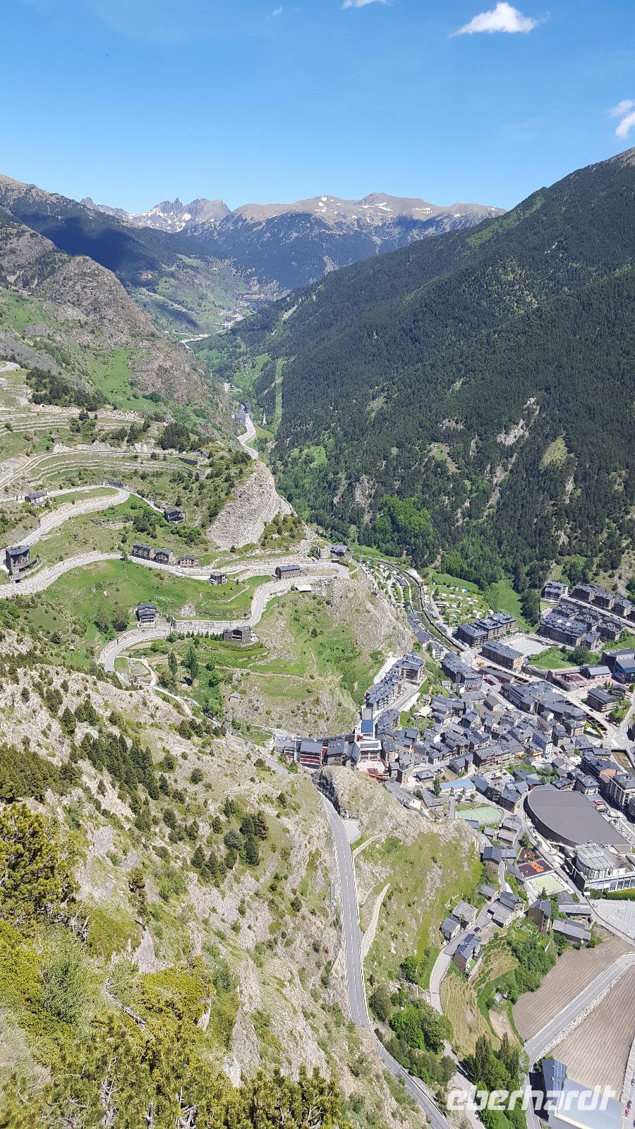 Atemberaubend war der Blick von der Aussichtsplattform über Canillo. Erst seit 3 Jahren ist es möglich, diesen faszinieren Blick über die Bergwelt Andorras zu genießen von dem „Roc del Quer" aus.