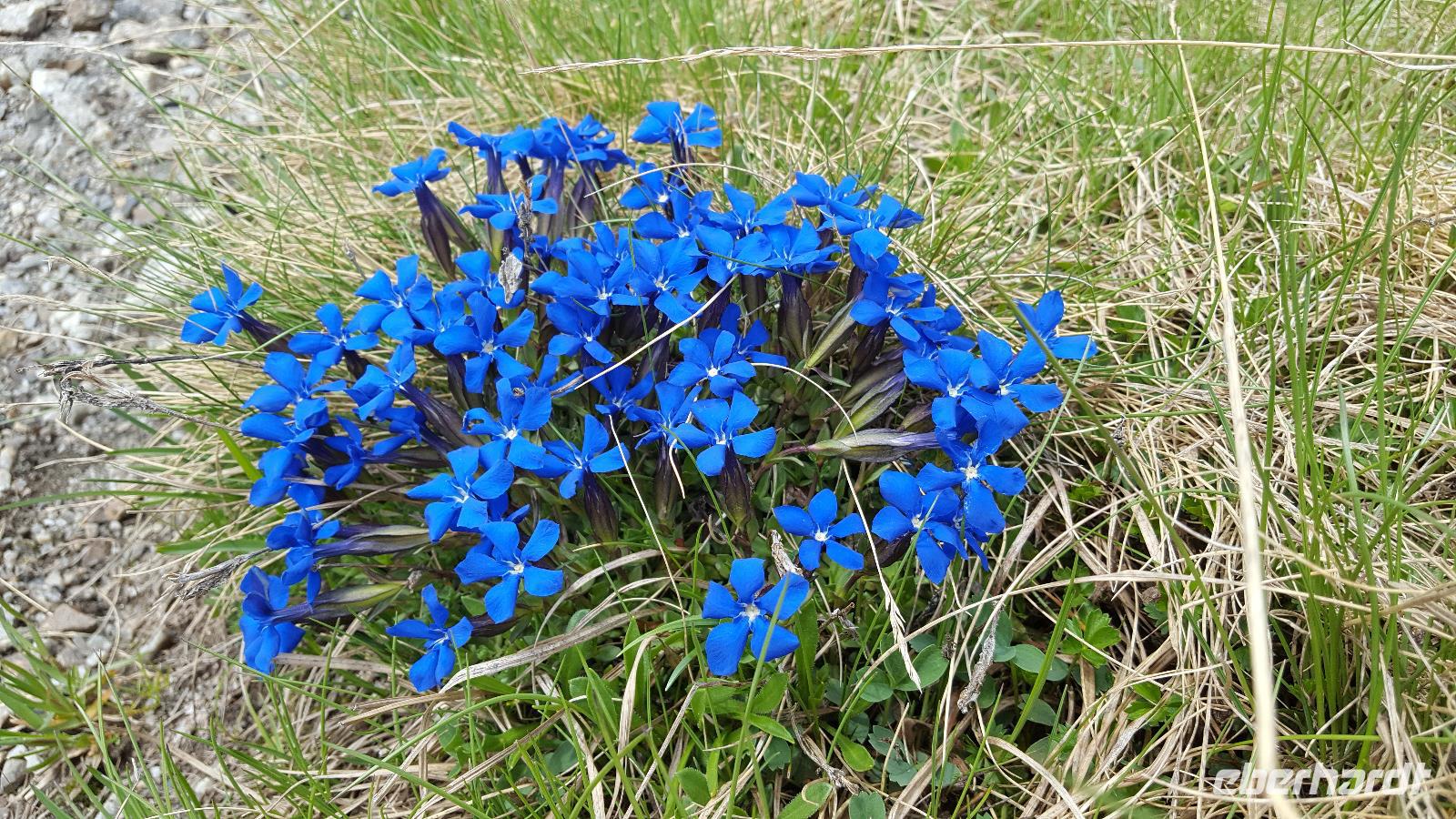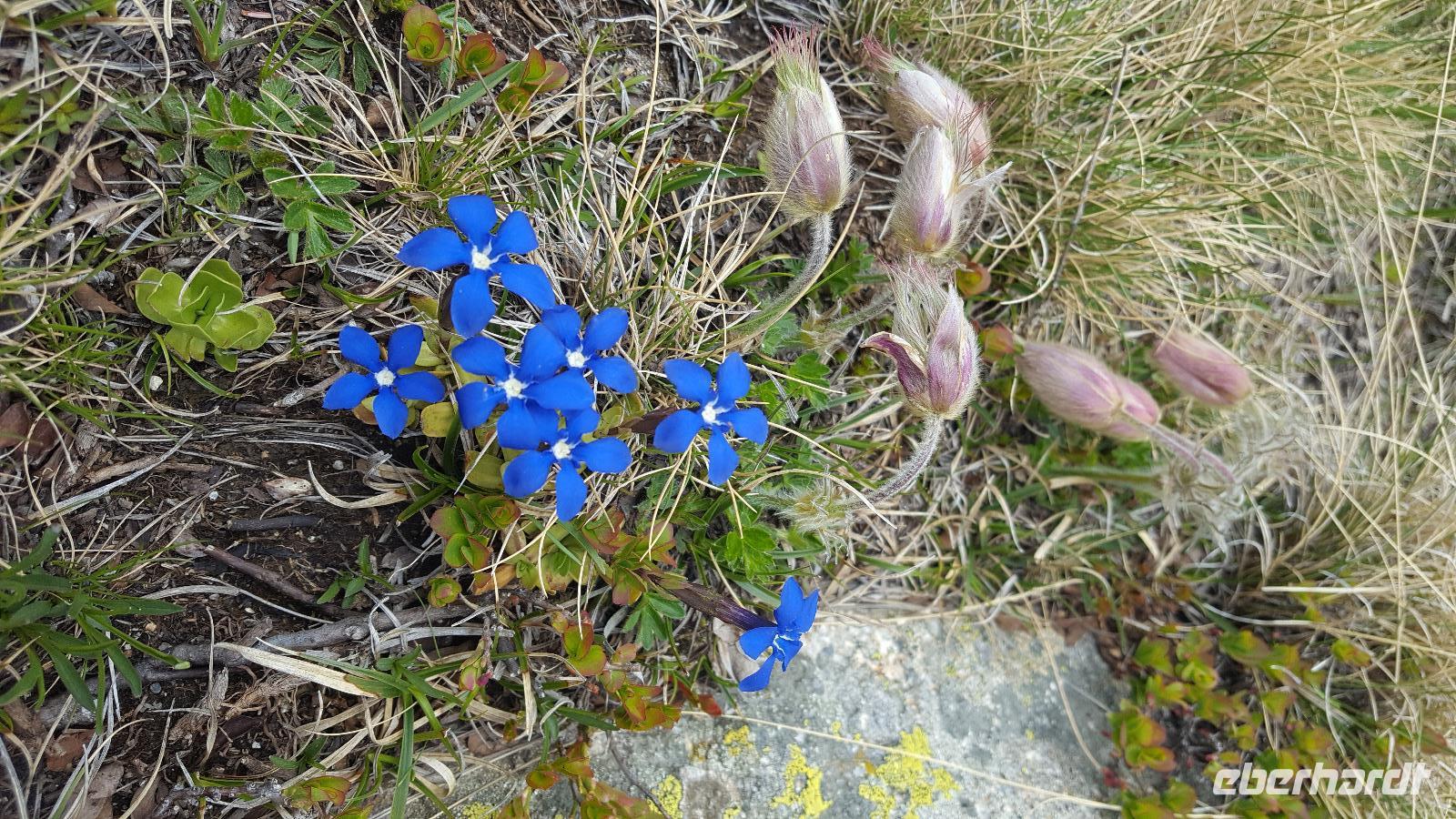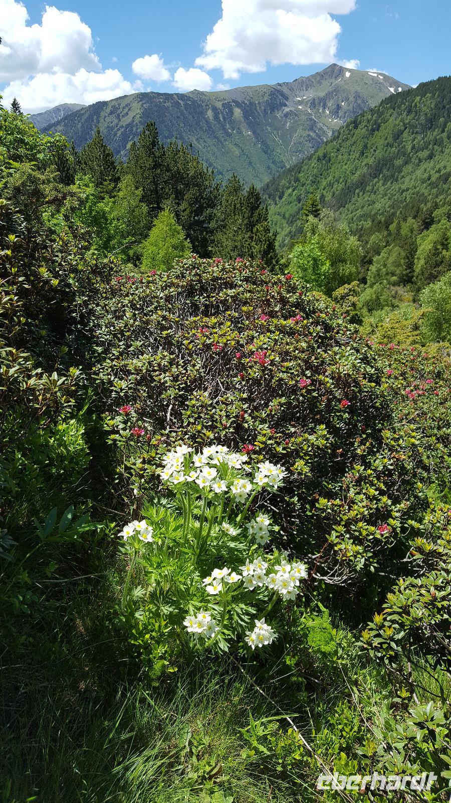Der Rundweg führte durch Wälder, über Wiesen und an einem Bach vorbei. Die Pyrenäen-Anemone und den lila Alpen Enzian konnten wir oft bewundern.