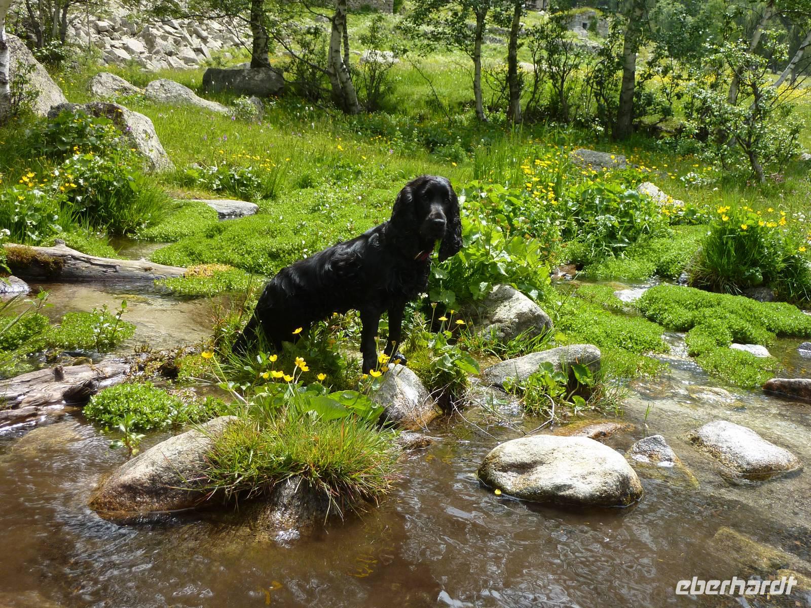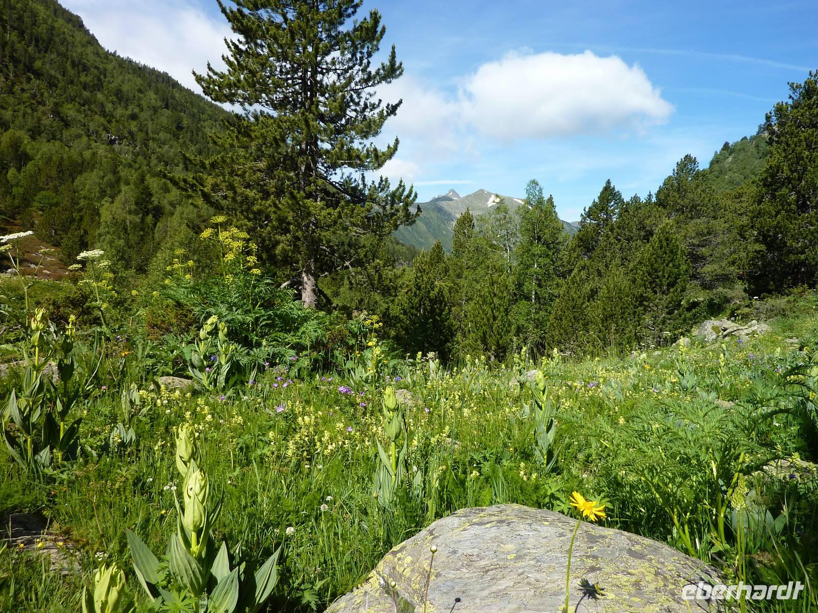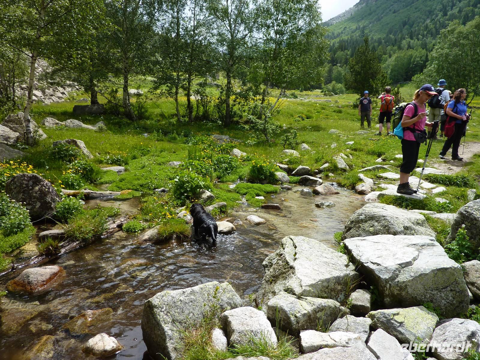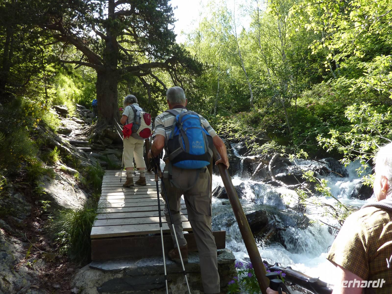 Jedenfalls fanden wir hier Einsamkeit und Ruhe in einem prächtigen Naturpanorama. Der Weg führte uns durch dichte Wälder und über idyllische Talwiese, entlang des kleinen gleichnamigen Bergflüsschens, der sich mal sanft mäandernd und plätschernd, mal als schäumender Sturzbach präsentiert. Wunderschön..