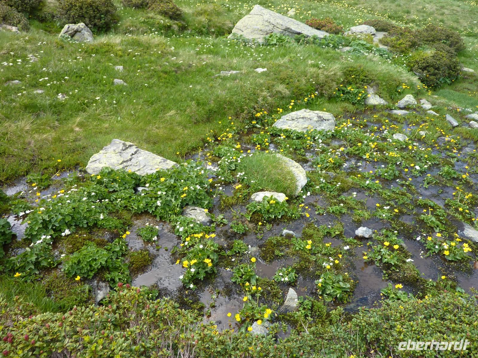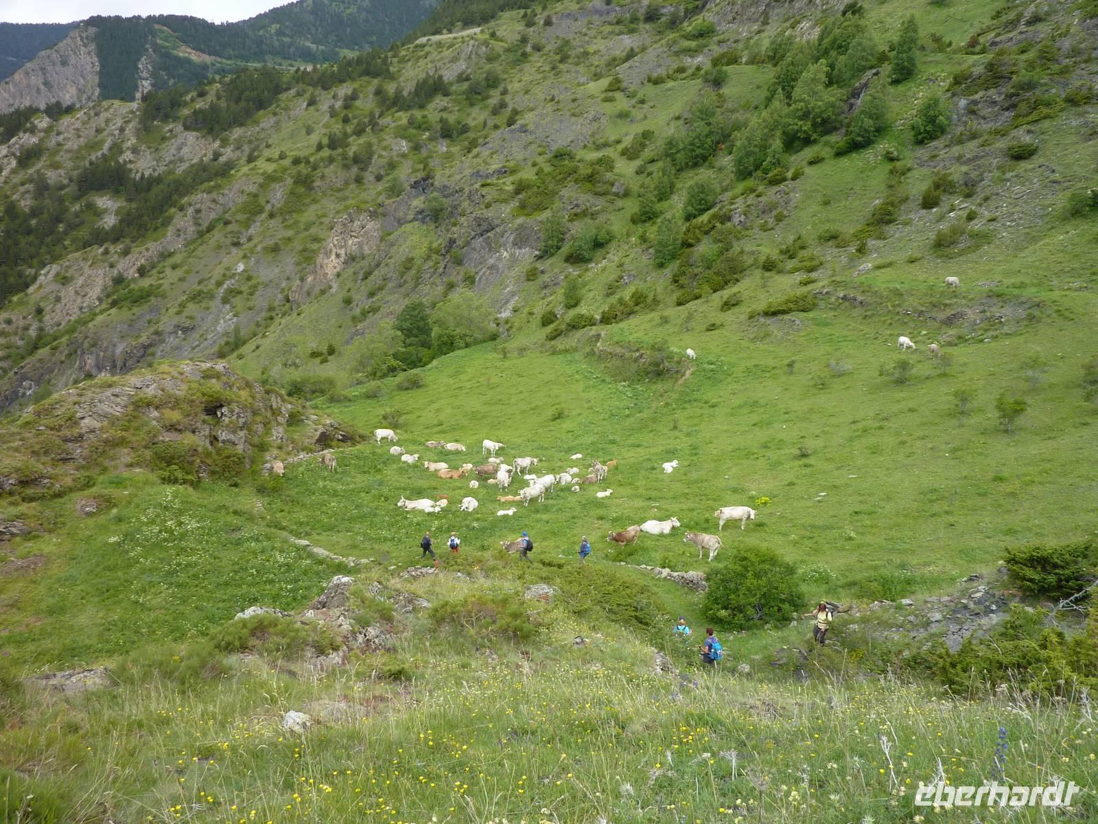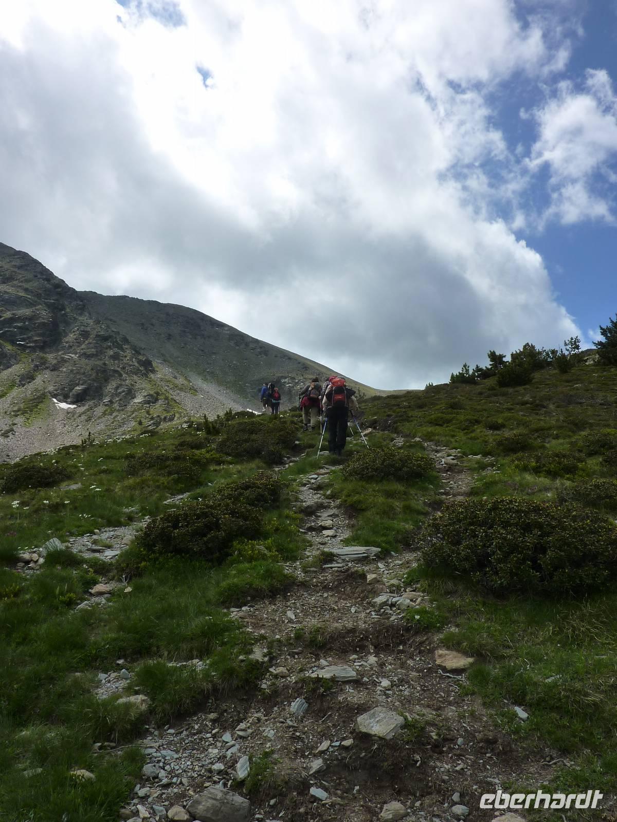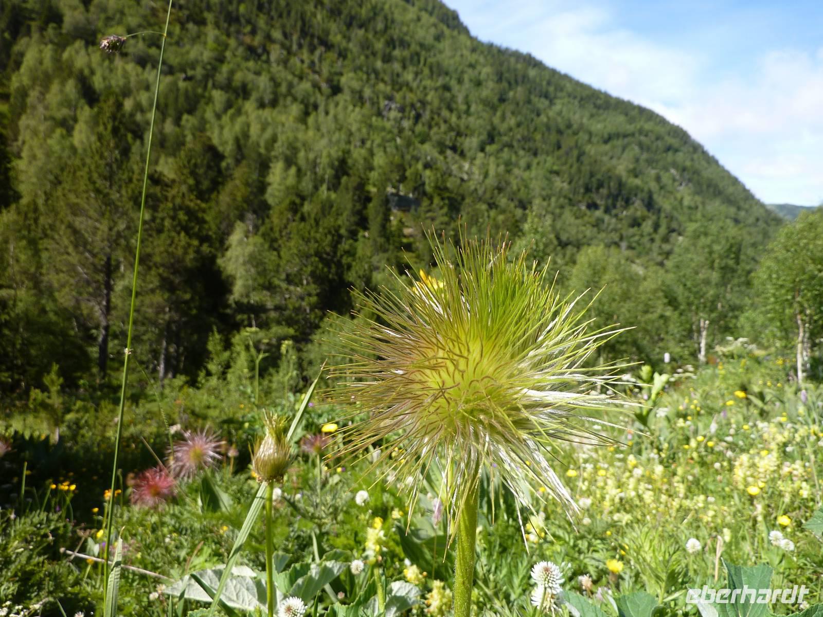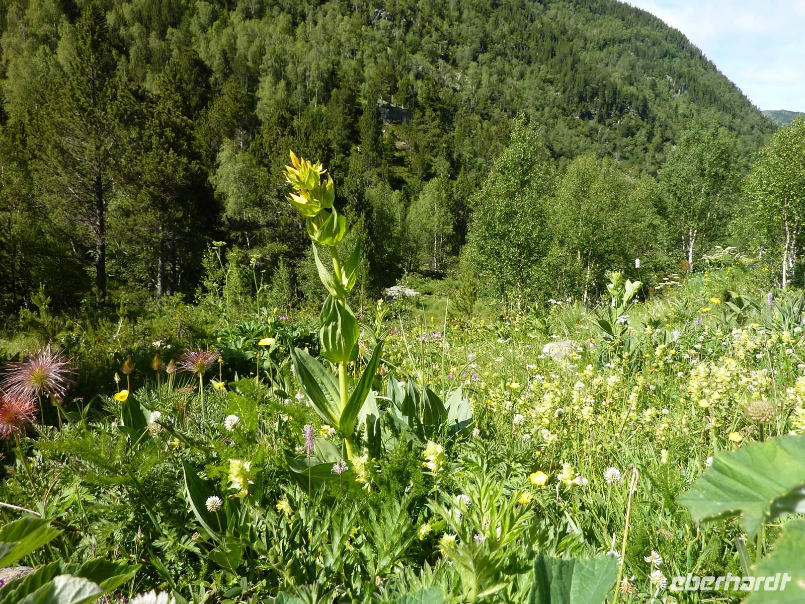 Jedenfalls fanden wir hier Einsamkeit und Ruhe in einem prächtigen Naturpanorama. Der Weg führte uns durch dichte Wälder und über idyllische Talwiese, entlang des kleinen gleichnamigen Bergflüsschens, der sich mal sanft mäandernd und plätschernd, mal als schäumender Sturzbach präsentiert. Wunderschön..