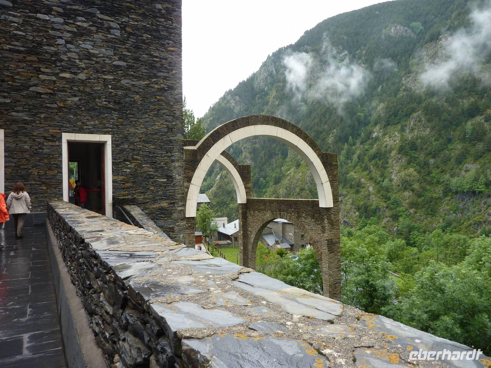 Heute blieben die Wanderschuhe im Hotel, denn wir wollten mit dem Bus das kleine Land Andorra entdecken. Das Wetter war auch nicht gerade für eine Wanderung geeignet, also das beste was wir tunen konnten. Trocken saßen wir im Bus, und Ada, die kleine Schwesetr von Marco erzählte uns heute viel Wissenswertes über ihr kleines Land Andorra. Wir besuchten das Museum Plandolit in Ordino, das ehemalige Wohnhaus einer reichen Familie, passierten romanische Kirchen und Brücken, versuchten einen Ausblick vom Flaschenhalspass zu ergattern, leider ohne Erfolg, denn inzwischen regnete es in Strömen. Unterwegs machten wir einen kleinen Abstecher zu einer Likörfabrik. Hier wirklt und arbeitet einen Deutsche zusammen mit ihrem andorranischen Mann und stellt ganz leckere Süffigkeiten her. Es durfte natürlich reichlich gekostet werden. Und in Andorra la Vella, der Hauptstadt Andorras, suchten wir nach dem Besuch des alten Parlaments ganz zügig ein großes Kaufhaus auf, in dem wir trockenen Fußes uns bewegen konnten.
