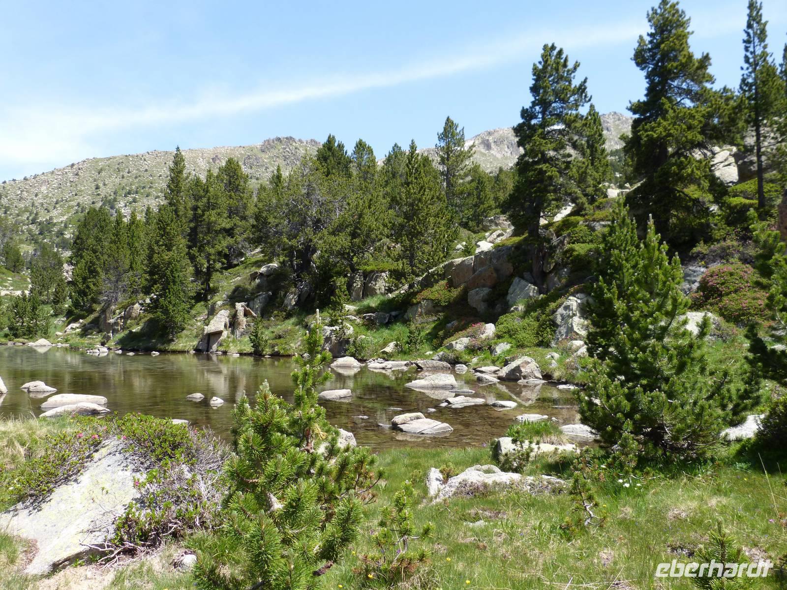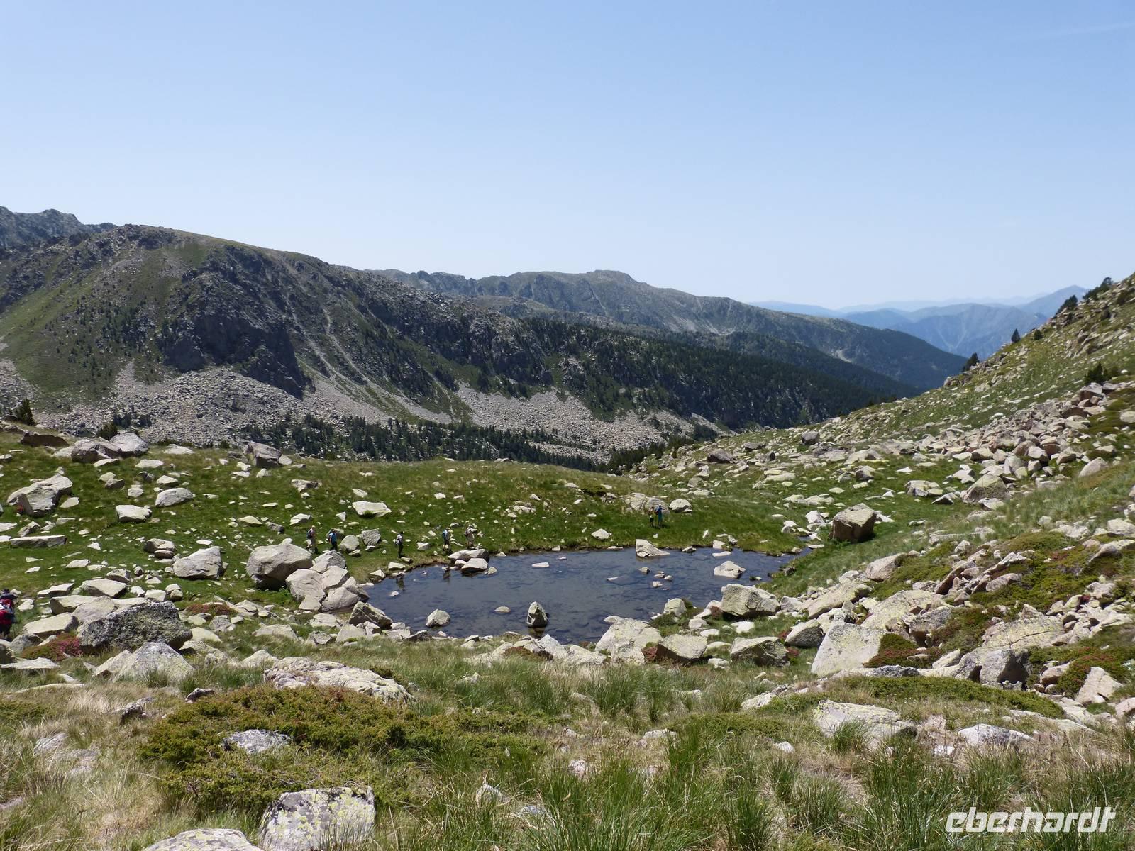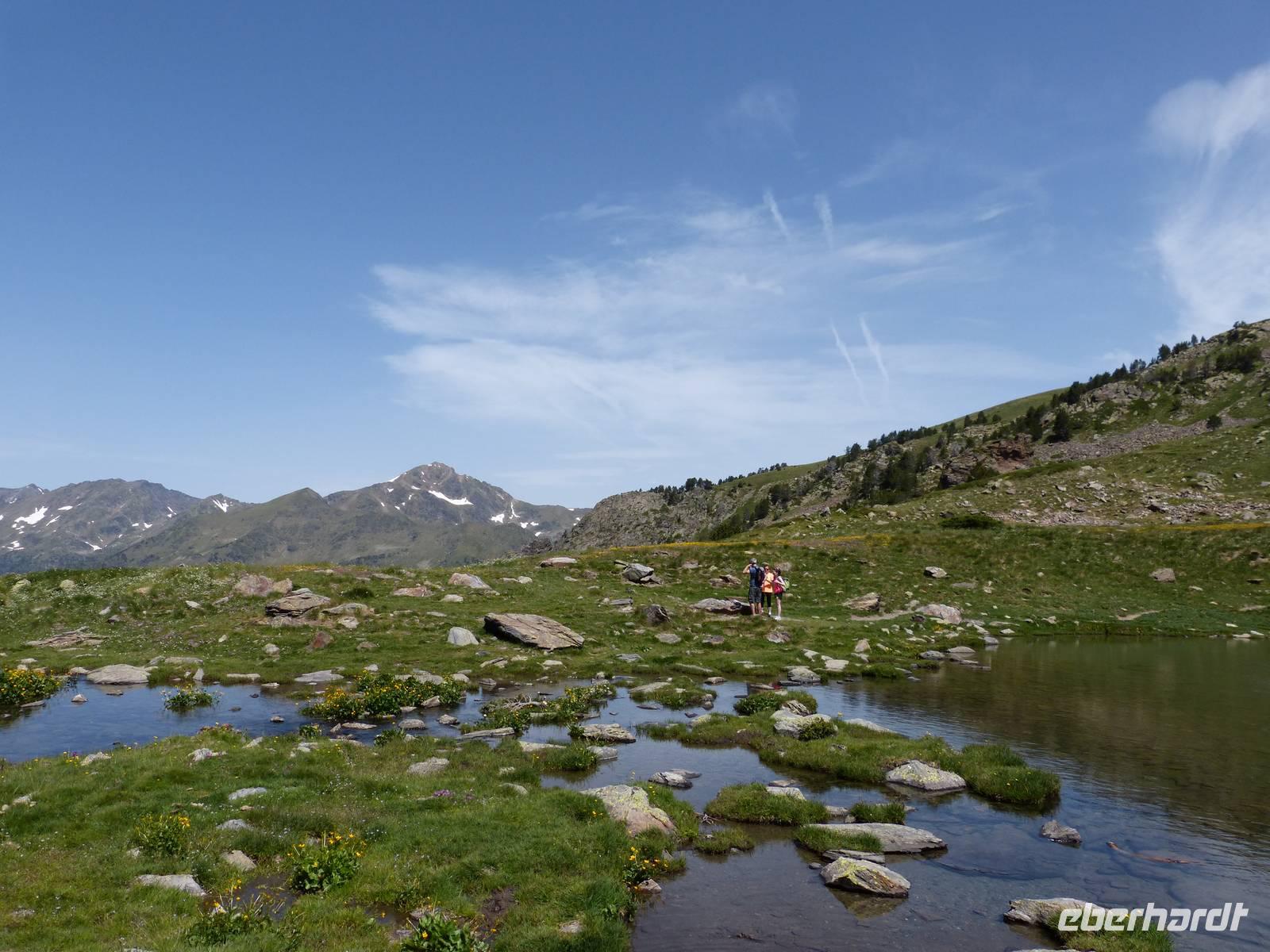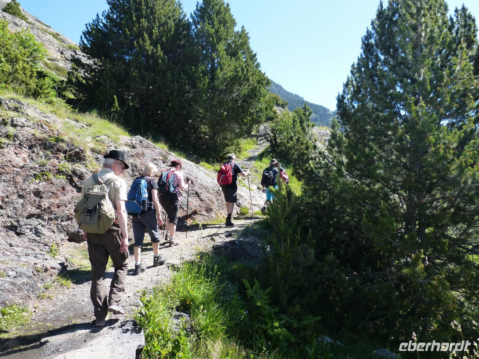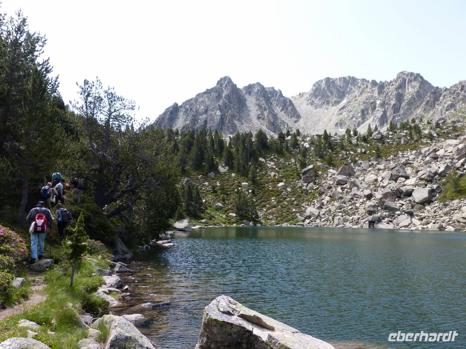 Da auch für den heutigen Tag wieder traumhaftes Wetter mit strahlendem Sonnenschein angekündigt war, vertrauten wir Marco und unternahmen eine andere Wanderung als ausgeschrieben. Wir entschieden uns für mehr Höhenmeter, sodass die Luft etwas frischer als in niedrigeren Höhen war. Wir fuhren mit dem Bus zu erst nach Encamp und folgten von hier einer Serpentine in die Berge. Ab einer Höhe von 1900m setzten wir unseren Weg, heute zusammen mit Marta, Marcos Freundin, zu Fuß fort. Wir begannen mit einem Anstieg im Schatten und folgten einem schmalen Weg direkt durch einen Kiefernwald. Weiter oben kamen wir dann an einem Flußlauf vorbei und der gesamte Weg wurde feuchter, Achtung bei der Wahl der richtigen Steine war gefragt! Dann ging es noch ein wenig über Stock und Stein und ein selbst für Andorraner teils unbekannter Bergsee war unser Ziel für die heutige Mittagsrast. Einige Mutige erfrischten sich im kühlen Nass oder ließen sich etwas Bärwurz schmecken. Dann ging es aber auch schon weiter und nach Ankunft an einer Berghütte, entschieden wir gemeinsam noch höher zu weiteren Bergseen zu steigen. Wir legten insgesamt einen Höhenunterschied von 816m zurück und waren von der wunderschönen Aussicht beeindruckt. Am späten Nachmittag kamen wir dann wieder ins Hotel zurück und ließen den Abend gemütlich bei leckerem Essen und einem Glas Wein oder Bier ausklingen. Natürlich durfte einen witzige Erzählung von Manfred nicht fehlen. :)