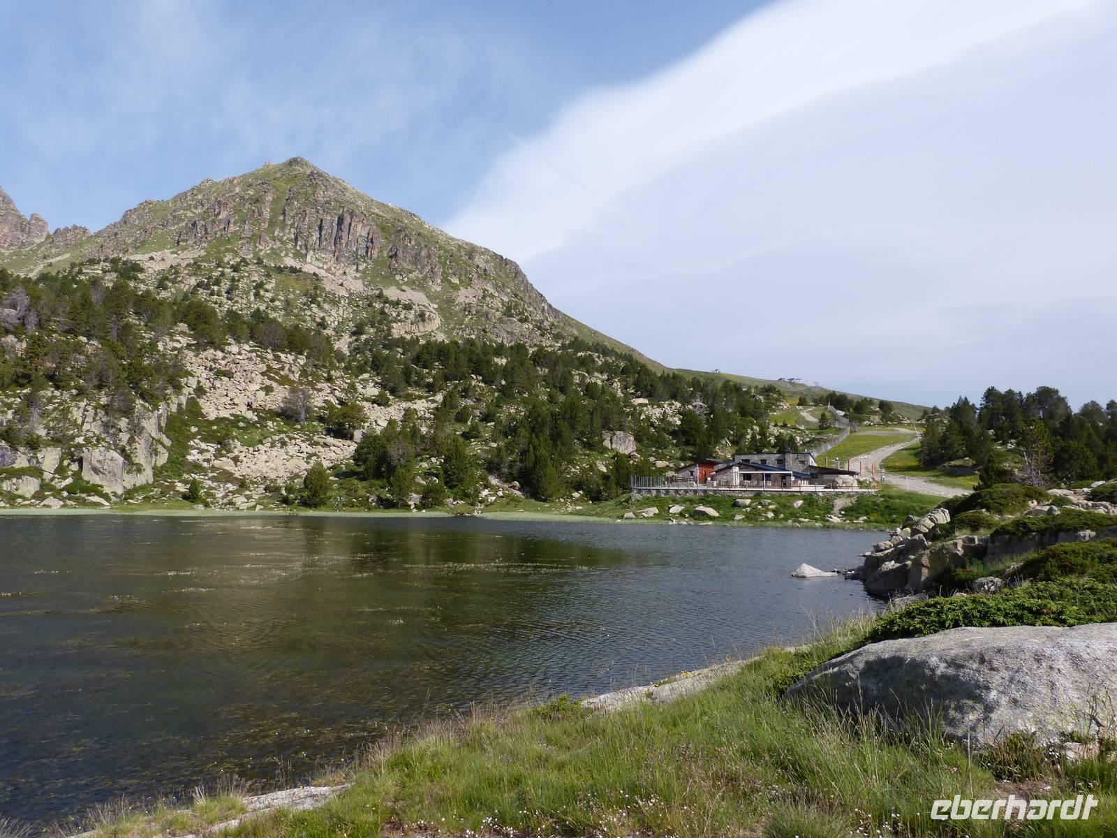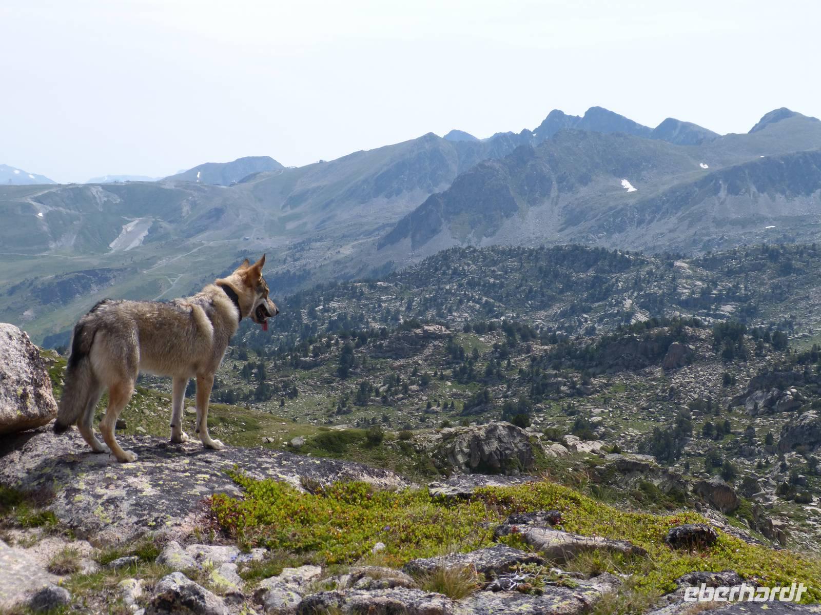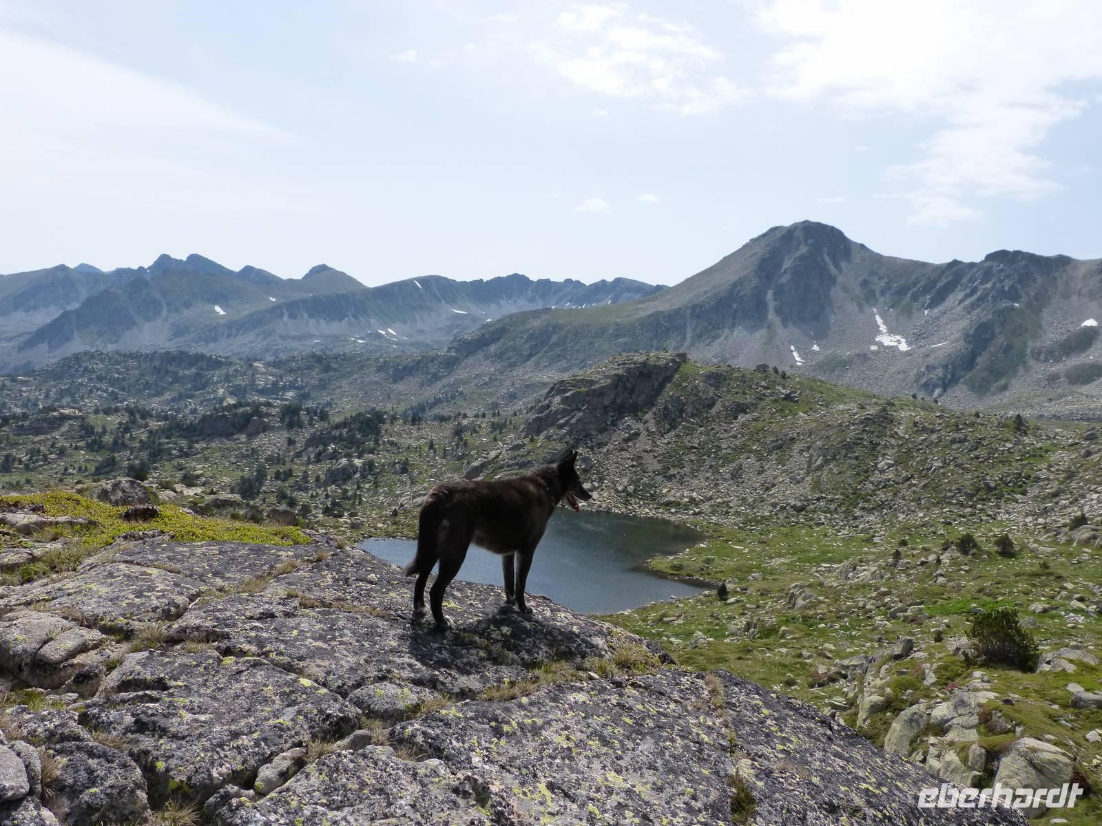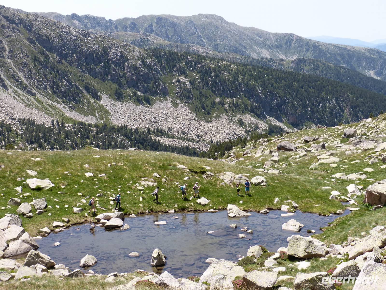 Unsere heutige Tour begann direkt am Hotel und führte uns durch die wunderschöne Natur Andorras. Auch hatten wir ab heute treue Begleiter an unserer Seite- Rika und Luc, die beiden Hunde von Marco kamen mit auf Wanderschaft. Bei einem ersten Anstieg im Schatten, streiften wir durch das satte Grün des Waldes und kamen schließlich zu einem Pfad mit einem wunderschönen Panorama auf das Tal von Incles. Von hier ging es weitere Meter nach oben, und unsere Anstrengung wurde durch eine entspannte Mittagspause an dem Bergsee von Siscaro entlohnt. Nach dem Mittag verabschiedeten wir uns vorerst von Manfred, da dieser mit Joel zusammen, den etwas entspannteren aber genauso wunderschönen Weg direkt ins Tal von Incles vor zog. Der Rest der Gruppe stieg weiter auf, und erlebte einen atemberaubenden Rundum-Blick auf die Bergwelt von Andorra. Der Abstieg verlief dann ähnlich - Trittsicherheit war gefragt und der ein oder andere Gebirgsbach kreuzte unseren Weg. Am Hotel kamen wir dann kurz versetzt am Nachmittag an. Wir genossen die letzten Sonnenstunden des Tages bei einer Tasse Kaffee, suchten eine Erfrischung im Pool oder nutzten die am Haus gelegene Seilbahn um ein kühles Bier mit toller Aussicht zu genießen.