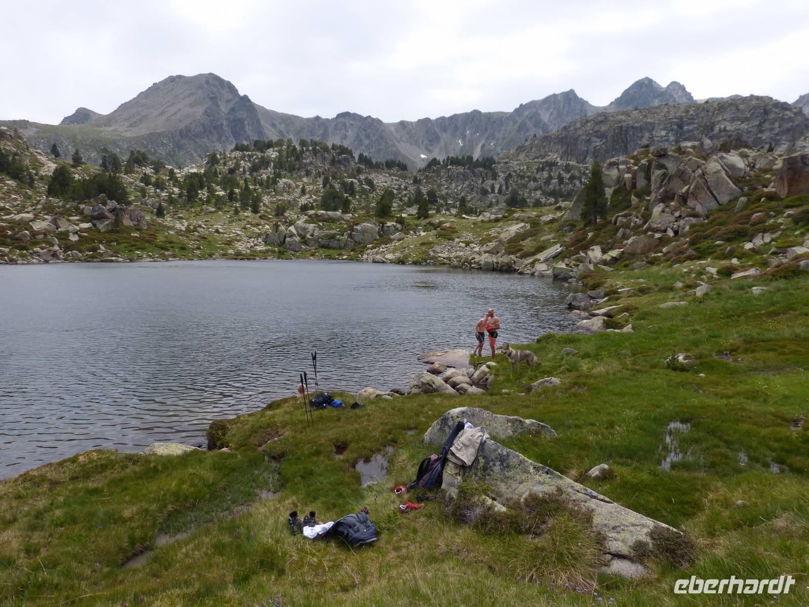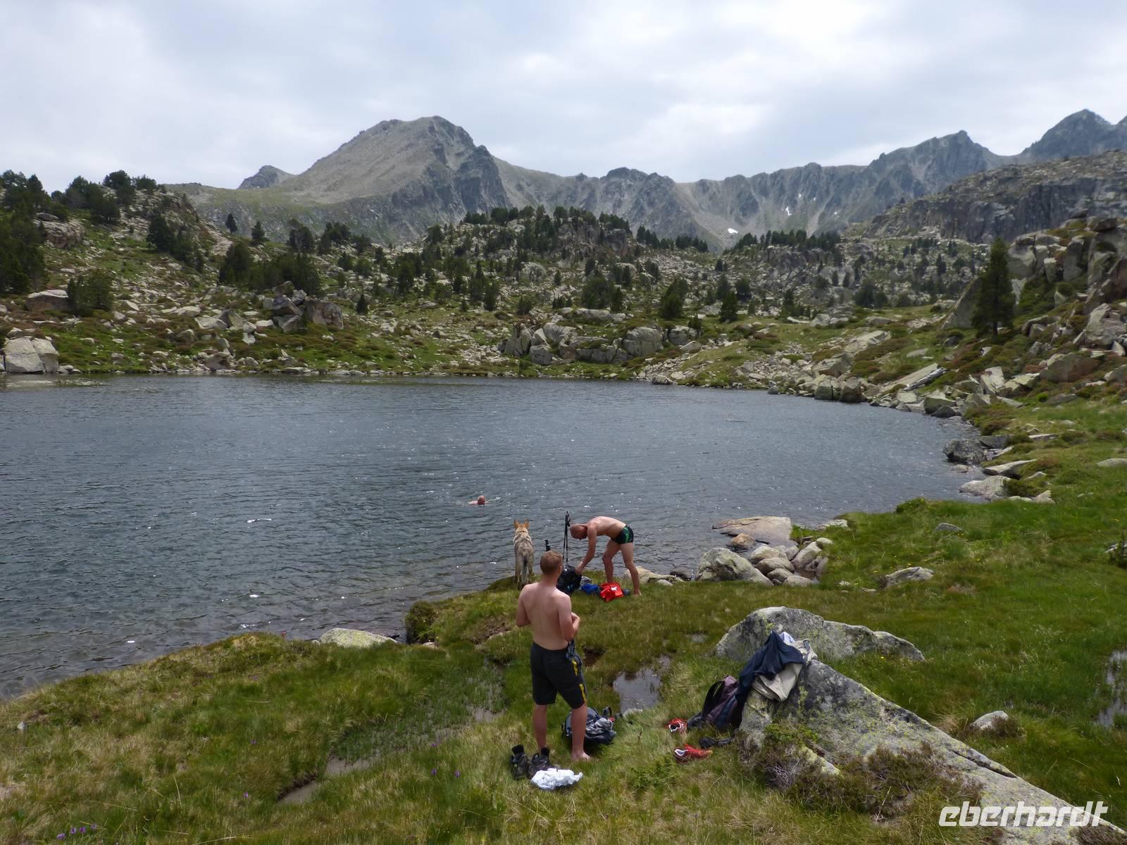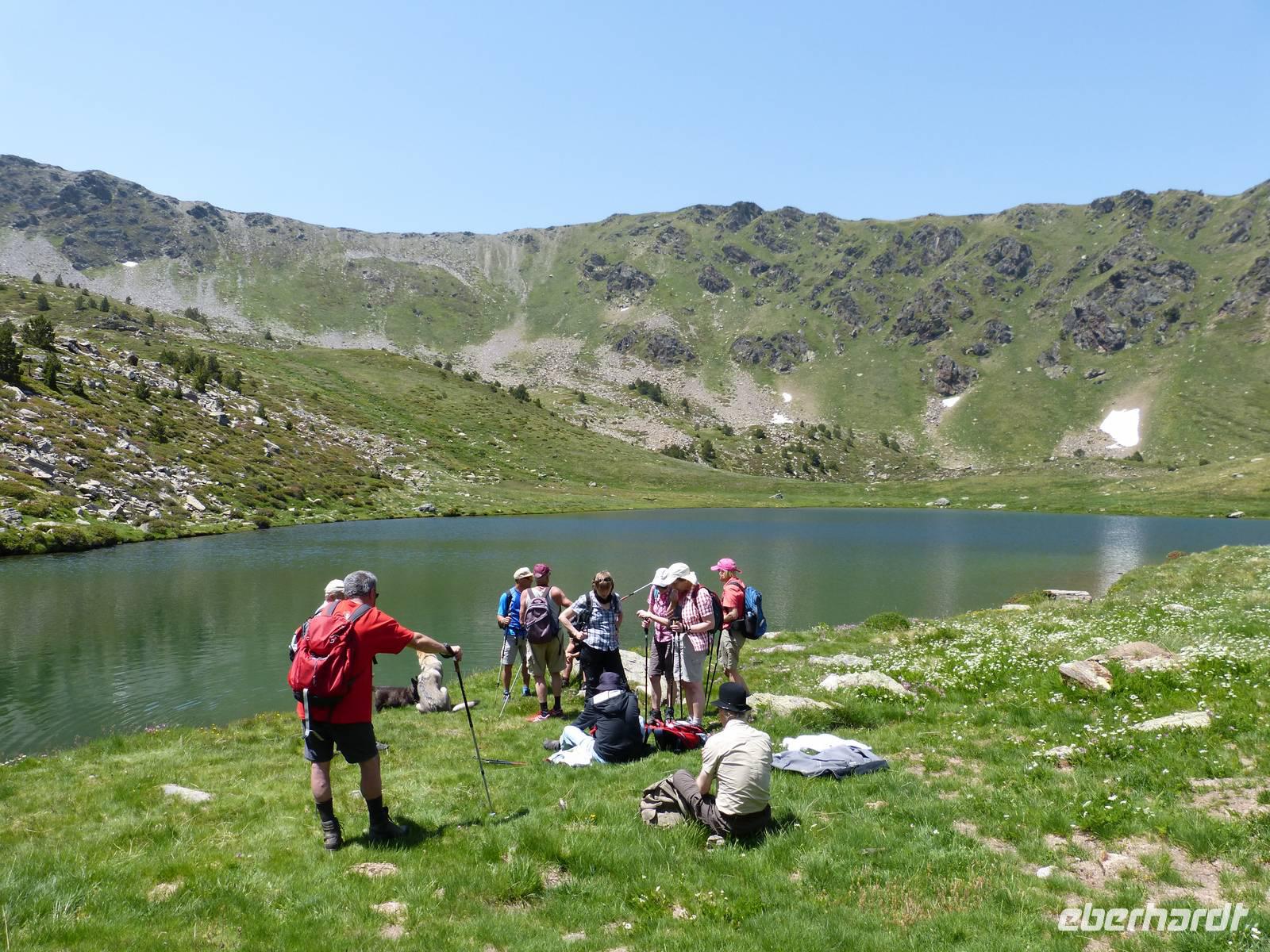 Nach dem Frühstück begaben wir uns auf unsere für diese Reise letzte Wanderung. Wir fuhren zu nächst nach Ordino und von hier weiter zum Eingang des Sorteny Parks, einem der beliebtesten Wandergebiete in Andorrra. Da es zudem Samstag war, merkte man heute besonders, dass es auch die Einheimischen gern in die Natur zieht. Wir starteten unsere Tour mit einem breiteren Weg und hielten zudem an einem kleinen Botanischen Garten, welcher vor allem die Artenvielfalt der Pflanzen dieser Region darstellte. Im Anschluss liefen wir wieder an einem kleinen Bach entlang und ein Anstieg von knapp 400m lag vor uns. Vorbei an wunderschönen Bergwiesen ging es zu einem herrlich gelegenen Bergsee in 2350m Höhe. Die letzte Möglichkeit zum Baden in einem Bergsee stand zur Wahl und der ein oder andere wagte die Erfrischung. Mit einer anschließenden Rast in einer Berghütte verwöhnten wir heute auch unseren Gaumen und ließen uns ein kleines Mittagessen schmecken. Dann begaben wir uns auch schon wieder in Richtung Parkplatz, wo bereits Vincent wieder auf uns wartete. Hier hieß es dann Abschied nehmen von Marco und Joel, sowie den beiden Hunden. Nach der Ankunft im Hotel, tranken wir zum Teil noch einen Kaffee auf der Sonnenterrasse und trafen uns dann beim Abendessen. Eine wunderschöne Reise neigt sich so langsam dem Ende.