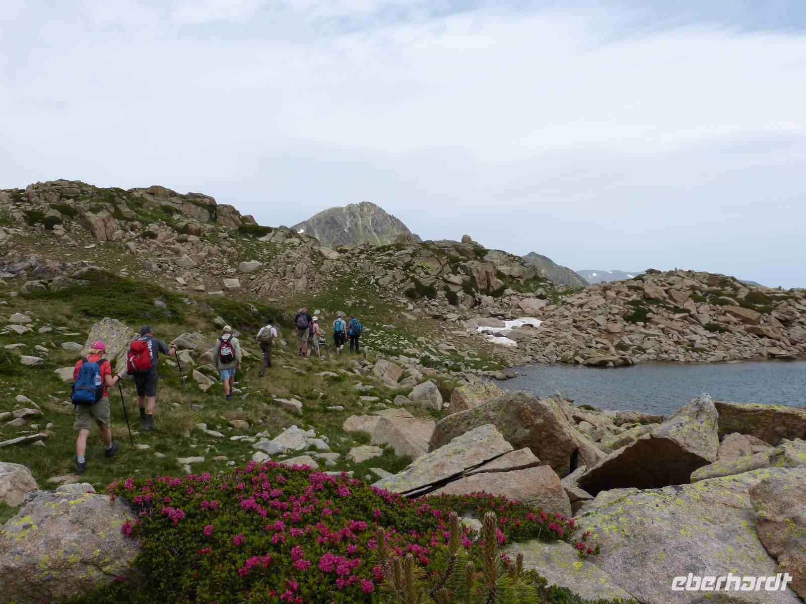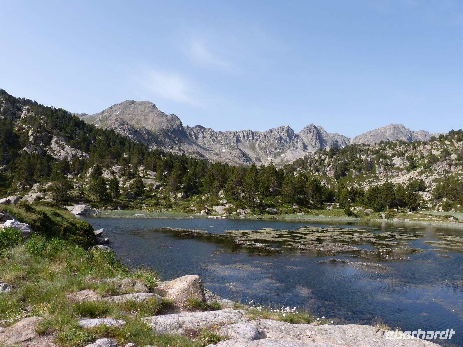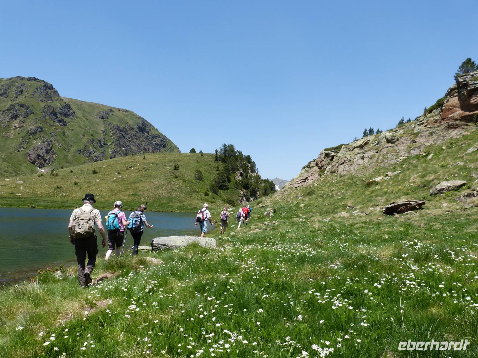 Nach dem Frühstück begaben wir uns auf unsere für diese Reise letzte Wanderung. Wir fuhren zu nächst nach Ordino und von hier weiter zum Eingang des Sorteny Parks, einem der beliebtesten Wandergebiete in Andorrra. Da es zudem Samstag war, merkte man heute besonders, dass es auch die Einheimischen gern in die Natur zieht. Wir starteten unsere Tour mit einem breiteren Weg und hielten zudem an einem kleinen Botanischen Garten, welcher vor allem die Artenvielfalt der Pflanzen dieser Region darstellte. Im Anschluss liefen wir wieder an einem kleinen Bach entlang und ein Anstieg von knapp 400m lag vor uns. Vorbei an wunderschönen Bergwiesen ging es zu einem herrlich gelegenen Bergsee in 2350m Höhe. Die letzte Möglichkeit zum Baden in einem Bergsee stand zur Wahl und der ein oder andere wagte die Erfrischung. Mit einer anschließenden Rast in einer Berghütte verwöhnten wir heute auch unseren Gaumen und ließen uns ein kleines Mittagessen schmecken. Dann begaben wir uns auch schon wieder in Richtung Parkplatz, wo bereits Vincent wieder auf uns wartete. Hier hieß es dann Abschied nehmen von Marco und Joel, sowie den beiden Hunden. Nach der Ankunft im Hotel, tranken wir zum Teil noch einen Kaffee auf der Sonnenterrasse und trafen uns dann beim Abendessen. Eine wunderschöne Reise neigt sich so langsam dem Ende.