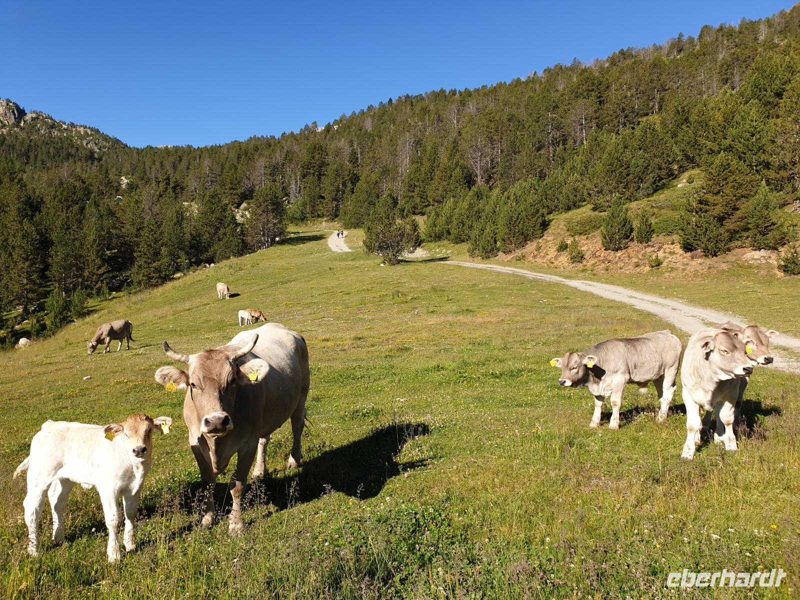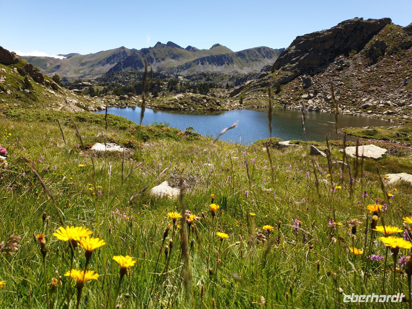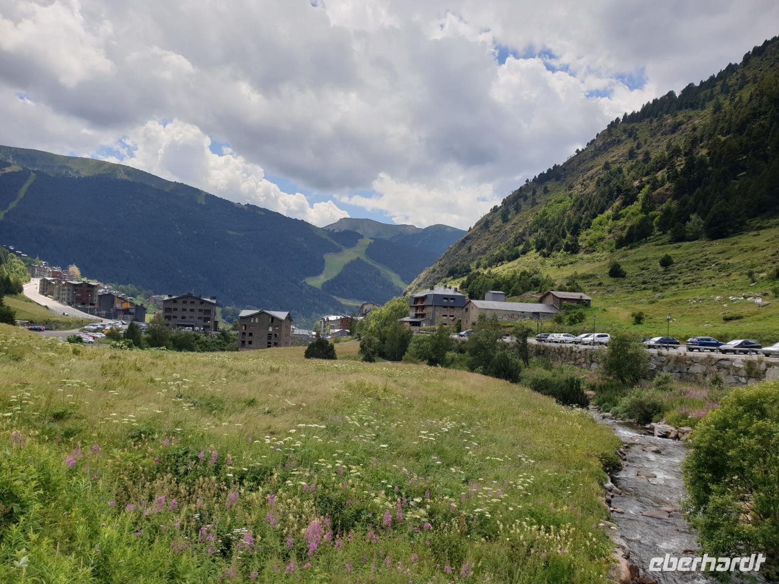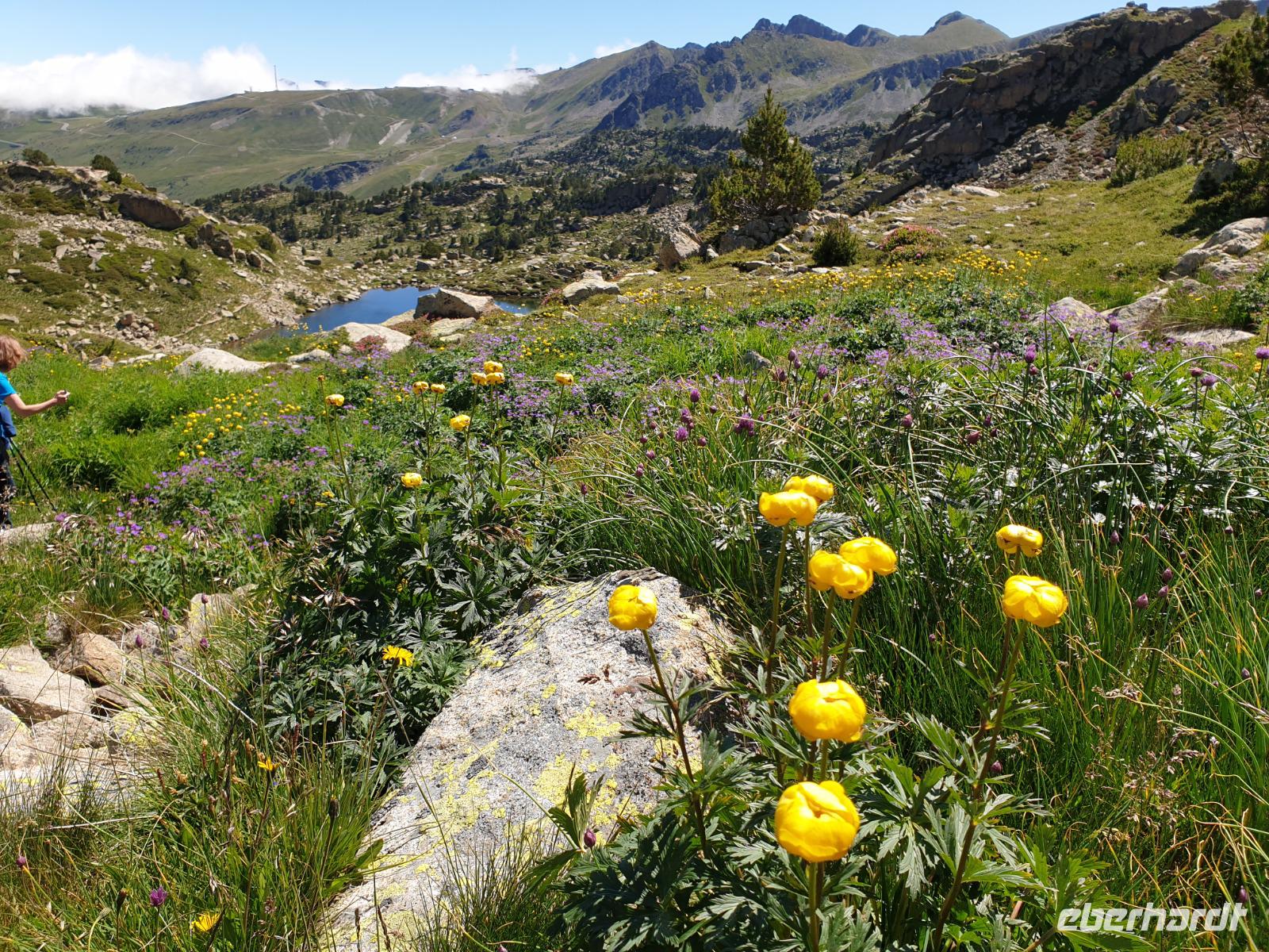 Es ist ein warmer sonniger Tag und die kurze Wanderhose war heute definitiv die beste Wahl. Hektik und Stress lassen wir heute weit hinter sich, denn Sie wandern in das Tal von Incles. Wir fahren erstmals bis Soldeu wo unsere Wanderung anfängt. Zunächst verlassen wir das Dorf über einen ersten, recht steilen Anstieg. Danach wird der Weg unserer Wanderung sehr angenehm und gestaltet sich als gemütlicher Spaziergang. Wir gehen in Richtung Refuge Estany del Siscaro, einer Schutzhütte, die malerisch in den Bergen der Pyrenäen liegt. Der Wald wird lichter und wir haben eine herrliche Aussicht auf El Tarter, das Envalira-Tal und das Tal von Incles. Danach laufen wir weiter Richtung Osten und können erste Ausblicke auf die Juclar-Region genießen. Nun gehen wir in Richtung Siscaro-Tal, zu den Seen von Siscaro und Baix. Hier wandern Sie zwischen beiden Seen Richtung Pas de les Vaques. Nach dem Anstieg erwartet uns ein herrlicher Panoramablick über die Seen des Siscaro-Tals. Nun können wir entweder direkt zum Hotel in Soldeu zurück wandern oder weiter auf den Kamm nach Port Dret. Mit etwas Glück erblicken wir Gänsegeier, die lautlos über die Berge gleiten. Von Port Dret haben wir auf der einen Seite Soldeu und das Envalira-Tal, zur anderen schauen wir bereits nach Frankreich. 2 Gäste, die es weniger anstrengend mögen, haben die Möglichkeit den Weg zu verkürzen oder sozusagen anders gemütlicher mit Benjamin zu gestalten.Unsere heutige Tour begann in Canillo und führte uns durch die wunderschöne Natur Andorras. Auch heute hatten wir treue Begleiter an unserer Seite- Selene Luc, der Hund von Marco kommen immer mit auf Wanderschaft. Die Wanderung am heutigen Tag ist fast schon eine botanische Exkursion - die Pflanzenvielfalt im Tal von Incles ist schlicht überwältigend zu dieser Jahreszeit. Es erwarten uns Alpenrosen, Trollblumen, Enzian in blau und gelb, diverse Hornklee Sorten, wilder Thymian und vieles mehr. Zunächst bei einem ersten Anstieg im Schatten Richtung Vall d' Incles, streiften wir durch das satte Grün des Waldes und kamen schließlich zu einem Pfad mit einem wunderschönen Panorama auf das Tal von Incles. Dann geht es wieder bergauf Richtung Siscaro Tal, mit seinen beiden Bergseen Siscaro und Baix. Beide von unglaublicher blauer Farbe und glasklaren Wasser. Von hier ging es weitere Meter nach oben, und unsere Anstrengung wurde durch eine entspannte Mittagspause an dem Bergsee von Siscaro entlohnt.