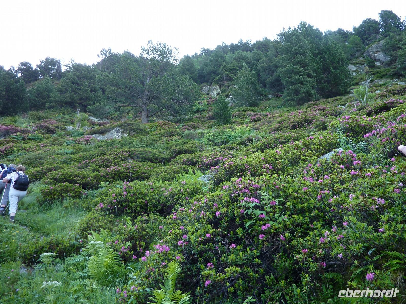 Auf den heutigen Tag freute ich mich schon sehr - auf die Steinpilze, die wir finden würden, auf das blühende Meer von Alpenrosen und den Bergsee Siscaro, für mich immer wieder eines der wunderbarsten Plätzchen auf dieser Erde. Heute gingen wir direkt vom Hotel aus los und stiegen oberhalb von Soldeu ein.