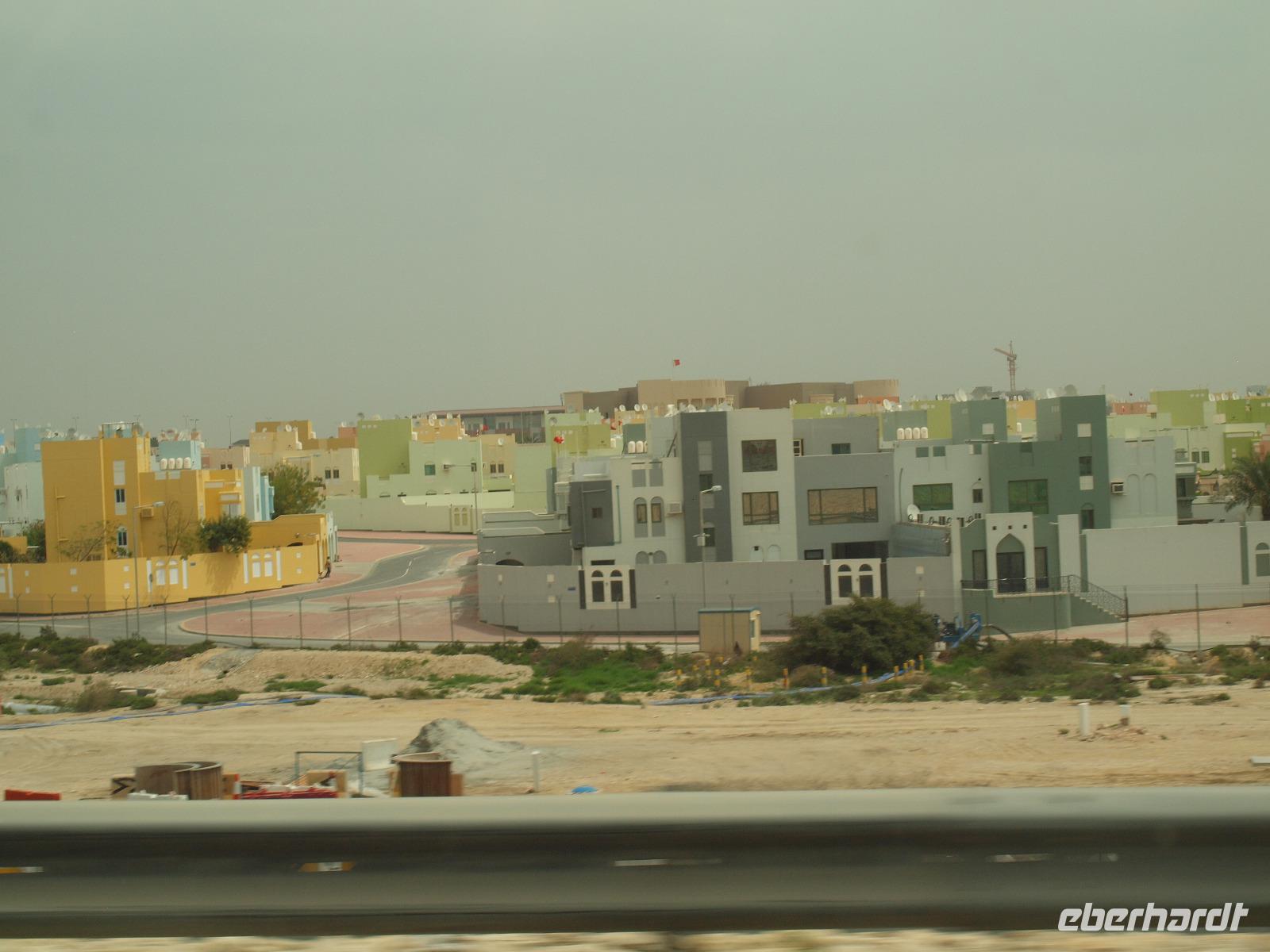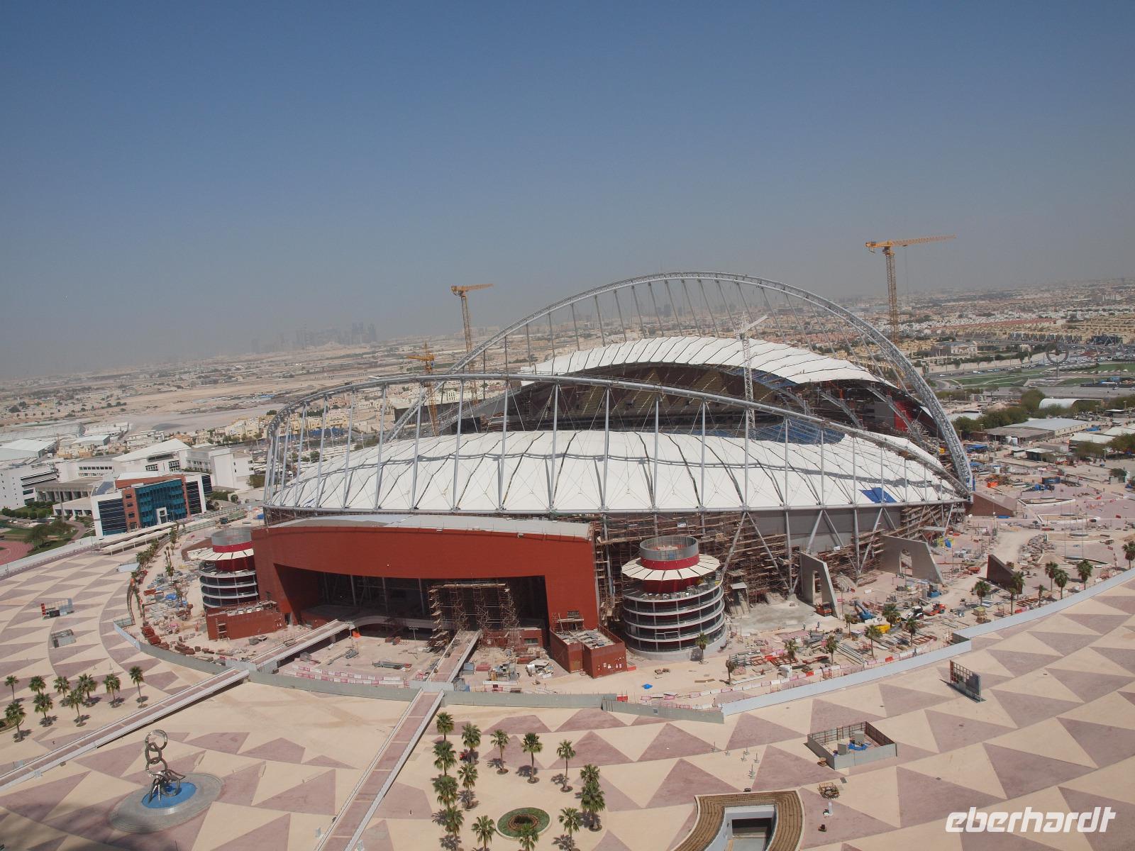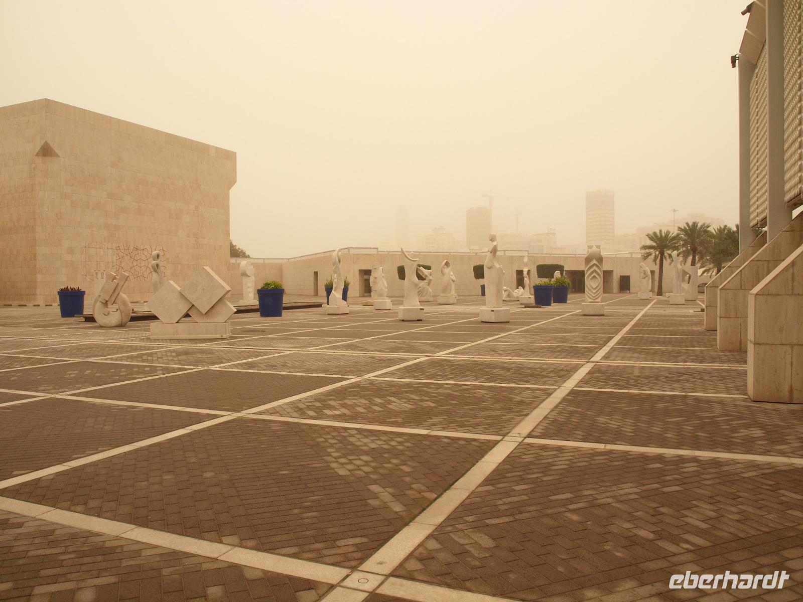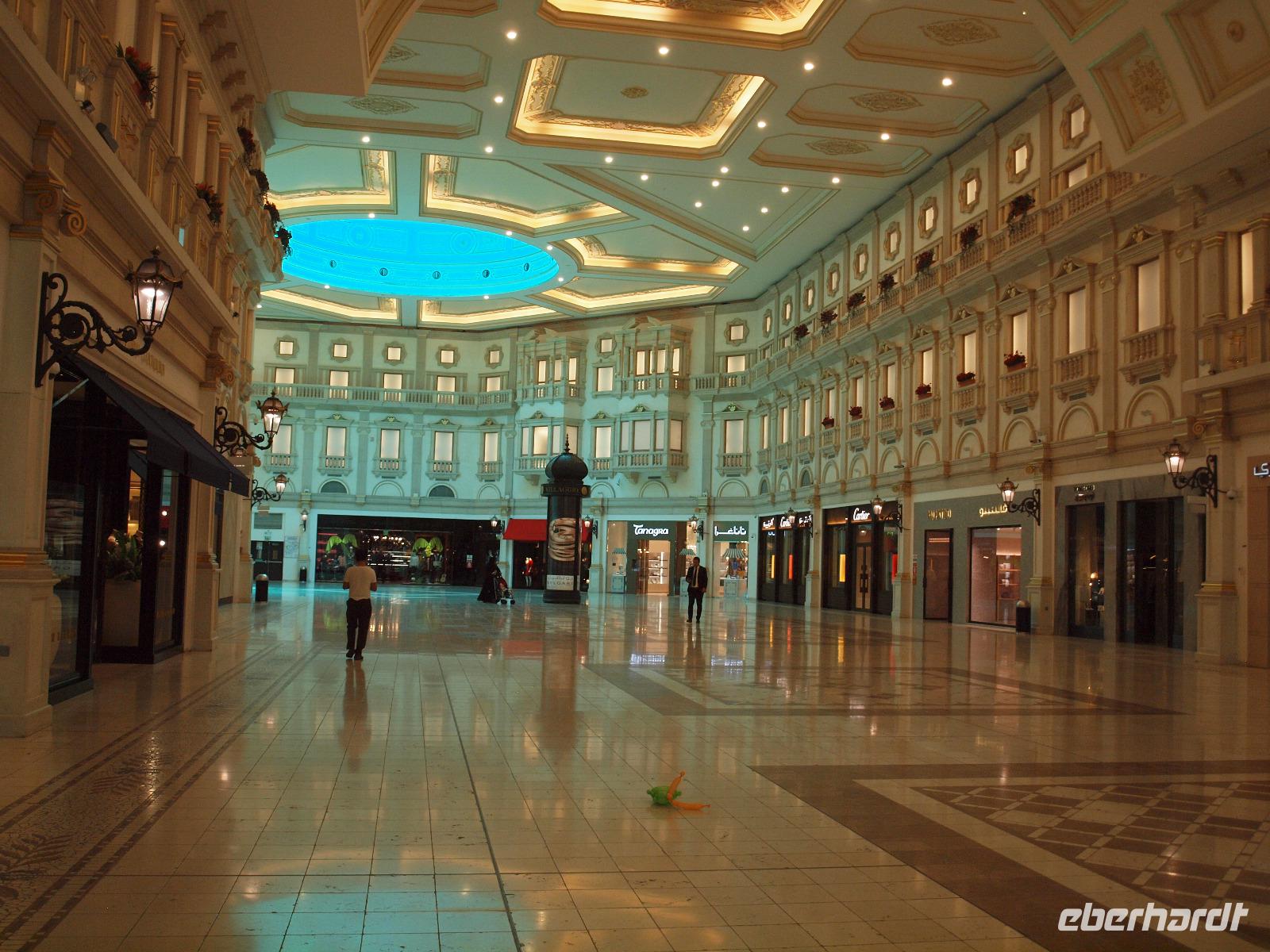 Ein neuer Tag beginnt und ein neuer Reiseleiter, Ayman, nimmt uns heute mit auf Erkundungstour rund um Doha. Wir beginnen im neuen Stadtteil, Katara. Hier entsteht eine Art Kulturdorf. Man möchte in Katara der Geschichte des Landes auf die Spur kommen. Damit sich auch im heißen Sommer die Touristen hier wohlfühlen, hat man sogar Klimaanlagen in den Straßen eingebaut... Vom historischen zum brandneuen Modernen - wir fahren nach Gegenüber, auf die Perle. Hier entsteht auch ein neuer Stadtteil, Lusail. Hier schlendern wir entlang des Yachthafens und der teuren Boutiquen und Autoläden und schnuppern etwas die Luft der Reichen und Schönen von Doha. Es ist nahezu verrückt was hier in den letzten Jahren entstanden ist und auch noch entstehen wird. Wir wissen ja aber, Katar ist das reichste Land in den Golfstaaten und alles was wir sehen ist zu 80% Importware, selbst der Zement für die zahlreichen Baustellen ist importiert... Von Lusail aus trennen uns ein paar Kilometer zum Torch Tower. Hier wird im Moment am neuen Fußballstadion gebaut, Das Khalifa Stadion soll das Größte der insgesamt neun Stadien werden. In unmittelbarer Nähe zum Stadion befindet sich die Villagio Mall. Wir laufen durch die Mall hindurch um auf der anderen Seite, am Torch Tower, raus zu kommen. Die Mall selbst hat viele Highlights zu bieten, unter anderem einen Freizeitpark mit Achterbahn und direkt daneben eine Eislaufbahn. Es ist uns ein wahres Vergnügen hier zu sein.