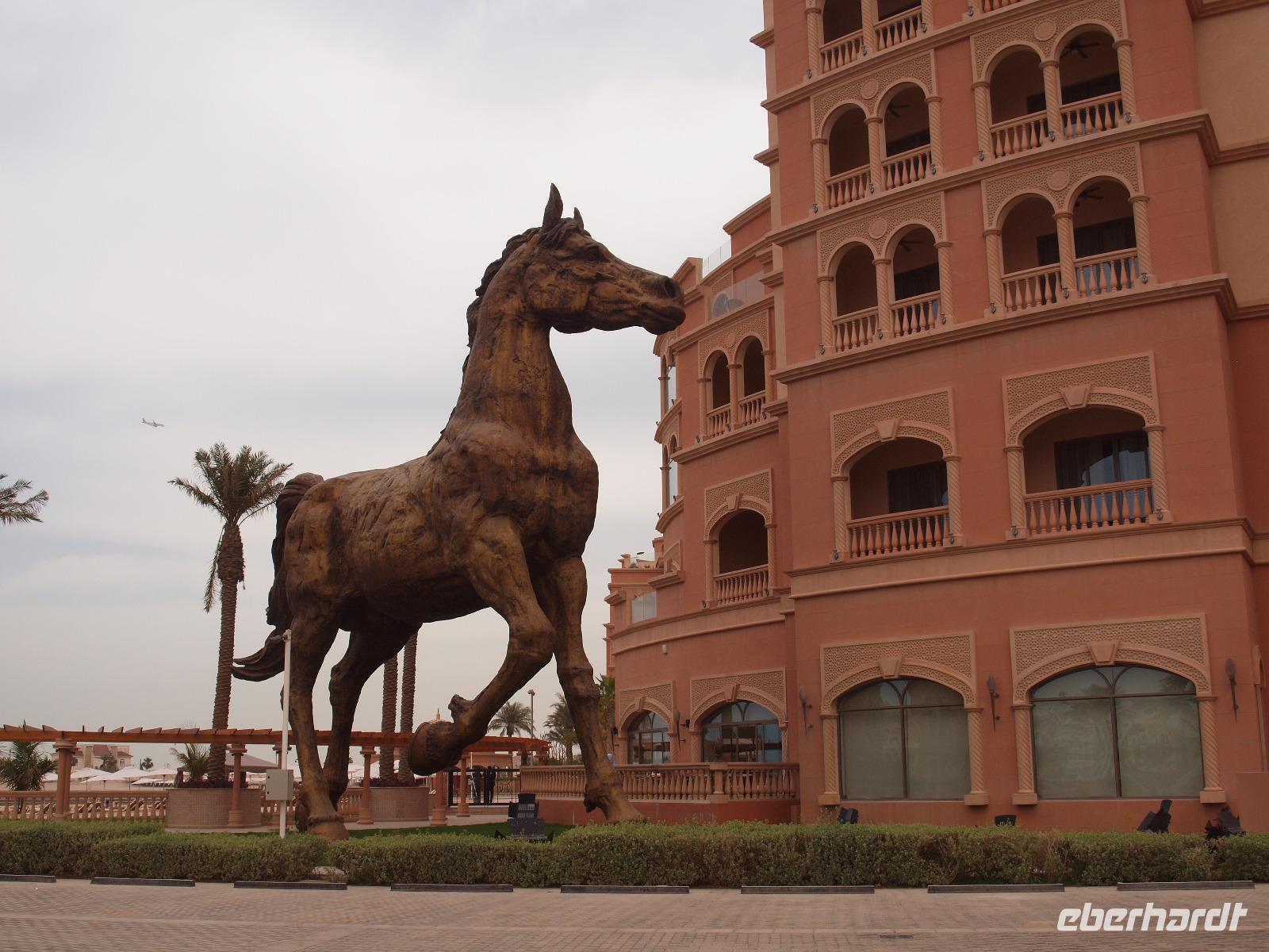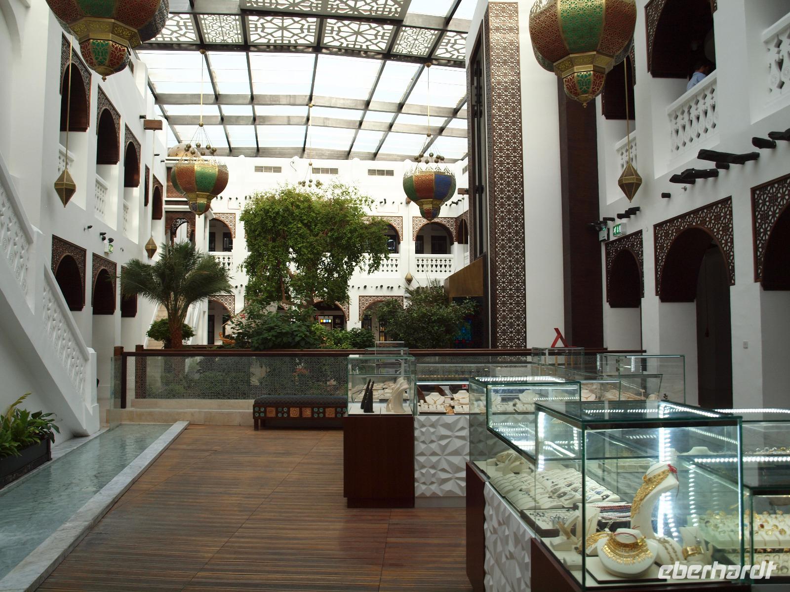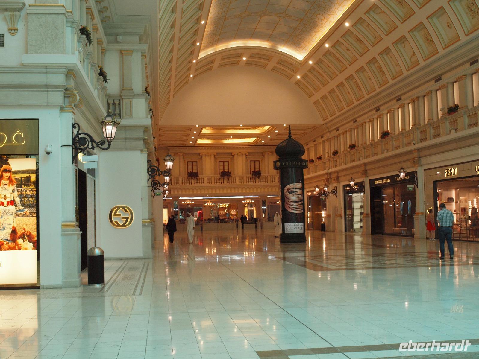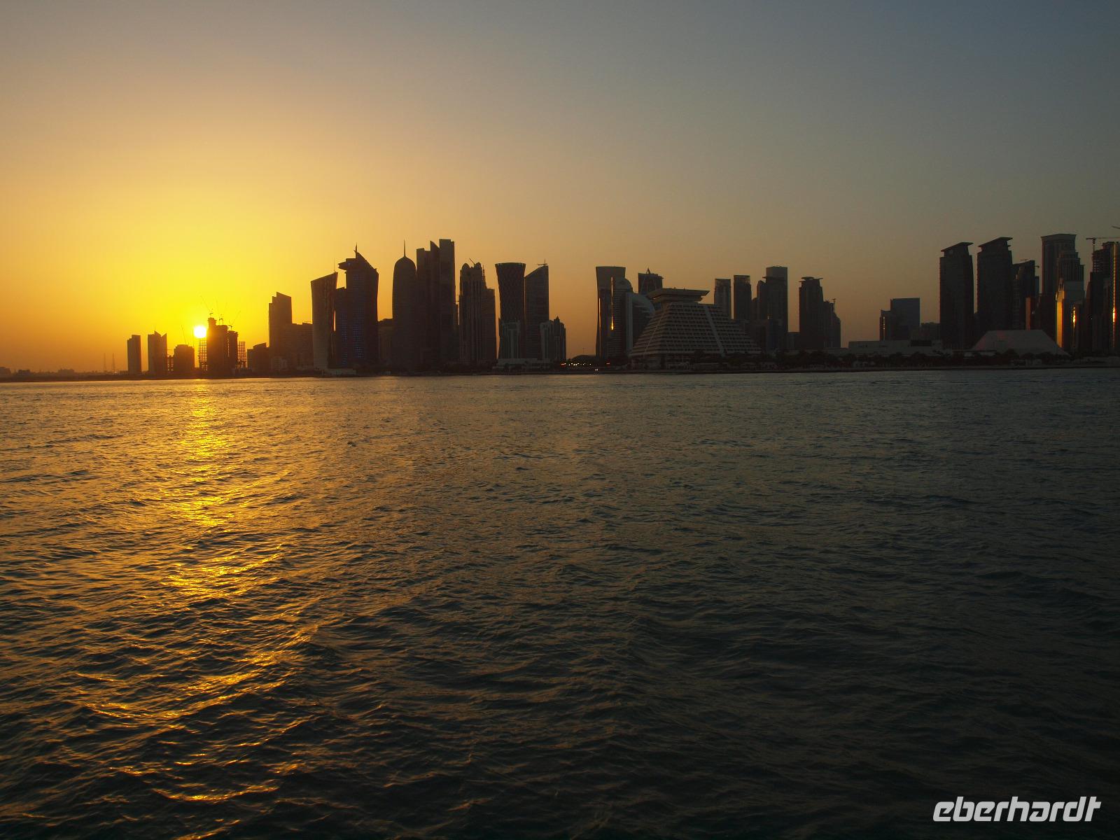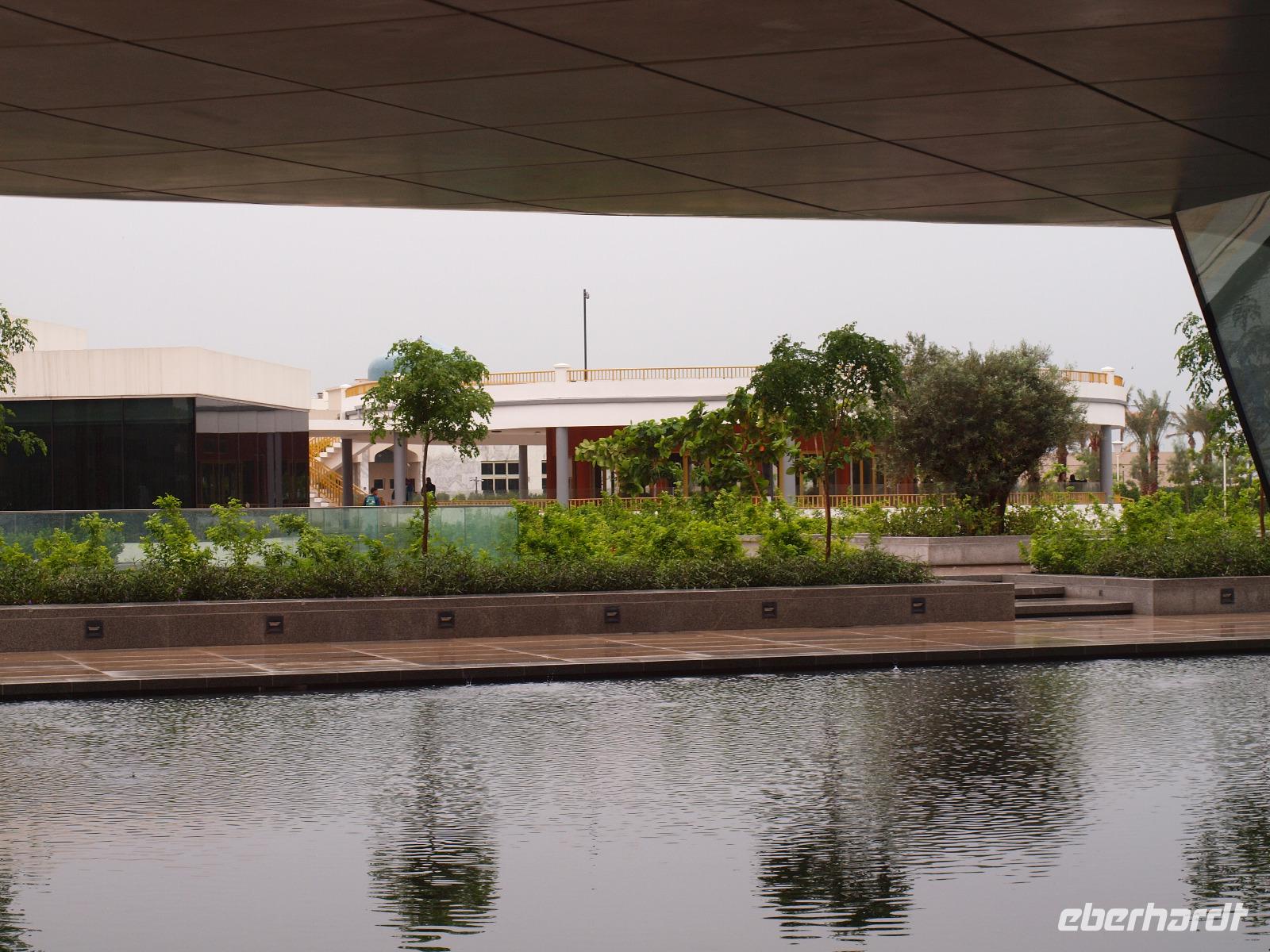 Ein neuer Tag beginnt und ein neuer Reiseleiter, Ayman, nimmt uns heute mit auf Erkundungstour rund um Doha. Wir beginnen im neuen Stadtteil, Katara. Hier entsteht eine Art Kulturdorf. Man möchte in Katara der Geschichte des Landes auf die Spur kommen. Damit sich auch im heißen Sommer die Touristen hier wohlfühlen, hat man sogar Klimaanlagen in den Straßen eingebaut... Vom historischen zum brandneuen Modernen - wir fahren nach Gegenüber, auf die Perle. Hier entsteht auch ein neuer Stadtteil, Lusail. Hier schlendern wir entlang des Yachthafens und der teuren Boutiquen und Autoläden und schnuppern etwas die Luft der Reichen und Schönen von Doha. Es ist nahezu verrückt was hier in den letzten Jahren entstanden ist und auch noch entstehen wird. Wir wissen ja aber, Katar ist das reichste Land in den Golfstaaten und alles was wir sehen ist zu 80% Importware, selbst der Zement für die zahlreichen Baustellen ist importiert... Von Lusail aus trennen uns ein paar Kilometer zum Torch Tower. Hier wird im Moment am neuen Fußballstadion gebaut, Das Khalifa Stadion soll das Größte der insgesamt neun Stadien werden. In unmittelbarer Nähe zum Stadion befindet sich die Villagio Mall. Wir laufen durch die Mall hindurch um auf der anderen Seite, am Torch Tower, raus zu kommen. Die Mall selbst hat viele Highlights zu bieten, unter anderem einen Freizeitpark mit Achterbahn und direkt daneben eine Eislaufbahn. Es ist uns ein wahres Vergnügen hier zu sein.