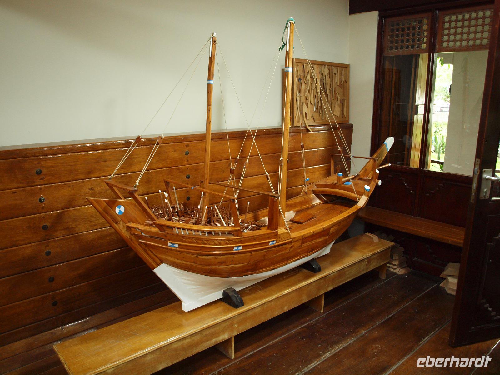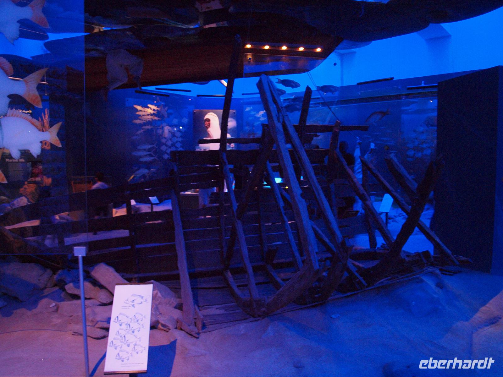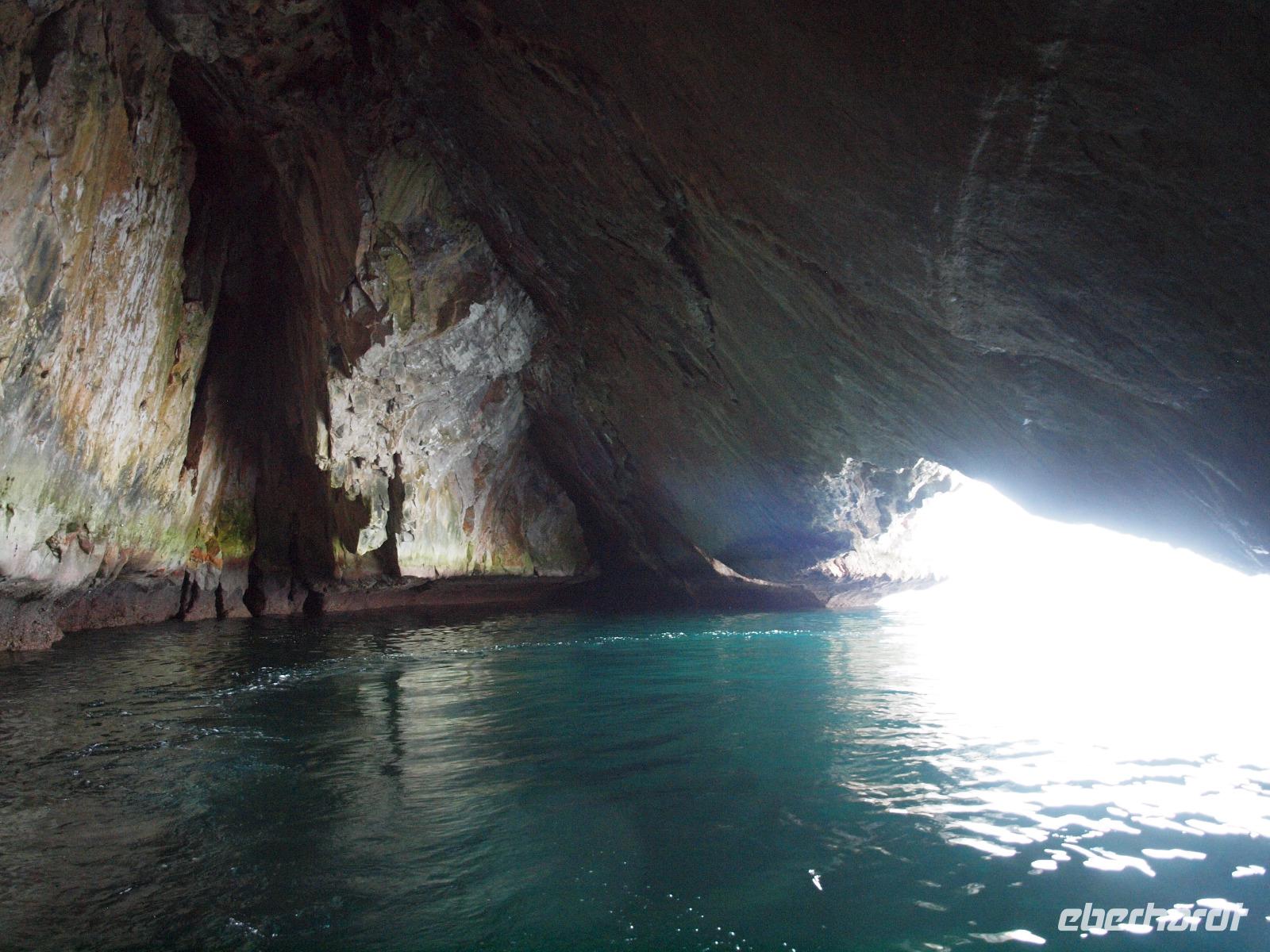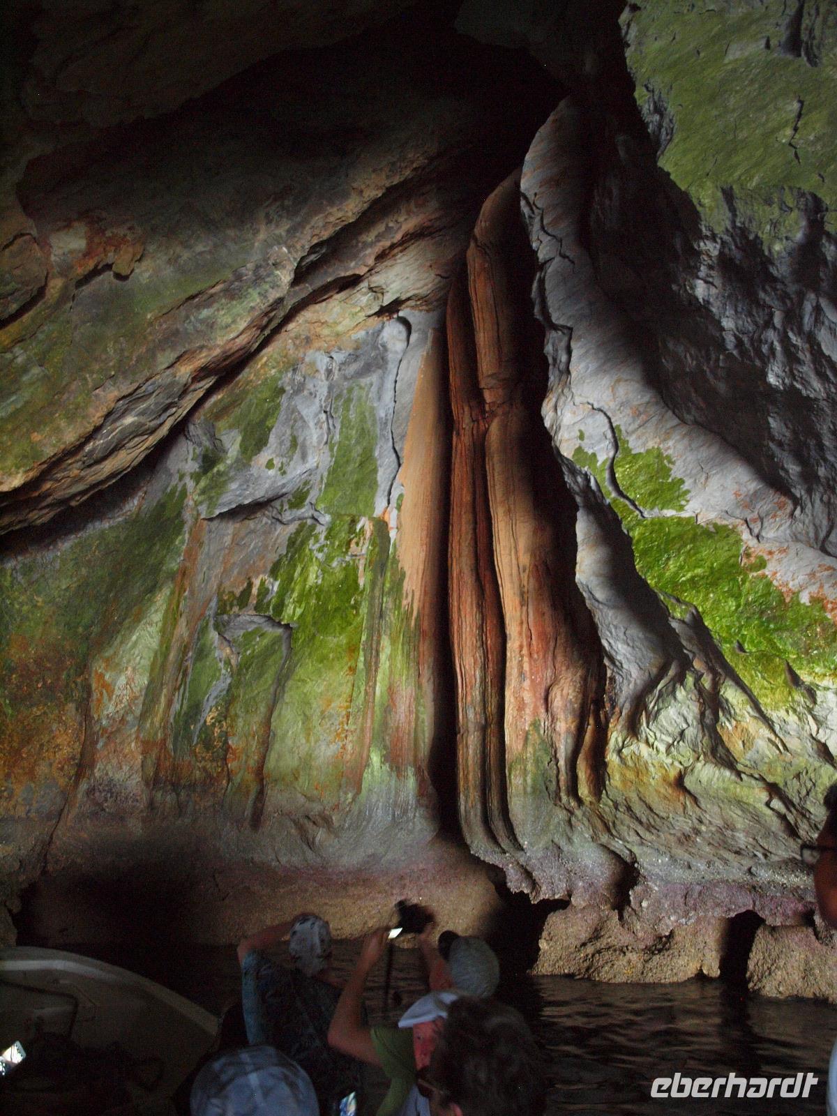 Nach dem Mittag fahren wir noch etwas weiter in Richtung Norden um an einer zweiten Stelle noch einen Stopp einzulegen. Hier werden wir wieder in das Beiboot gelotst und der Skipper bringt uns dann in eine kleine Höhle, wir fahren sogar hinein um uns das Innere dieser Höhle anzusehen. Auf dem Rückweg zur Dhau gibt es sogar noch eine kleine Extrarunde mit dem Beiboot und der Skipper zeigt uns wie schnell dieses unterwegs sein kann, was für ein Spaß! Außerdem kann man auch hier noch einmal ins Wasser abtauchen. Wer an Bord bleibt hat die Gelegenheit zu shoppen. Die Crew baut nach und nach eine kleine Art Souk an Bord auf und bietet verschiedene Dinge an. Hier findet sich noch das ein oder andere Mitbringsel.