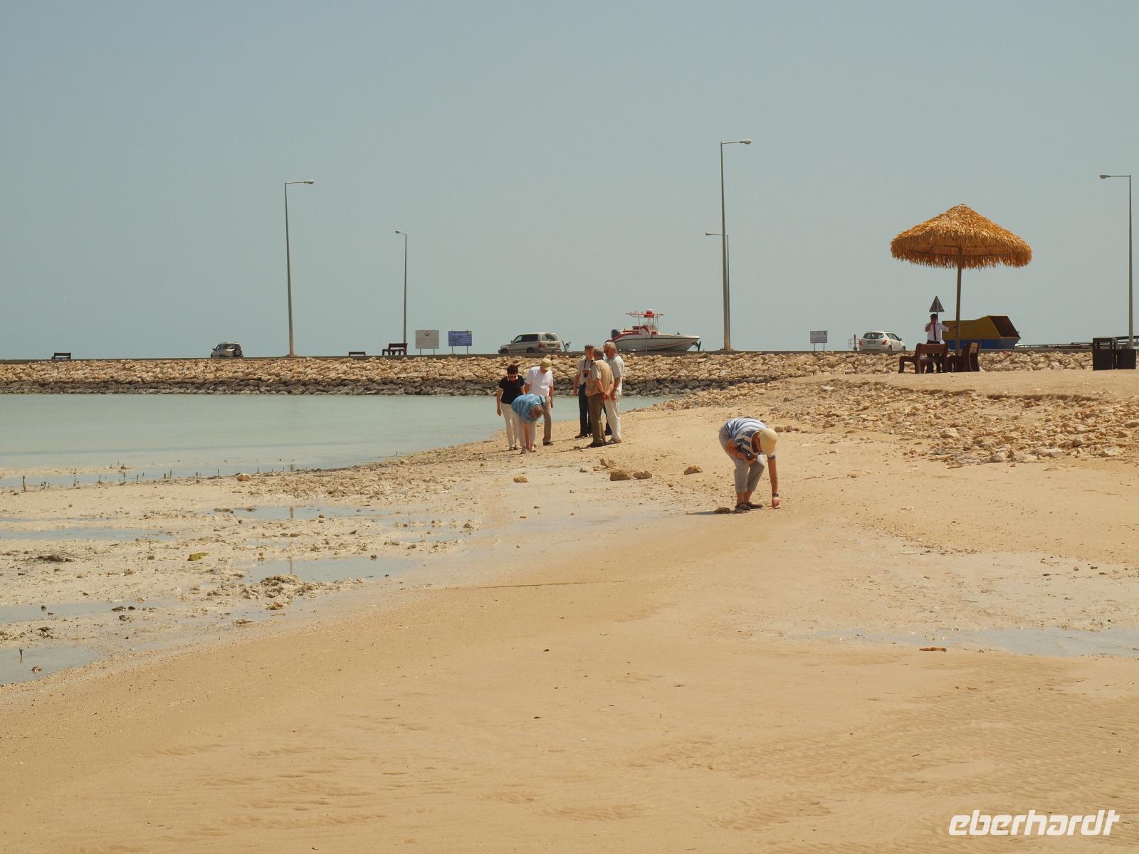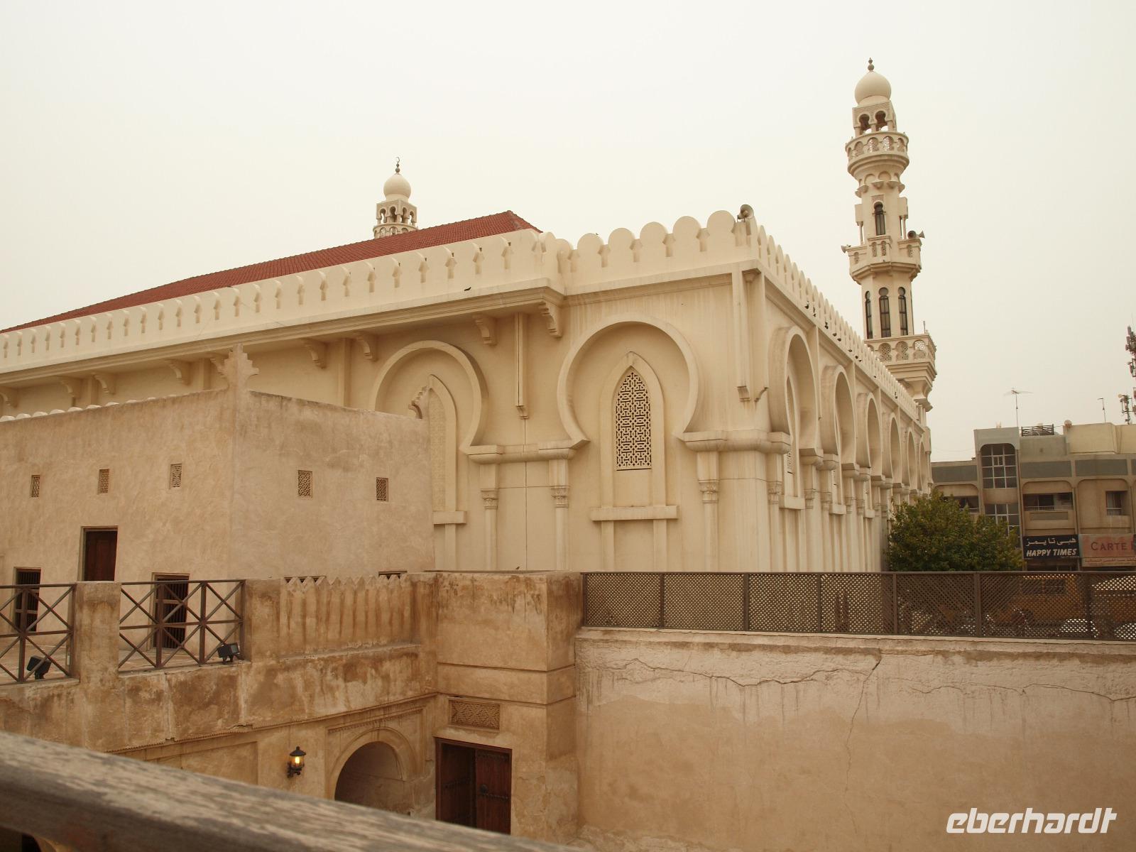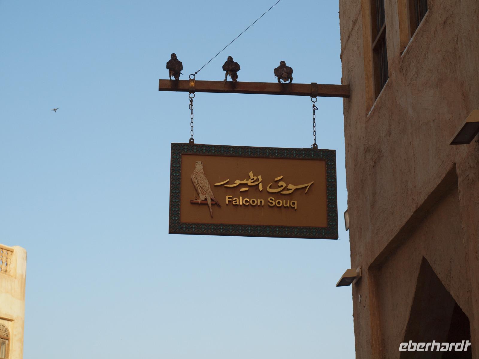 Wir fahren weiter in Richtung Nationalpark, Al Thakira. Hier halten wir am Strand und können von weitem schon die Mangroven erkennen. Ein willkommener Anblick und ein guter Kontrast zur Großstadtatmosphäre in Doha. Gleich in der Nähe befindet sich eine kleine Moschee. Diese können wir sogar ohne besondere Kleiderordnung betreten, da sie sich im Moment noch in der Renovierung befindet. Von der Ostküste Katars geht es nun weiter in Richtung Nordwesten. Hier liegt noch unter viel Sand vergraben, die alte Küstenstadt Al Zubara. Wir können uns im Fort der Stadt, welches heute als kleines Museum dient, ein Bild der Geschichte der Stadt machen. Das Fort selbst diente früher der Verteidigung des Küstenabschnittes. Von Al Zubara aus machen wir noch einen Abstecher an die nördlichste Spitze von Katar, der Hafenort Al Ruwais ist ein eher verschlafener Ort und so zieht es uns eher wieder zurück in den Trubel der Großstadt. Zurück in Doha spazieren wir noch einmal über den Souk Waqif. Sahel zeigt uns den Goldsouk und später auch den Falkensouk. Ja, wirklich, ein eigener Souk für den Verkauf von Falken und deren Zubehör. Über die Bedeutung der Falken werden wir jedoch erst in Abu Dhabi mehr erfahren...