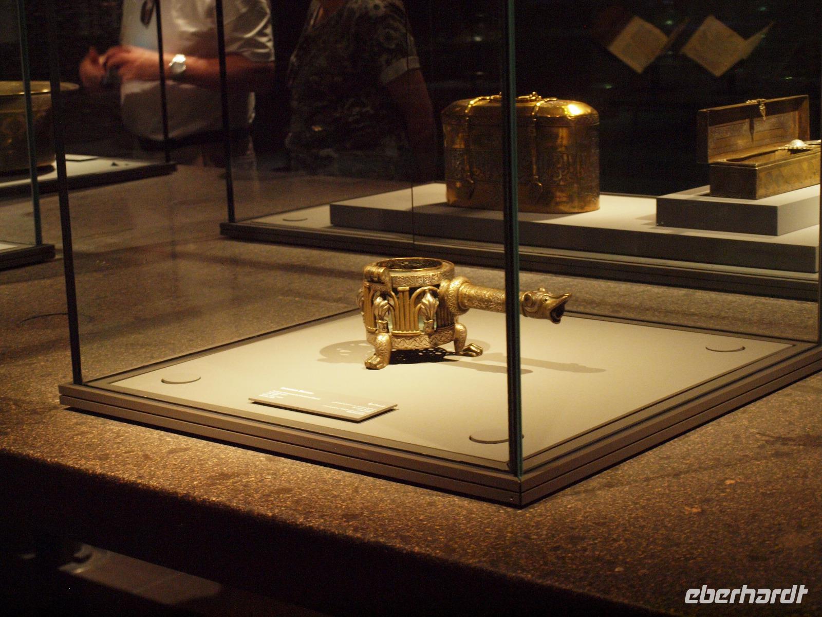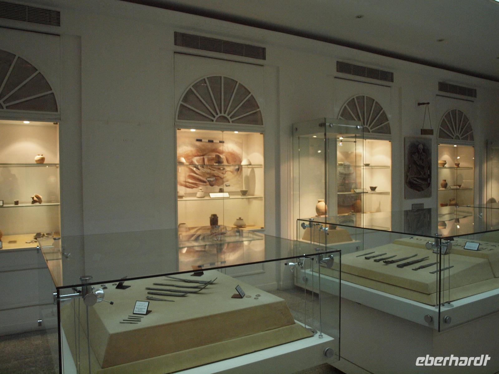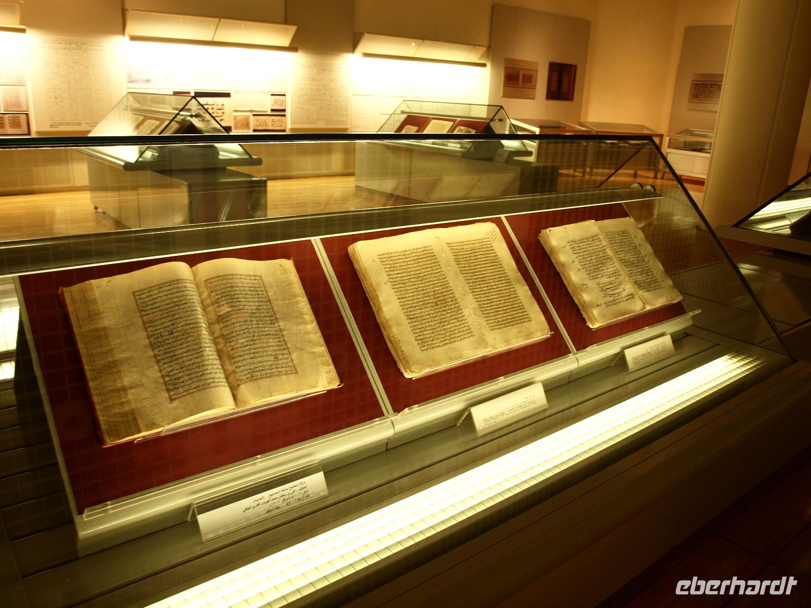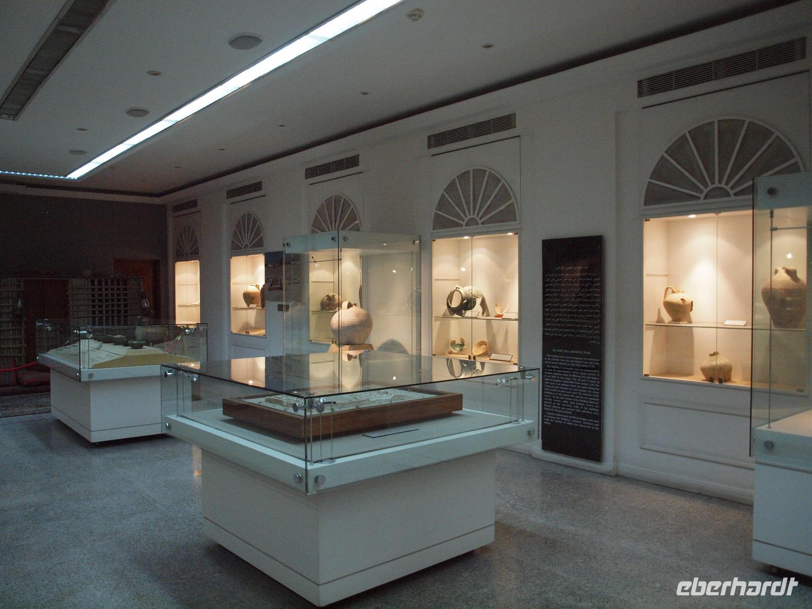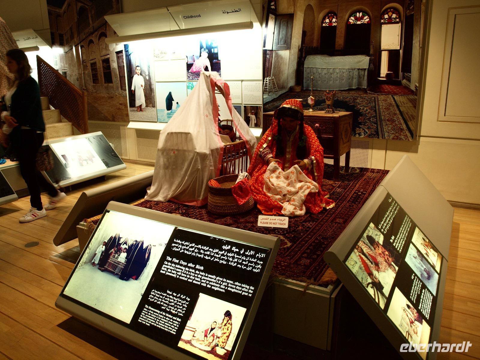 Bevor wir ins Nationalmuseum von Bahrain fahren, gehen wir noch eine Runde über den alten Souk. Hier findet man vor allem Gewürze und Süßigkeiten. Um die Geschichte des Landes noch einmal genauer zu verstehen führt uns Silvia schließlich durch das Museum. Wir bekommen einen Einblick in das Leben vor dem Ölboom. Besonders interessant ist die Ausstellung der alten Dilmun-Kultur , die Ausstellung über die langjährige Tradition der Perlentaucherei und die Schriftstücke aus alten Zeiten. Hier könnte man sicher die eine oder andere Minute länger verweilen, doch leider wartet unser Flugzeug bereits und wir müssen zurück ins Hotel um unser Gepäck zu holen. Nach einer kurzen Verschnaufpause auf den Zimmern, treffen wir uns wieder und treten die Weiterreise nach Katar an.