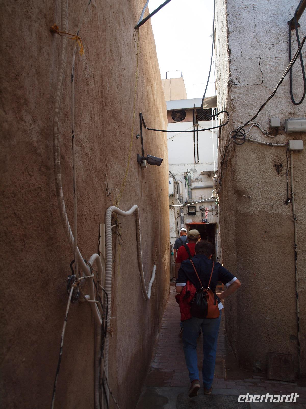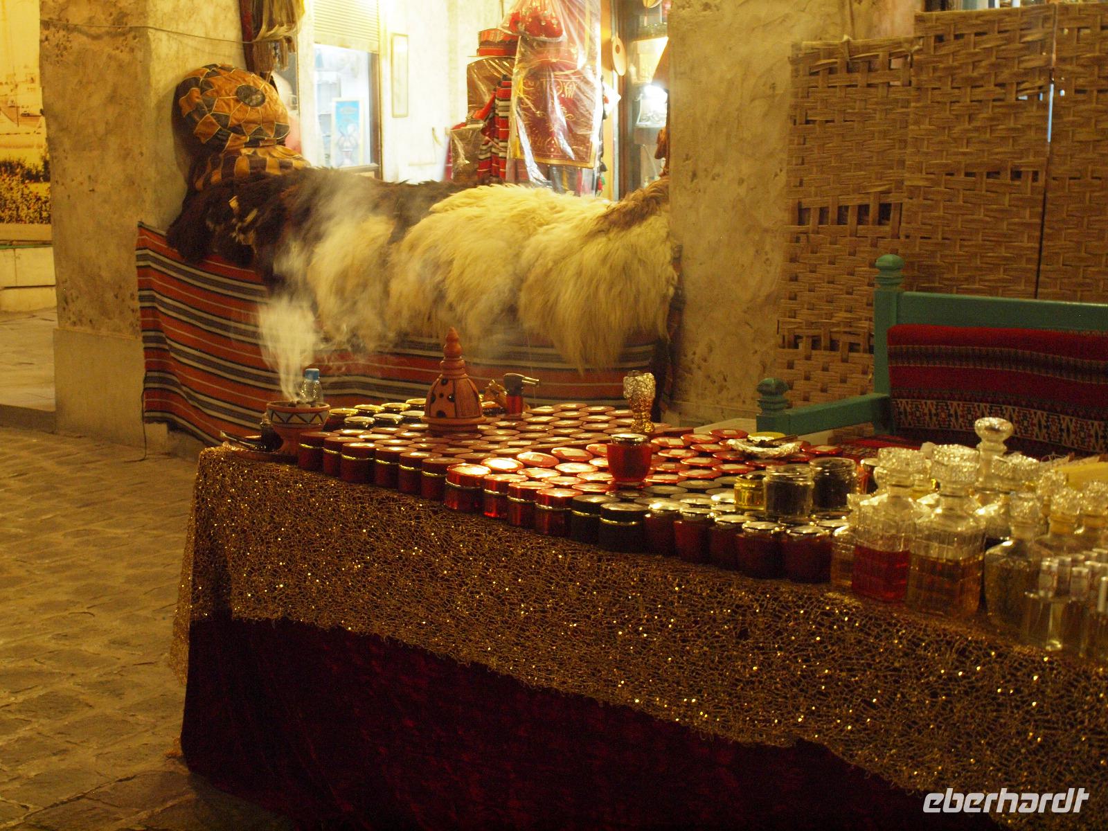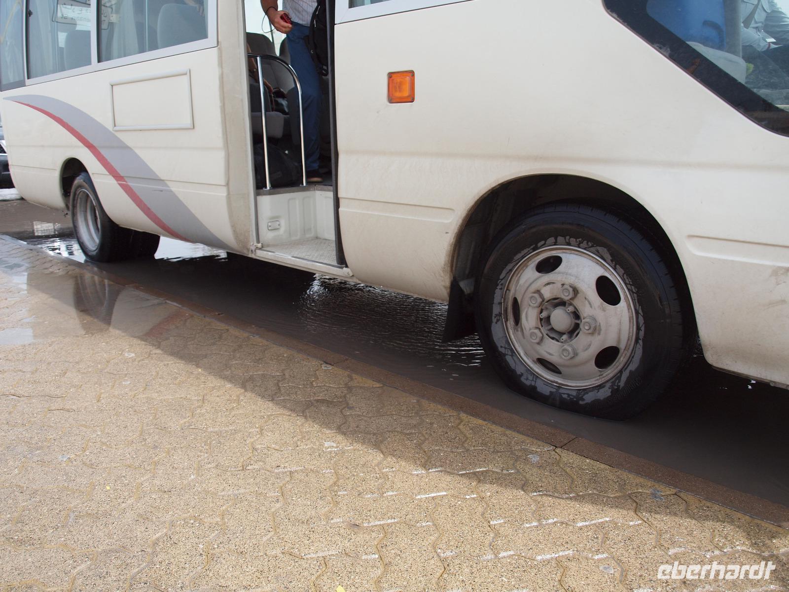 Als nächsten Stopp fahren wir in die Stadt hinein, auf den Souk. Hier gibt es von nahezu alles, was das Herz begehrt. Haushaltswaren, Gewürze, Kleidung und noch vieles mehr. Nach einem Bummel durch die Gassen gehen wir wieder zurück zum Hotel. Es wird Zeit, dass wir uns fürs Abendessen vorbereiten. Leider regnet es wie verrückt, der Verkehr ist auch sehr dicht und so dauert die eigentlich kurze Fahrt zum Restaurant doch etwas länger. Dadurch erleben wir allerdings auch ein richtiges Gewitter...