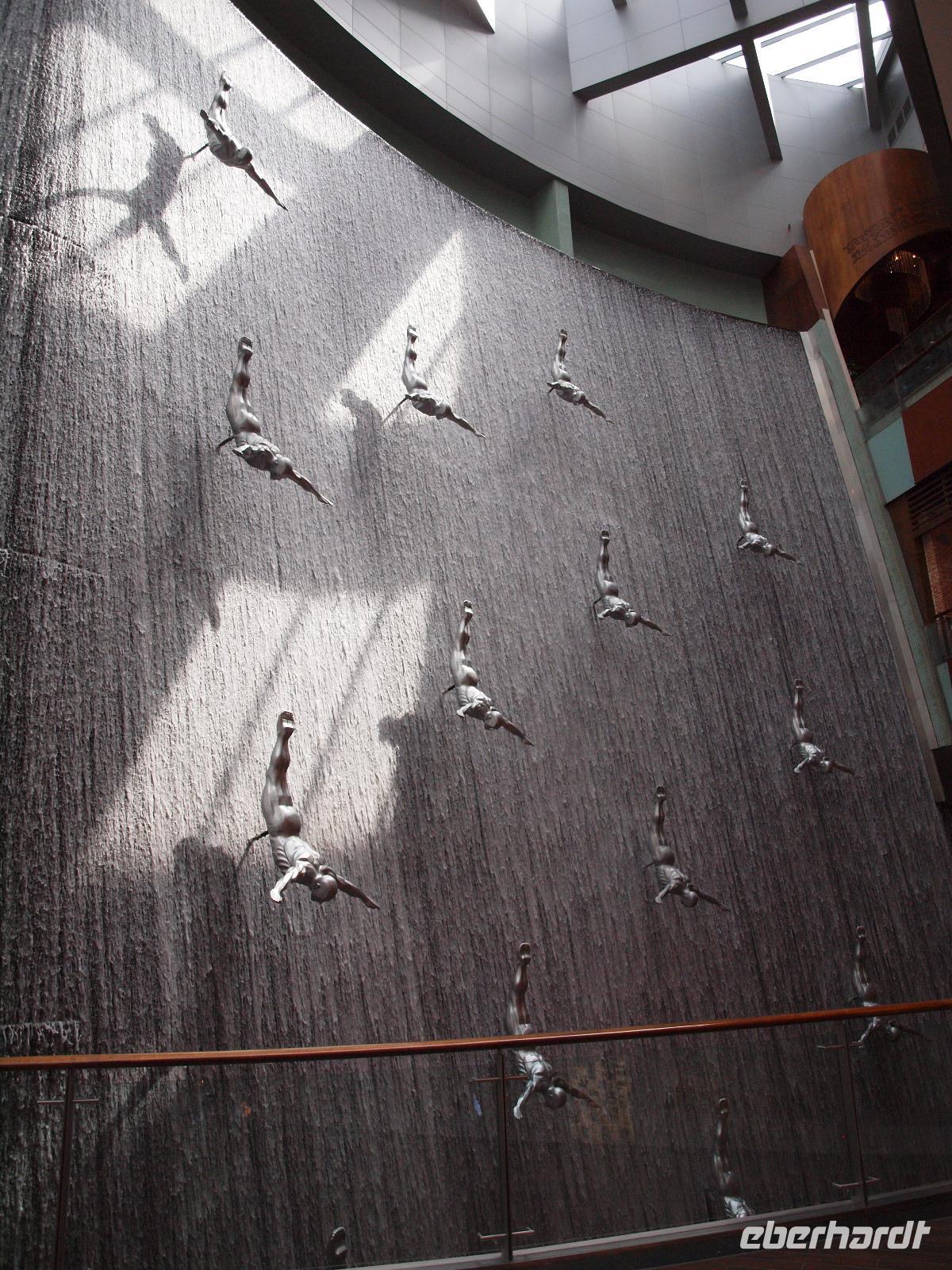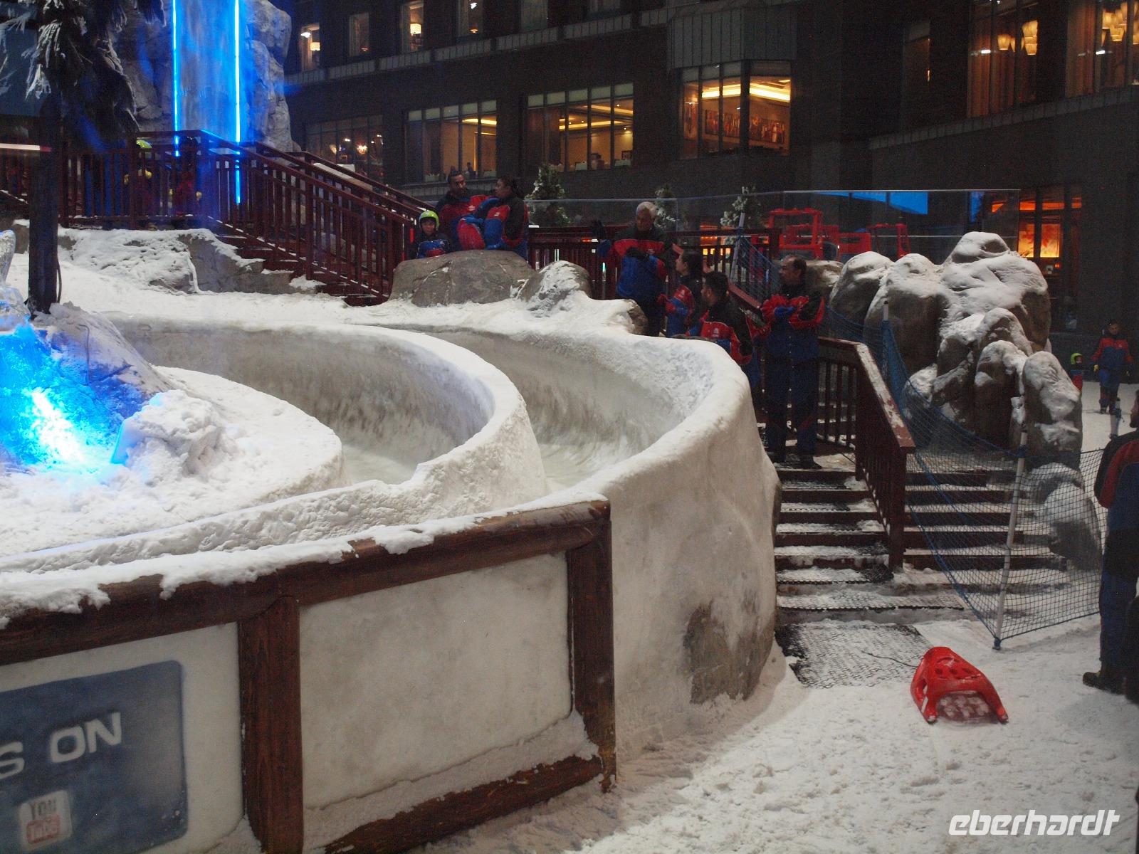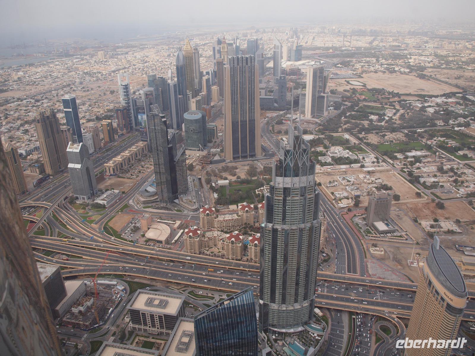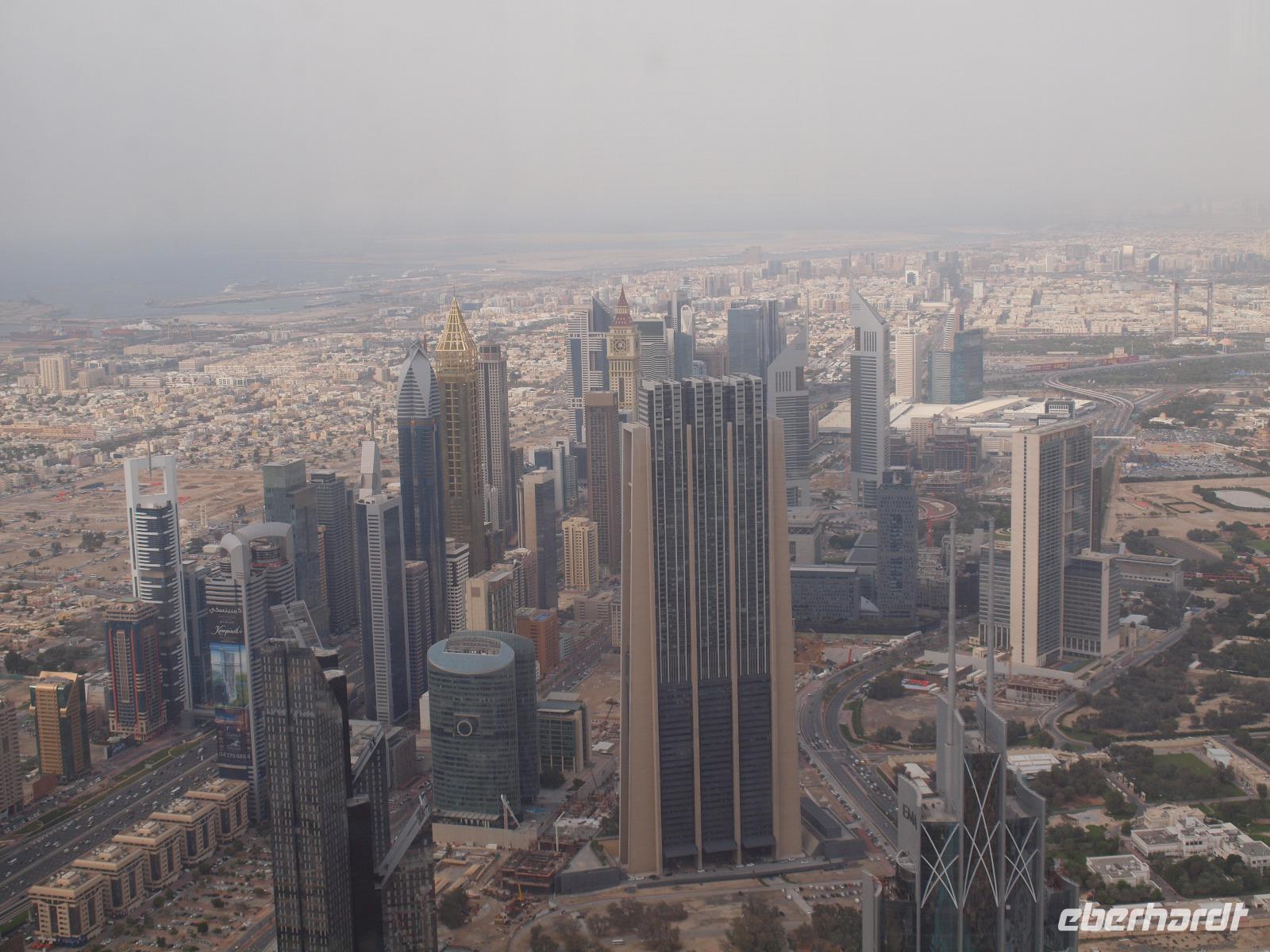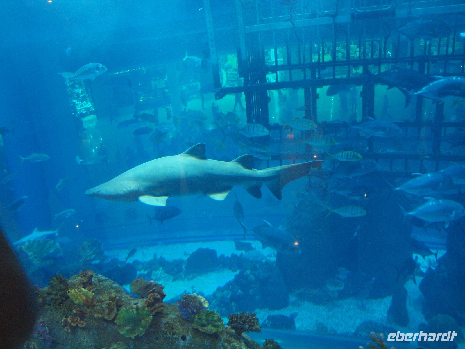 Heute stehen viele Dinge auf unserer Tagesliste. Wir beginnen den sonnigen(!) Tag in der Dubai Marina und schlendern etwas entlang des künstlich angelegten Hafenbeckens. Von hier aus bringt uns Hassan auf die Palme ;-) "The Palm", so heißt die künstlich aufgeschüttete Inselwelt und sieht, aus der Luft betrachtet, wirklich wie eine Palme aus. Unser Ziel ist die Palmenkrone, hier steht das 5*-Hotel "Atlantis" und ist von vielen Attraktionen, wie ein eigenes Aqarium und ein Wassererlebnispark, umgeben. Nach einem Bummel durch die öffentlichen Bereiche fahren wir mit der Monorail, einem vollautomatischen Zug, wieder zurück zum Palmenstamm und begeben uns zu unserem nächsten Ziel. Die Mall of the Emirates ist ein Kaufhaus, was man so schnell nicht wieder vergisst. Hauptattraktion ist hier die Ski-Anlage, auf einer schneebedeckten Fläche von gut 22.000 m² gibt es fünf Abfahrten, die sich in Schwierigkeitsgrad, Höhe und Steilheit unterscheiden. Ein Vierer-Sessel-Lift, ein Schlepplift und ein Personenförderband wurde für die Beförderung der Besucher installiert. Für Kinder und Eltern ist der so genannte Snow Park vorgesehen, hier findet man Schlitten- und Bob-Bahnen. Es ist der größte Indoor-Snowpark der Welt. Auf dem Weg zur nächsten Mall, der Dubai Mall, statten wir dem Scheich einen Besuch ab, zumindest bis fast vor die Haustür schaffen wir es und der ein oder andere Pfau freut sich darüber ein willkommenes Fotomotiv zu sein. Etwas später dann in der Dubai Mall schauen wir erst am Innen-Aquarium vorbei. Sogar der ein oder andere Taucher ist im großen Becken zu erkennen. Obwohl so viele Menschen in dieser Mall sind, strahlt sie eine gewissen Ruhe aus. Anja führt uns in die verschiednen "Viertel" der Mall, es gibt hier wohl über 120 Gastronomiebetriebe, den größten Gold-Souk der Welt mit 220 Geschäften, eine Kunsteisbahn, einen musikgesteuerten Springbrunnen, eine 24 Meter hohe Wasserkaskade, einen Saal für Modenschauen, ein Multiplex-Kino mit 22 Sälen, ein Präsentationszentrum für Computerspiele, sowie über ein betreutes Kinder-Abenteuerland... Wir sehen natürlich nicht alles, aber immerhin einen Großteil der WOW-verdächtigen Einrichtungen. Wir gehen kurz aus der Mall hinaus um einen groben Überblick zu bekommen wo wir uns eigentlich befinden. Kaum an der frischen Luft, sehen wir ihn, wie er sich vor uns aufbaut, der Burj Khalifa, der aktuell höchste Turm der Welt. Es ist nun Zeit für ein paar individuelle Erkundungen. Zurück am Treffpunkt gehen wir gemeinsam zum Eingang des Turms und fahren hoch, auf 452 Meter, 124. Stockwerk, auf die Aussichtsplattform, dieses Stockwerk bietet einen 360°-Panoramablick rund um Dubai. Bei guter Sicht hätte man vielleicht sogar die Dubai Marina sehen können. Wieder zurück auf dem Erdboden ist es fast schon 18:00 Uhr. Genau richtig also um das erste Wasserspiel mitzuerleben. Von der Terrasse von unserem Restaurant aus haben wir den perfekten Platz und können die Wasserspiele richtig genießen. Je später der Abend, desto dunkler wird es ja und umso schöner sind sie anzusehen. Alles um uns herum funkelt! Nach dem Essen gehen wir noch eine kleine Runde um den kleinen angelegten See der Springbrunnen und fahren schließlich zurück ins Hotel.