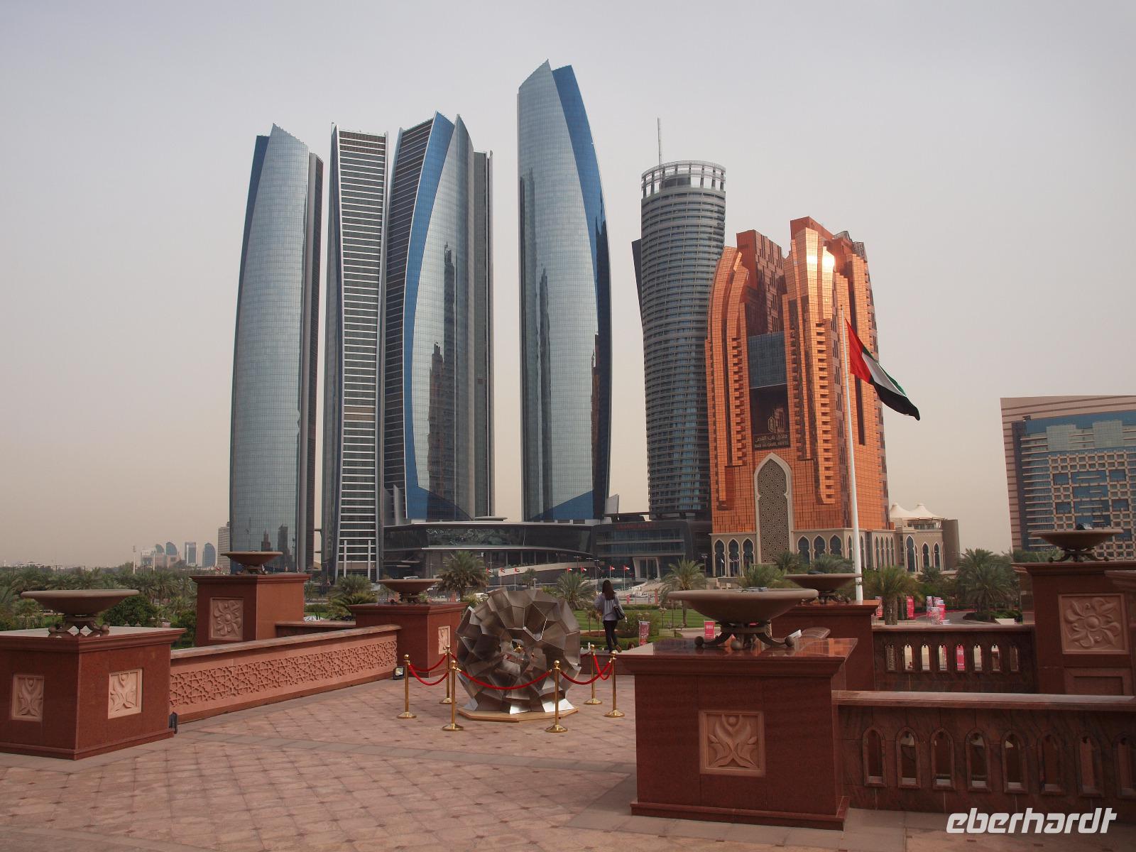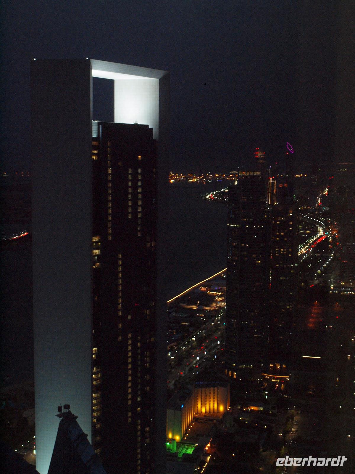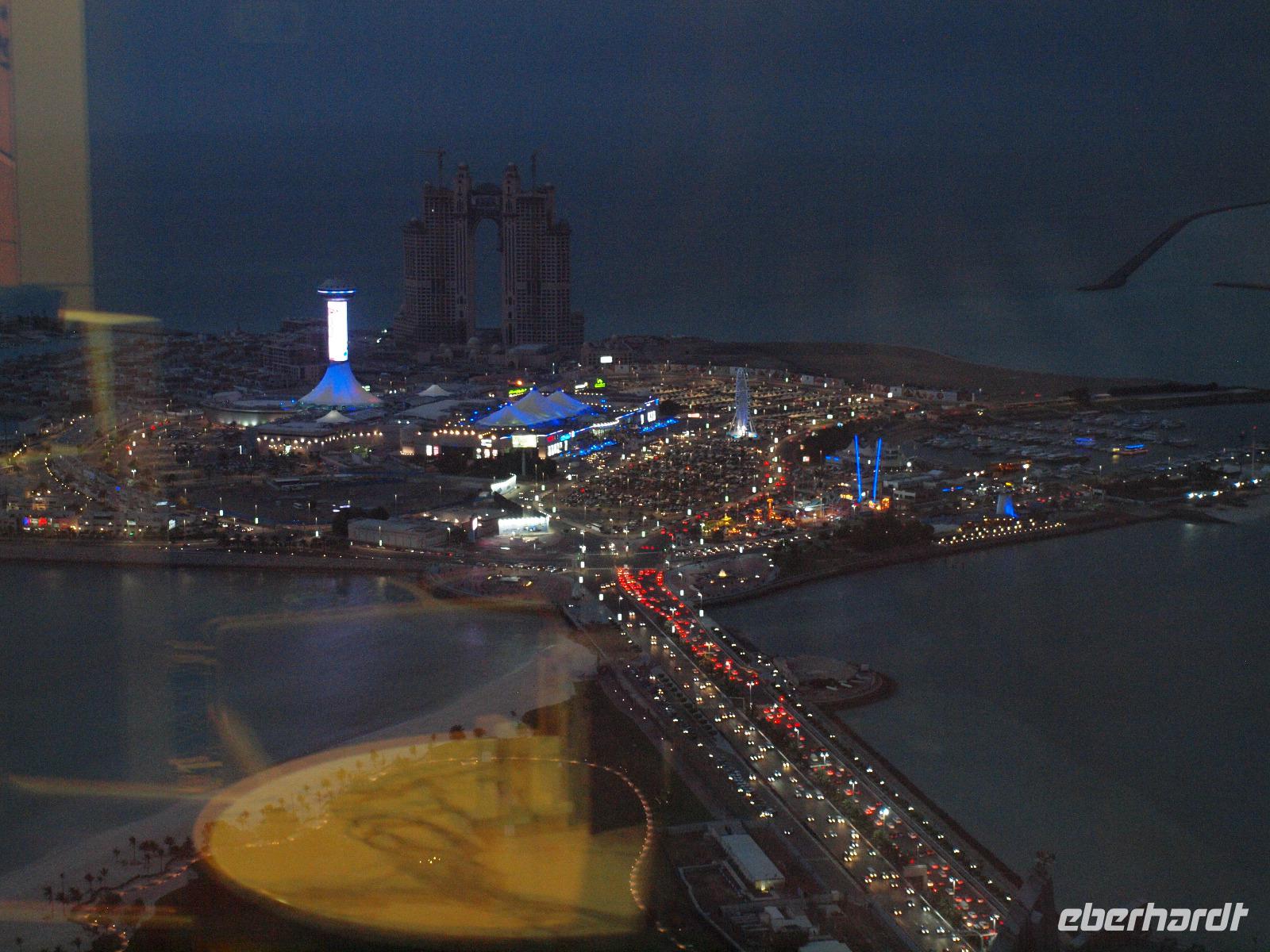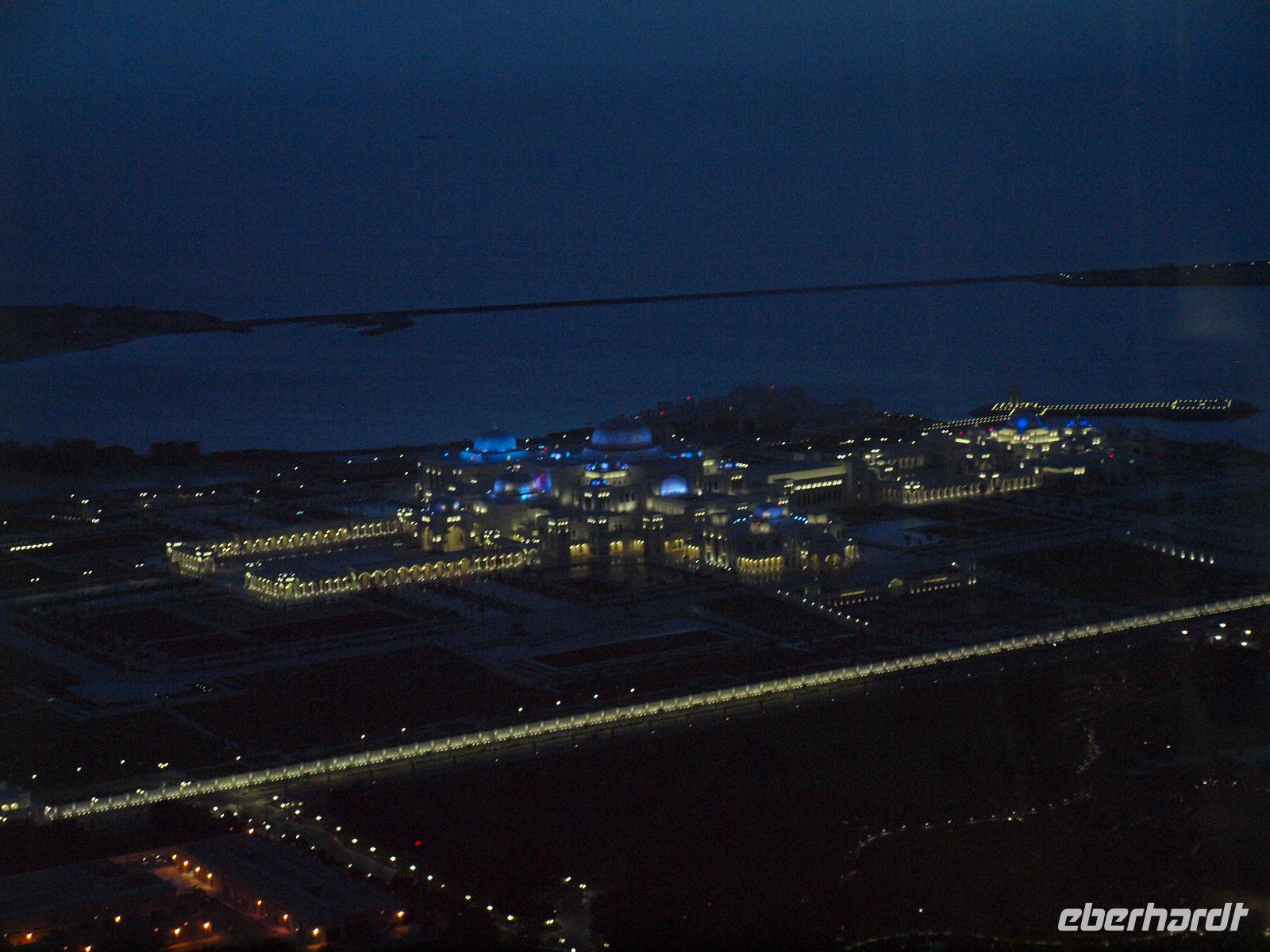 Im Hotel zurück hat jeder bis zum nächsten Treffen am Abend Zeit um sich auch für die Abreise morgen vorzubereiten. Am Abend dann fahren wir wieder gemeinsam mit den Taxis in die Stadt, eine kleine Überraschung erwartet die Gruppe. Wir fahren zu den Etihad Towern, gegenüber des Emirates Palace und werden hier zunächst zur 360° Panoramabar, dem Observation Desk, hoch fahren. Hier oben erwartet uns dann ein toller Ausblick über Abu Dhabi und ein kleiner Aberitif. Nachdem wir die Aussicht genossen haben fahren wir wieder hinuter und gehen im Hotelrestaurant essen. Ein gelungener Abschluss für Abu Dhabi.