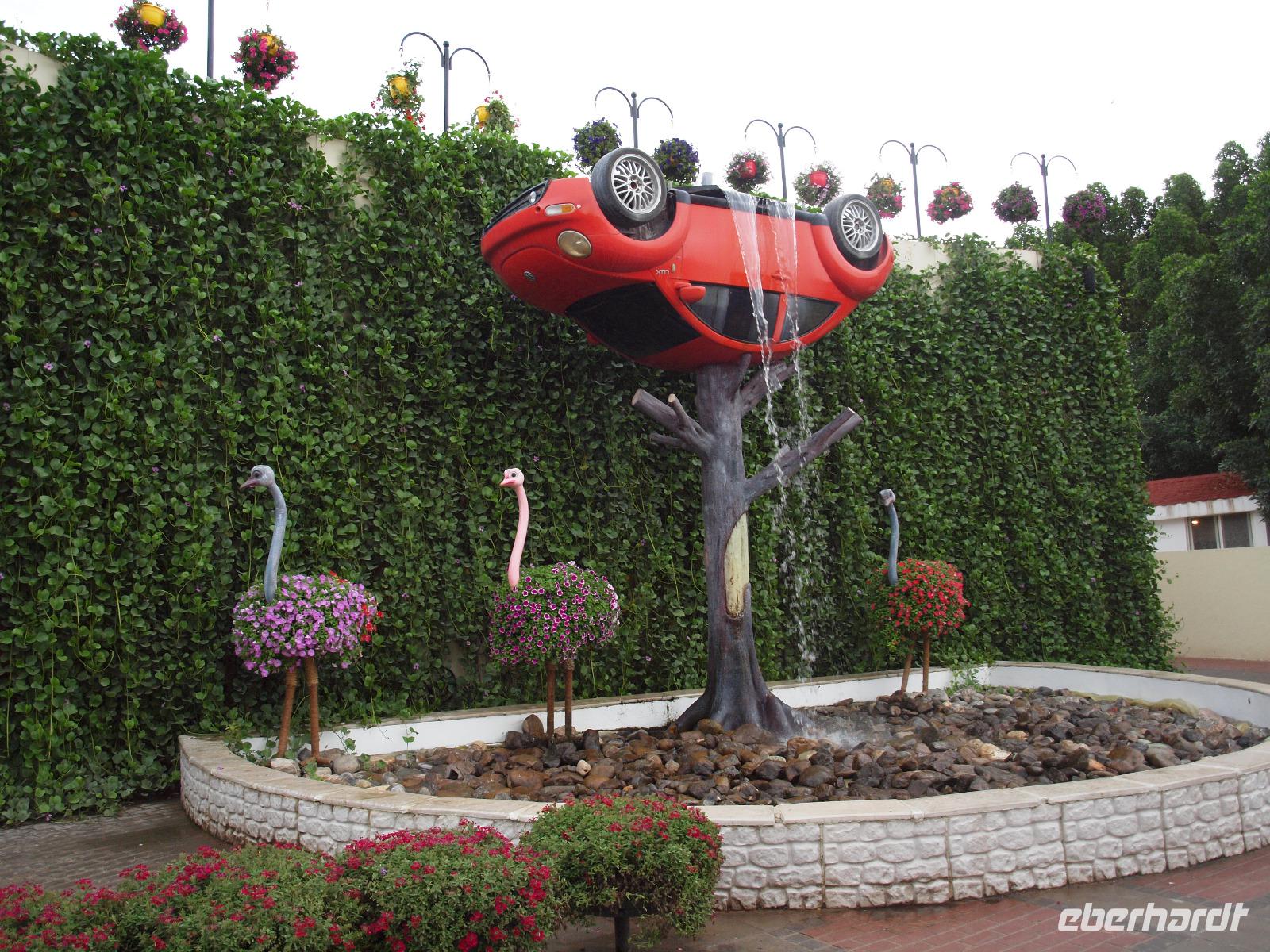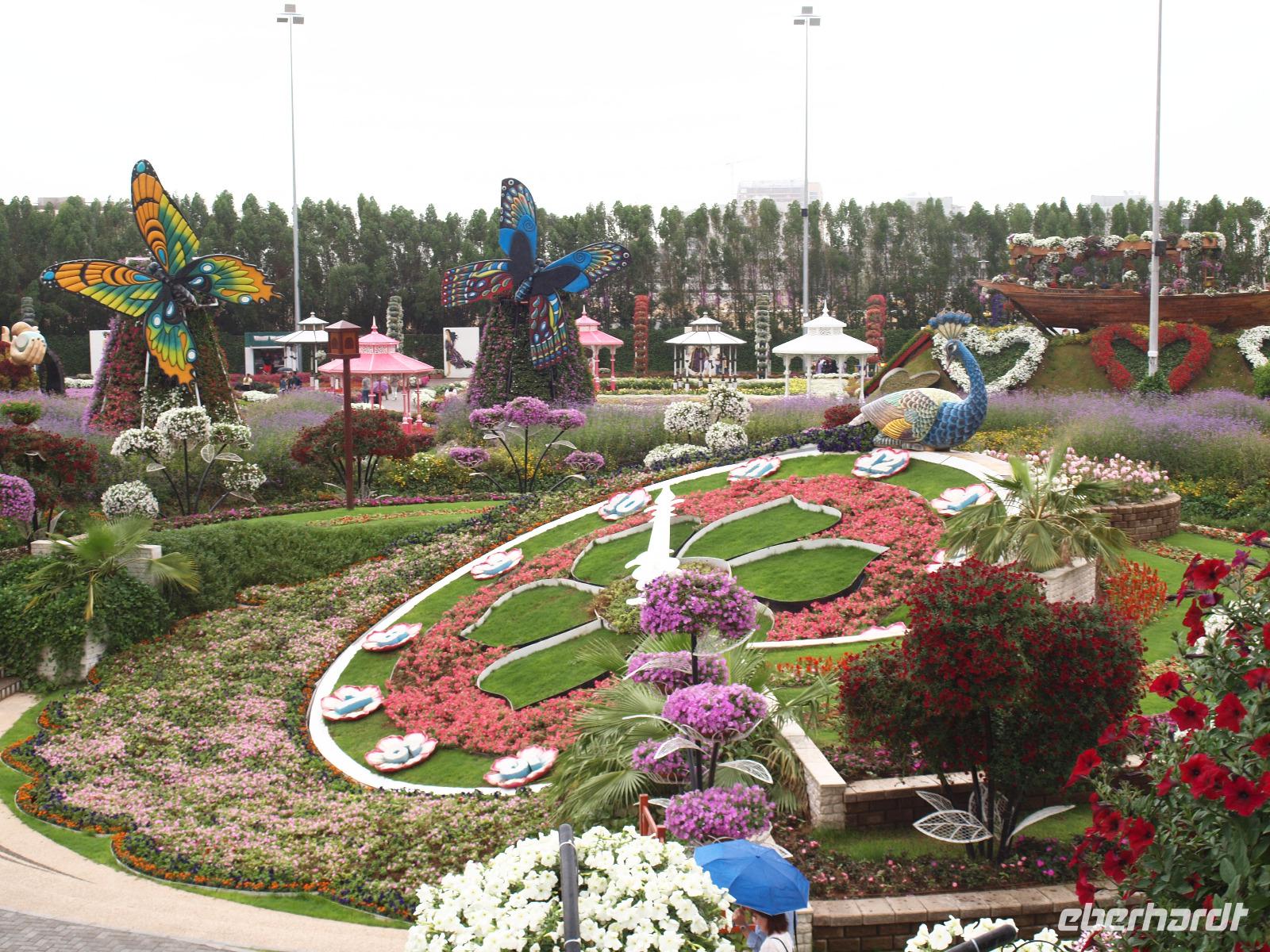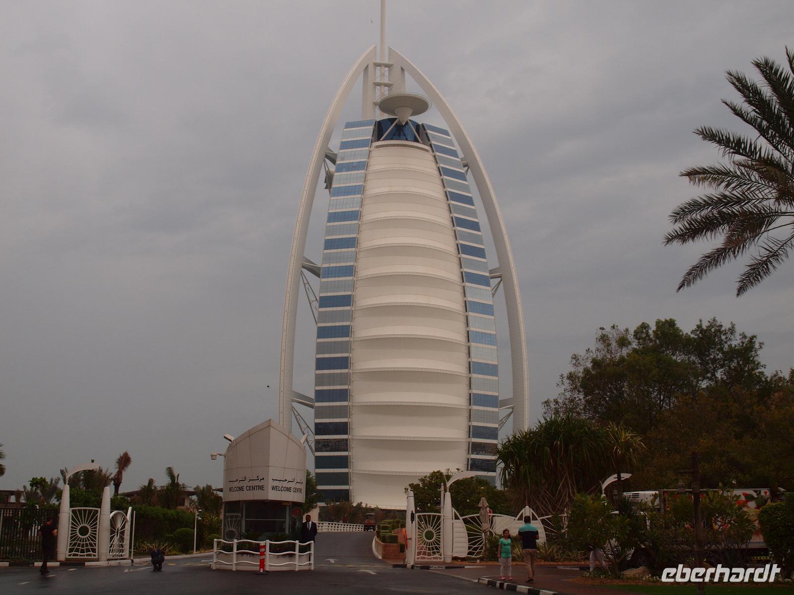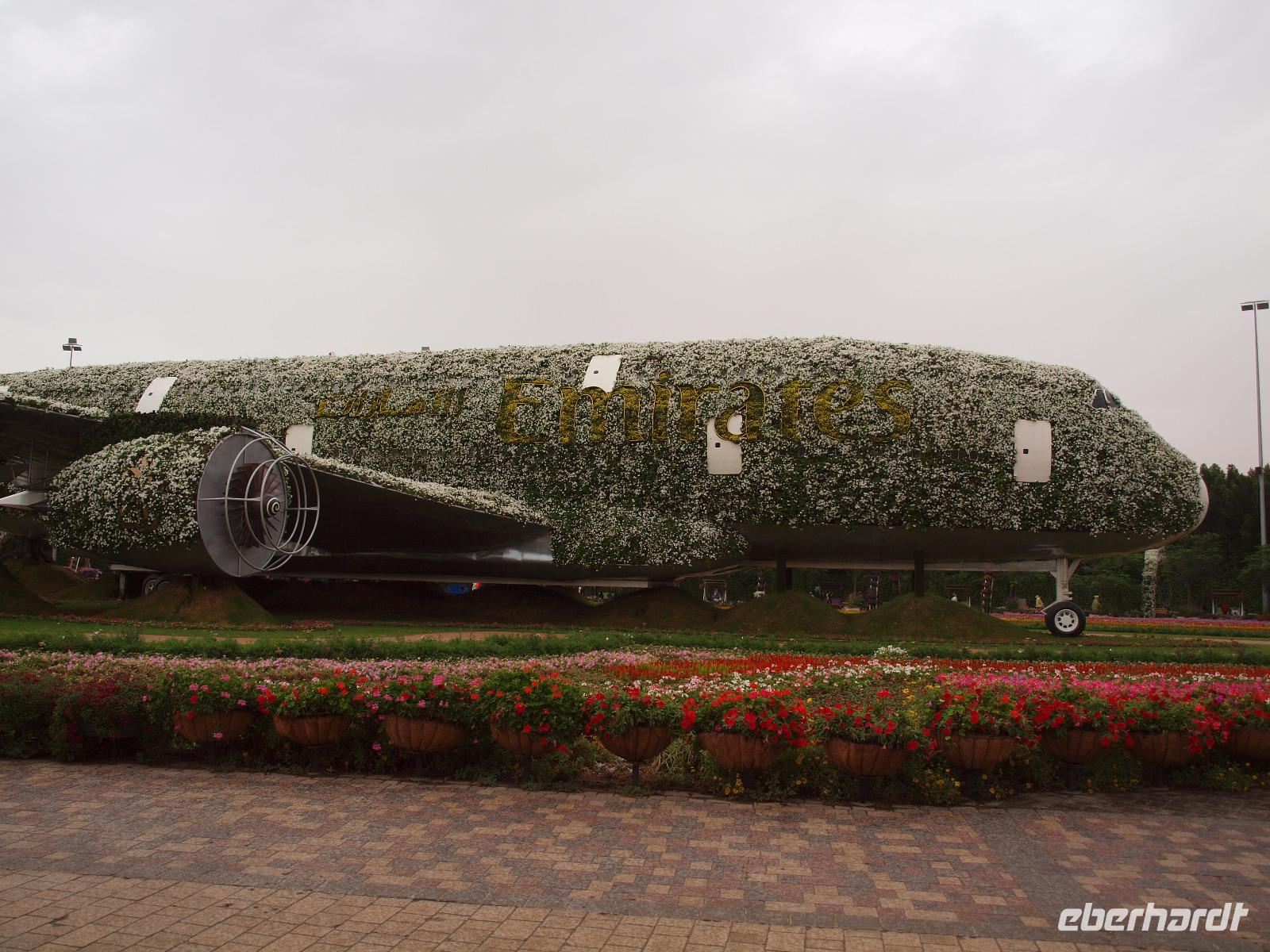 Wir verlassen Abu Dhabi heute und fahren in das nur knapp 150 km entfernte Dubai. Wir fahren entlang Autobahn und erreichen schon bald das Emirat Dubai. Vorbei am wohl größten freien Markt der Welt in Jebel Ali führt uns der Weg in die Dubai Marina, hier werden wir morgen wieder her kommen und hoffentlich keinen Regen haben... Kurz darauf sieht man schon das Burj Al Arab Hotel. Das Gebäude wurde in Anlehnung an die Segel der Boote entworfen und ist das erste 7*-Hotel der Welt gewesen. Wir versuchen am Strand für einen Fotostopp zu halten, müssen aber einsehen, dass das Wasser am Straßenrand zu hoch ist. Außerdem stehen im Moment zu viele Busse an der Straße, sodass ein leichtes überspringen nicht möglich ist. Wir versuchen unser Glück an einer anderen Stelle und fotografieren das Hotel erst einmal von vorn und probieren morgen unser Glück noch einmal. An der Strandstraße geht es weiter in Richtung Dubai und wir halten für einen weiteren Moment noch an der Jumeirah Moschee, bevor wir in das neue Etihad Museum gehen. Dieses Museum ist erst kürzlich eröffnet worden und wurde der Gründung der vereinten arabischen Emirate gewidmet. Wir sehen viele Bilder aus früheren Tagen, wie es noch vor über 15 Jahren in den VAE aussah und sind noch einmal mehr erstaunt darüber, wie schnell sich ein Land entwickeln kann. Anja führt uns durch das Museum und gibt noch weitere interessante Fakten an uns weiter, denn die Ausstellungen an sich sind auf arabisch oder englisch. Nach der Besichtigung fahren wir in unser Hotel im Stadtteil Bur Dubai und unmittelbarer Nähe zum Dubai Creek. Da wir noch so viel Zeit haben ziehen wir den Museumsbesuch vom übernächsten Tag einfach vor und gehen in das gegenüberliegende Dubai Museum. Das Museum ist ein altes Fort und wurde früher von den Einheimischen bewohnt. Hier wird die Geschichte Dubais dargestellt und erklärt. Die Ausstellungsräume befinden sich unterirdisch und im Innenhof sind ein Boot und Holzhäuschen zu sehen. Nach der Besichtigungstour ist auch unser Chauffeur wieder für uns da und bringt uns noch in die Miracle Gardens. Dabei handelt es sich um eine Parkanlage die den größten Blumengarten der Welt bbeherbergt. Über 45 Millionen Blumen bringen uns in verschiedenen Skulpturen und Dekorationen die Besucher zum staunen. Denn eins ist klar, man kann es eigentlich nur als Wunder bezeichnen: ein riesiger Blumengarten mitten in der Wüste. Am frühen Abend kehren wir in unser Hotel zurück und treffen uns später zum gemeinsamen Abendessen im Hotelrestaurant.