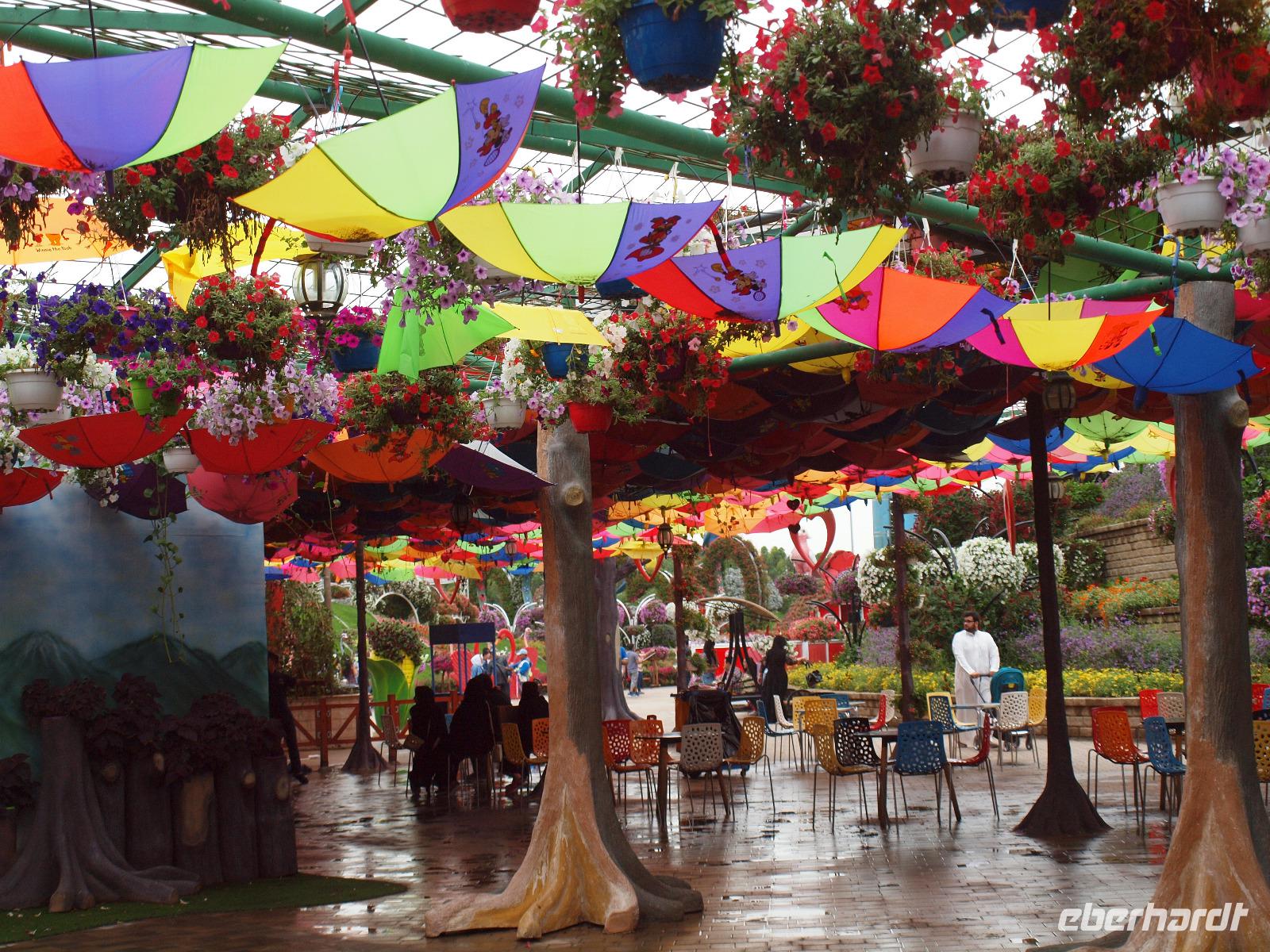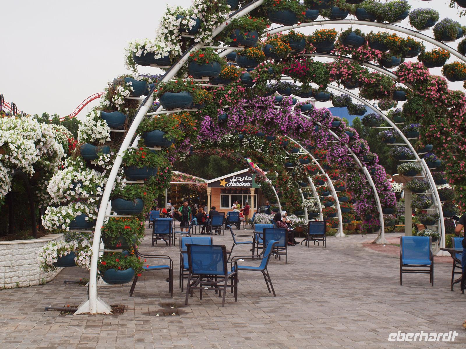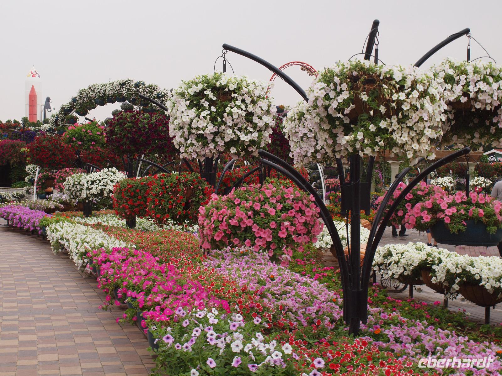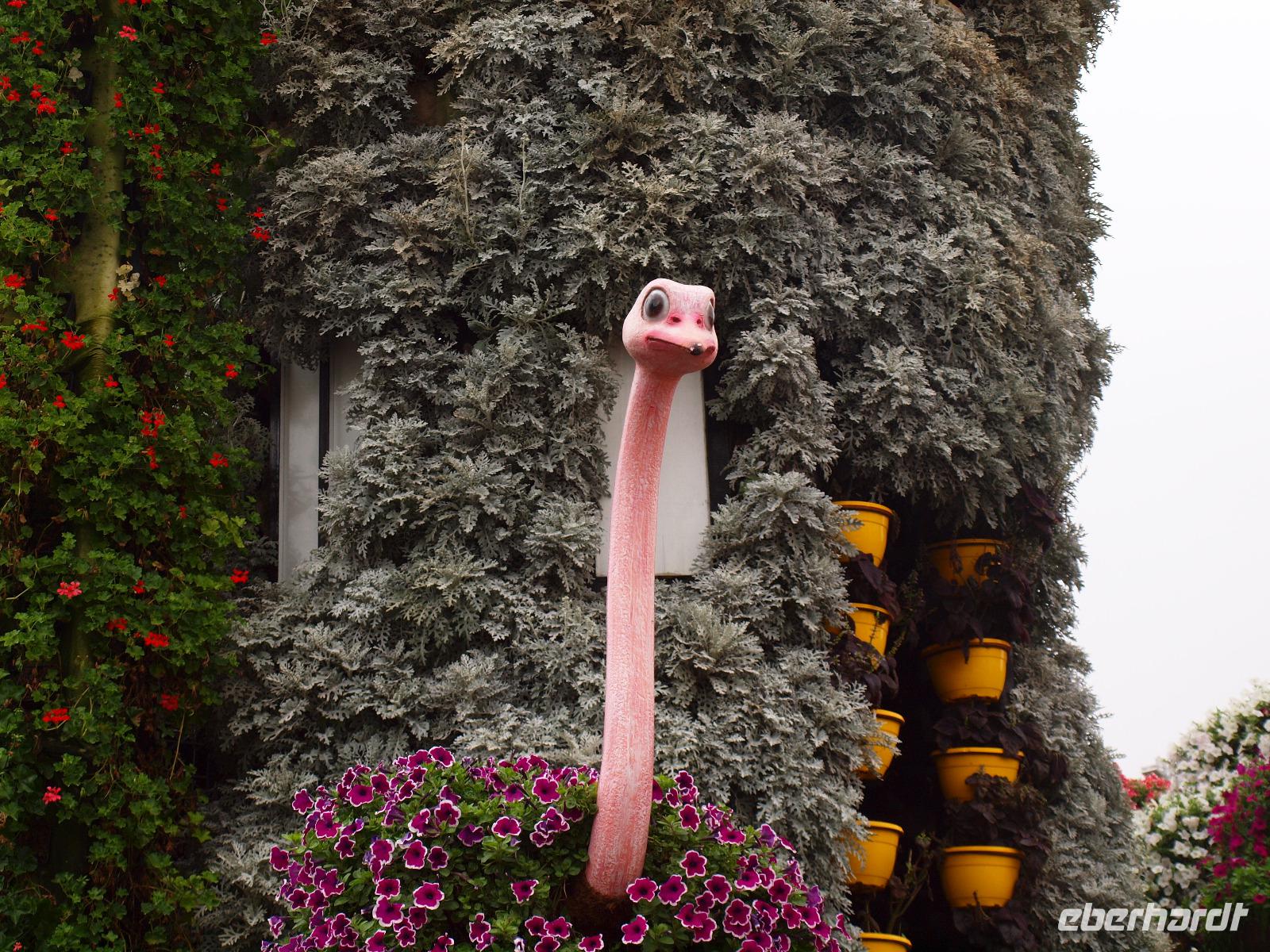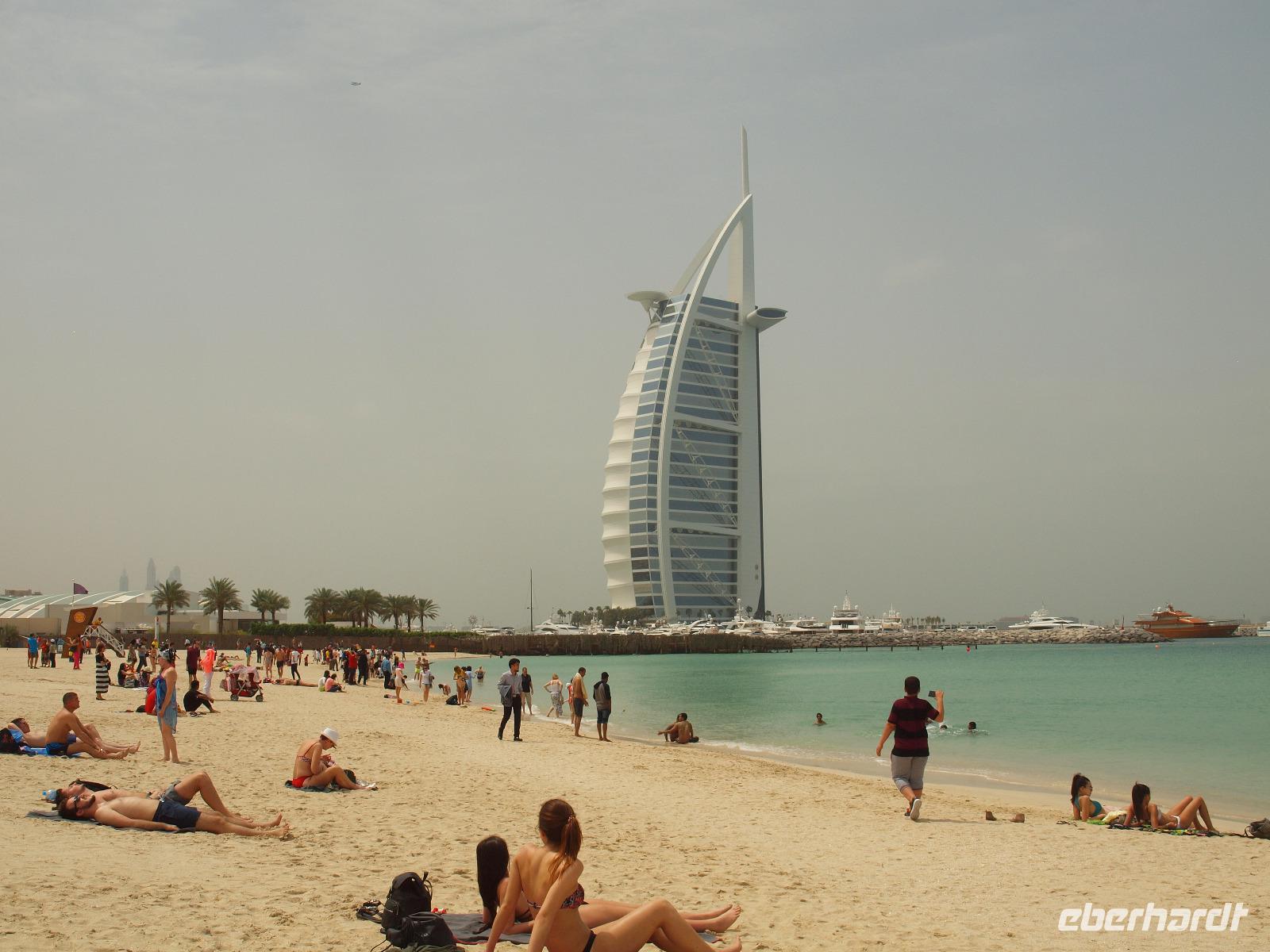 Wir verlassen Abu Dhabi heute und fahren in das nur knapp 150 km entfernte Dubai. Wir fahren entlang Autobahn und erreichen schon bald das Emirat Dubai. Vorbei am wohl größten freien Markt der Welt in Jebel Ali führt uns der Weg in die Dubai Marina, hier werden wir morgen wieder her kommen und hoffentlich keinen Regen haben... Kurz darauf sieht man schon das Burj Al Arab Hotel. Das Gebäude wurde in Anlehnung an die Segel der Boote entworfen und ist das erste 7*-Hotel der Welt gewesen. Wir versuchen am Strand für einen Fotostopp zu halten, müssen aber einsehen, dass das Wasser am Straßenrand zu hoch ist. Außerdem stehen im Moment zu viele Busse an der Straße, sodass ein leichtes überspringen nicht möglich ist. Wir versuchen unser Glück an einer anderen Stelle und fotografieren das Hotel erst einmal von vorn und probieren morgen unser Glück noch einmal. An der Strandstraße geht es weiter in Richtung Dubai und wir halten für einen weiteren Moment noch an der Jumeirah Moschee, bevor wir in das neue Etihad Museum gehen. Dieses Museum ist erst kürzlich eröffnet worden und wurde der Gründung der vereinten arabischen Emirate gewidmet. Wir sehen viele Bilder aus früheren Tagen, wie es noch vor über 15 Jahren in den VAE aussah und sind noch einmal mehr erstaunt darüber, wie schnell sich ein Land entwickeln kann. Anja führt uns durch das Museum und gibt noch weitere interessante Fakten an uns weiter, denn die Ausstellungen an sich sind auf arabisch oder englisch. Nach der Besichtigung fahren wir in unser Hotel im Stadtteil Bur Dubai und unmittelbarer Nähe zum Dubai Creek. Da wir noch so viel Zeit haben ziehen wir den Museumsbesuch vom übernächsten Tag einfach vor und gehen in das gegenüberliegende Dubai Museum. Das Museum ist ein altes Fort und wurde früher von den Einheimischen bewohnt. Hier wird die Geschichte Dubais dargestellt und erklärt. Die Ausstellungsräume befinden sich unterirdisch und im Innenhof sind ein Boot und Holzhäuschen zu sehen. Nach der Besichtigungstour ist auch unser Chauffeur wieder für uns da und bringt uns noch in die Miracle Gardens. Dabei handelt es sich um eine Parkanlage die den größten Blumengarten der Welt bbeherbergt. Über 45 Millionen Blumen bringen uns in verschiedenen Skulpturen und Dekorationen die Besucher zum staunen. Denn eins ist klar, man kann es eigentlich nur als Wunder bezeichnen: ein riesiger Blumengarten mitten in der Wüste. Am frühen Abend kehren wir in unser Hotel zurück und treffen uns später zum gemeinsamen Abendessen im Hotelrestaurant.