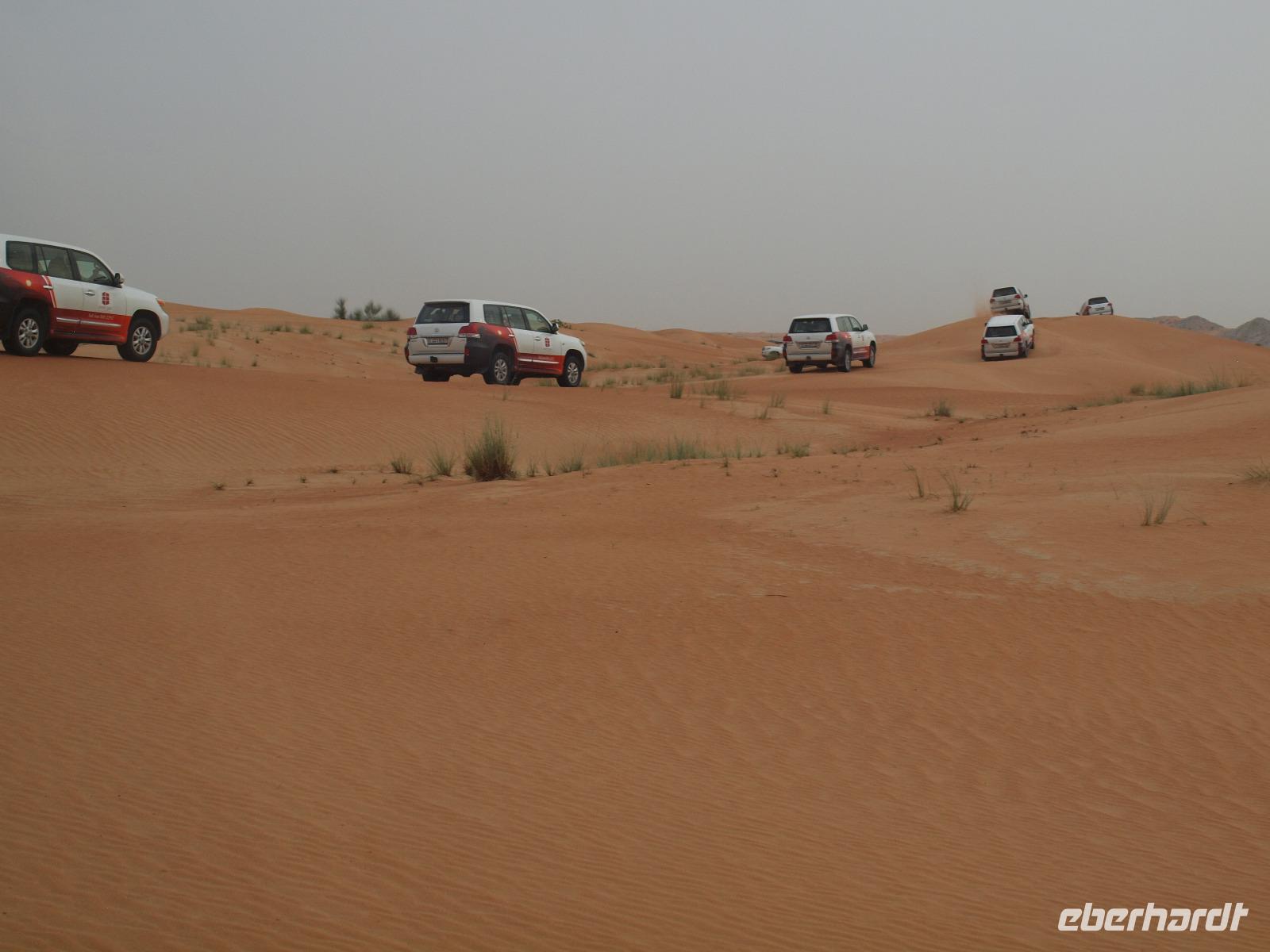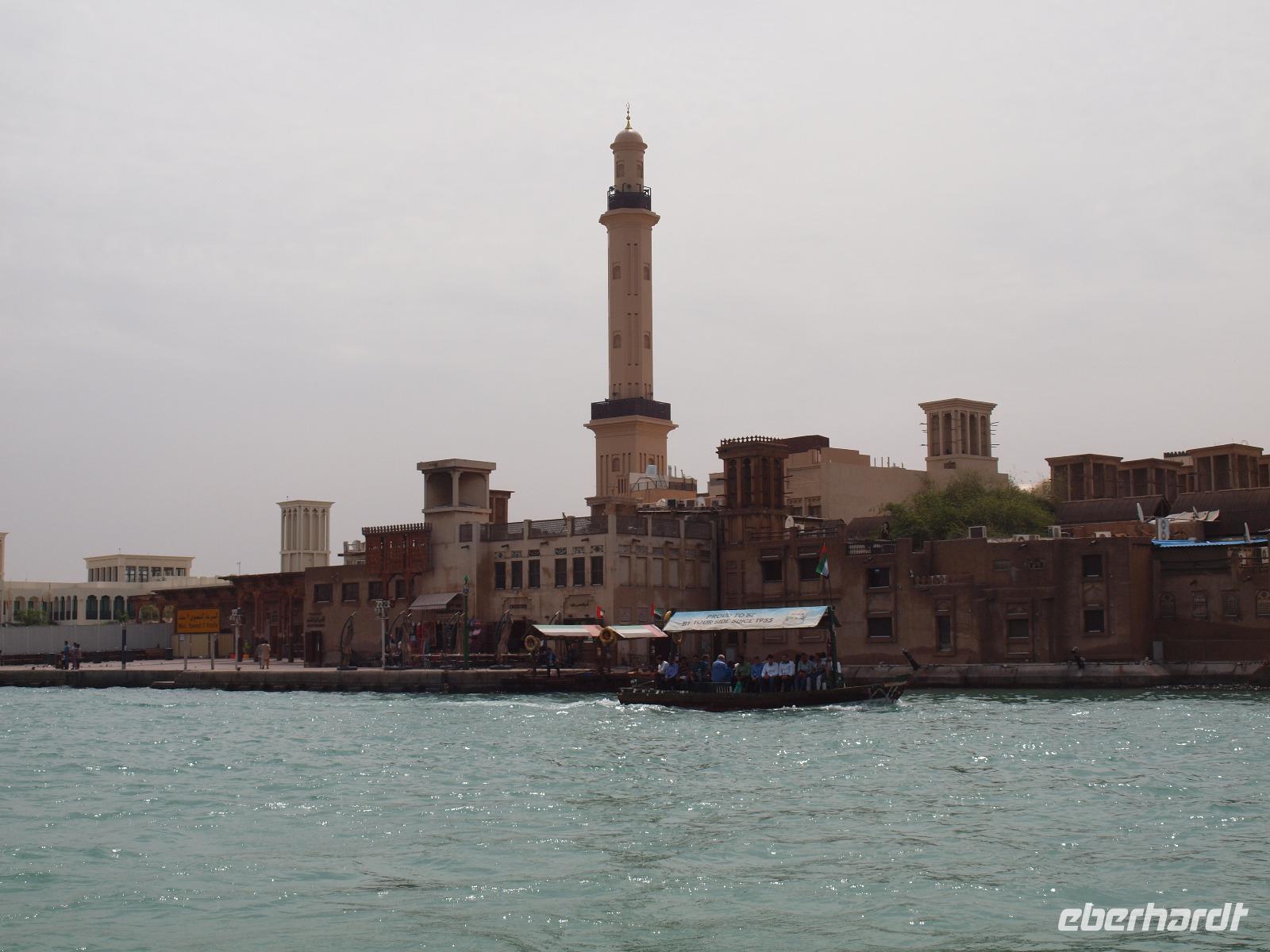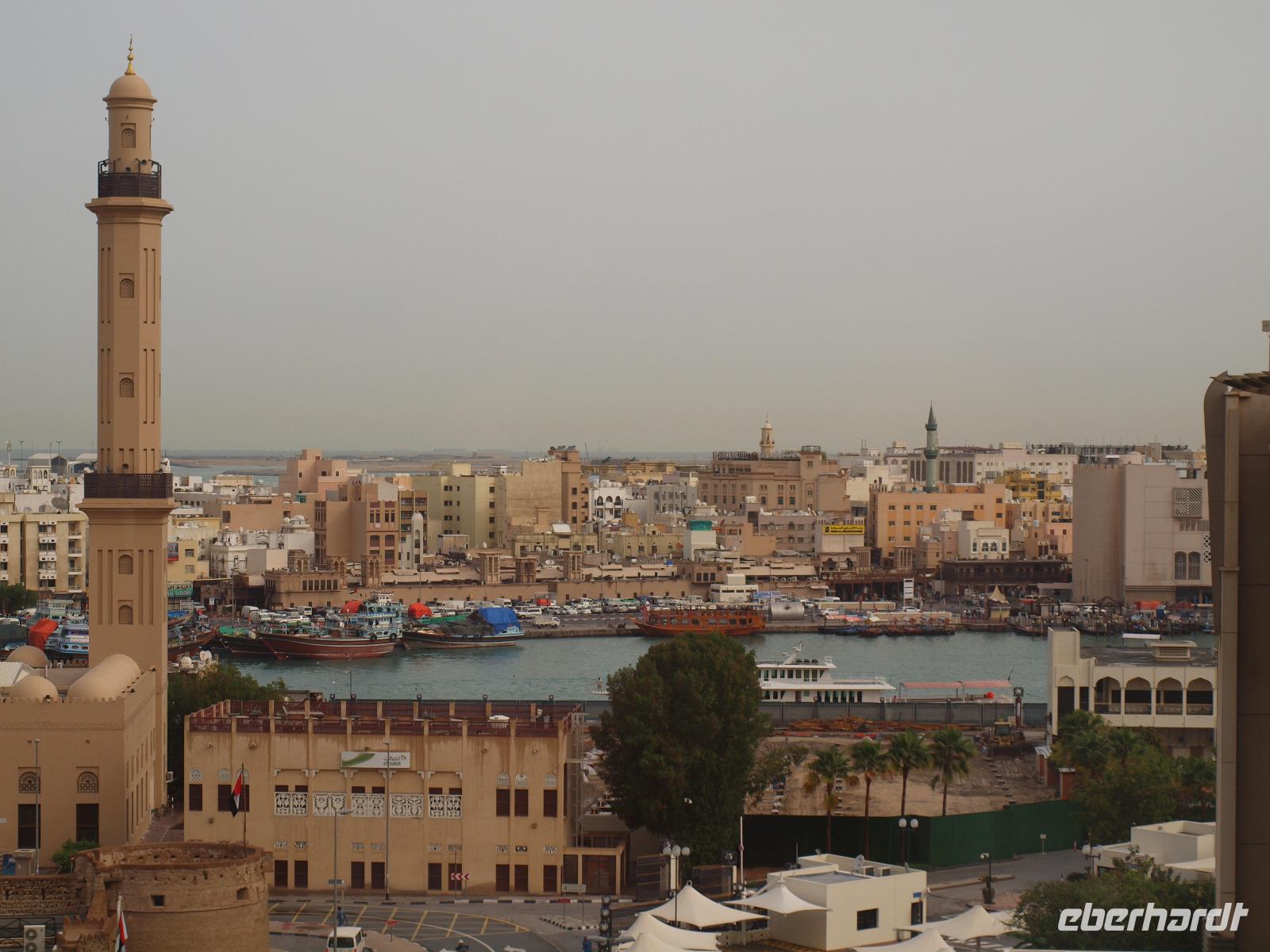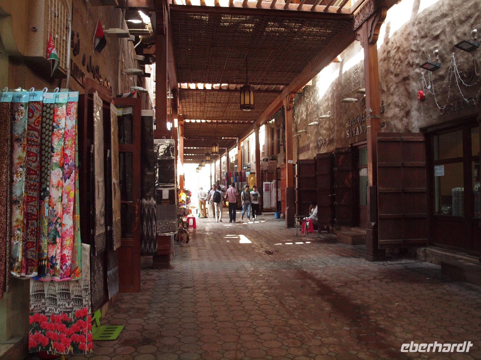 Als Kontrastprogramm zu gestern widmen wir uns heute noch einmal der Geschichte Dubais. Gemeinsam mit Anja spazieren wir durch unseren Stadtteil, vorbei an den alten Häusern, die liebevoll restauriert wurden und heute kleine Kunststudios und auch ein Kaffeemuseum beherbergen. Wir laufen weiter entlang des Dubai Creeks in Richtung Souk. Hier haben sich schon früher die Stoffhändler aus Indien nieder gelassen und so werden hier auch heute noch verschiedene Stoffe, Tücher, Schals und Kleidungsstücke angeboten. Am Wasser angekommen fahren wir dann mit der Abra hinüber auf die andere Seite des Dubai Creeks um dort den Gewürz- und Goldsouk zu besuchen. Um den Vormittag abzurunden fahren wir noch eine kleine Extrarunde auf dem Dubai Creek bevor wir wieder auf der Seite unseres Hotels ankommen. Nun haben wir noch etwas Freizeit bis zum Nachmittag bis uns die Jeeps für die Wüstensafari abholen. Auf die Minute stehen zwei Fahrer mit Ihren Jeeps vorm Hotel und bringen uns zum Treffpunkt am Anfang der Wüste. Es dauert ein wenig, bis alle ankommen, doch die Zeit können wir fürs Fotografieren nutzen. Und dann geht es endlich los. Die tollkühnen voran und immer schön hintereinander mit ausreichend Abstand fahren wir über die Sanddünen. Mal mehr, mal weniger Gas, eine Drehung rechts und wieder eine links. Es geht rauf und runter, zwischendurch kreuzen auch mal Kamelherden unseren Weg. Nach einer Weile versammelt sich die Karawane wieder und wir legen eine kleine Pause ein um den Druck der Reifen wieder zu erhöhen, denn wir sind schon bald da. Nach ein paar weiteren Kilometern erreichen wir schließlich das Wüstencamp. In der Mitte befindet sich Bühne, hier werden im Laufe des Abends ein Tänzer und eine Bauchtänzerin zu sehen sein. Außerdem können sich die Frauen unter uns mit Henna verschönern lassen oder aber man probiert sich an der Wasserpfeife. Ein wirklich schöner und abwechslungsreicher Abend in der Wüste neigt sich nach und nach dem Ende und schon bald werden wir wieder zurück ins Hotel gebracht.