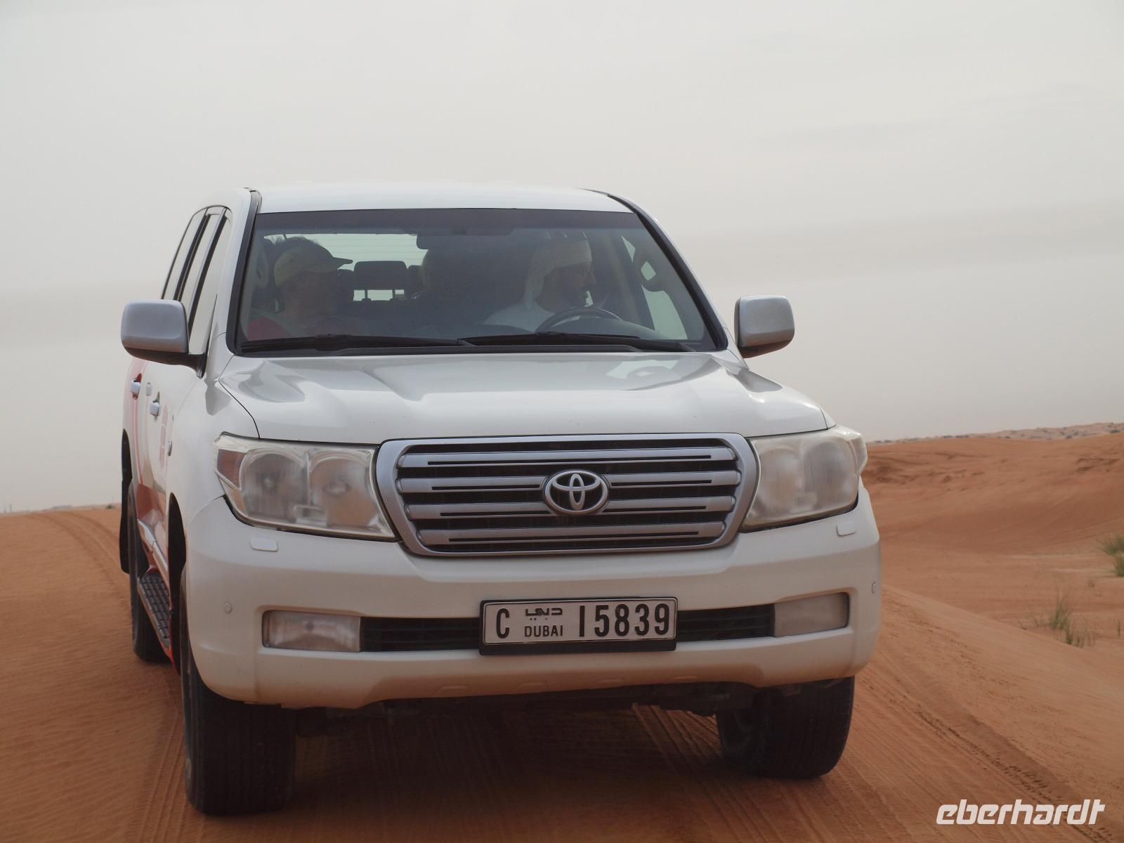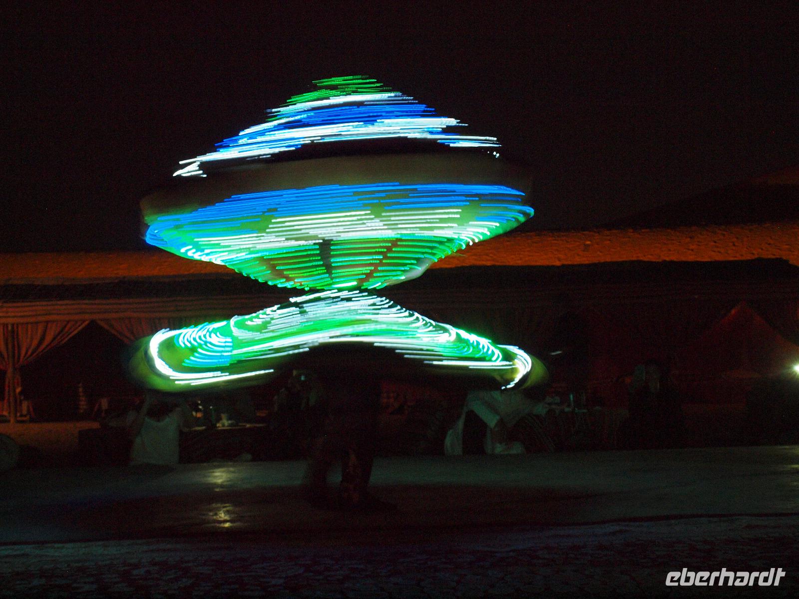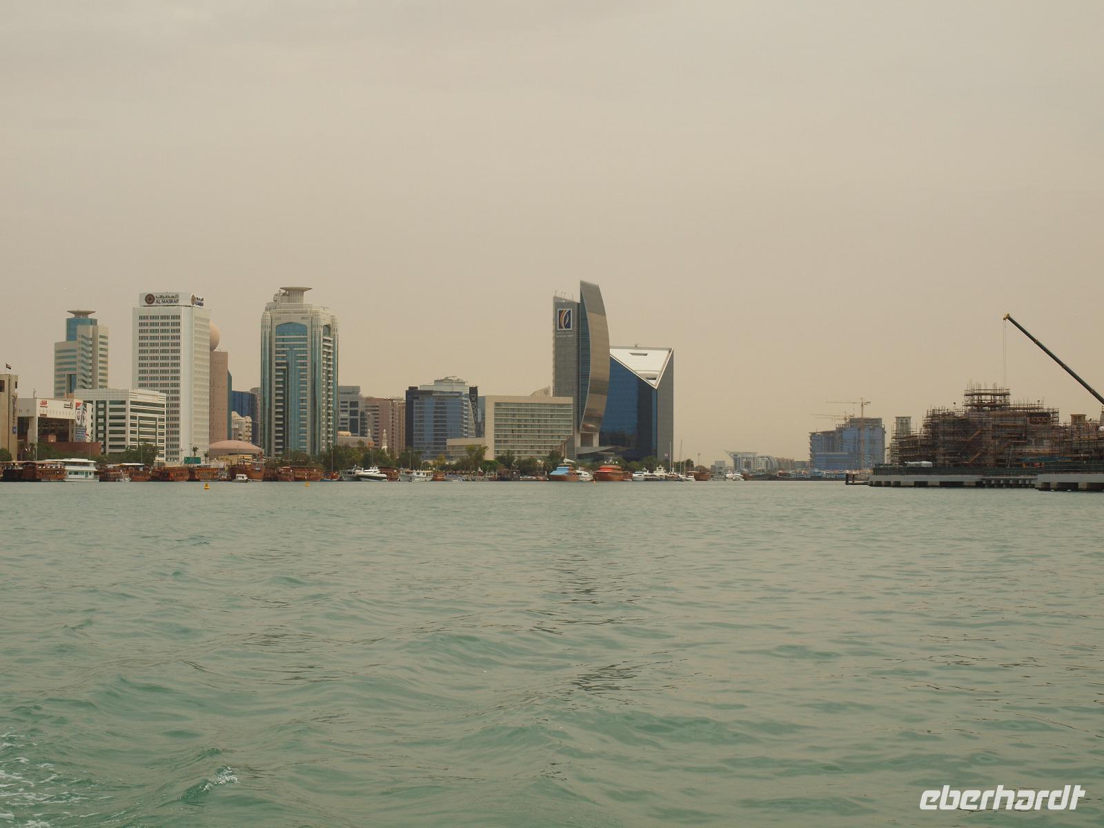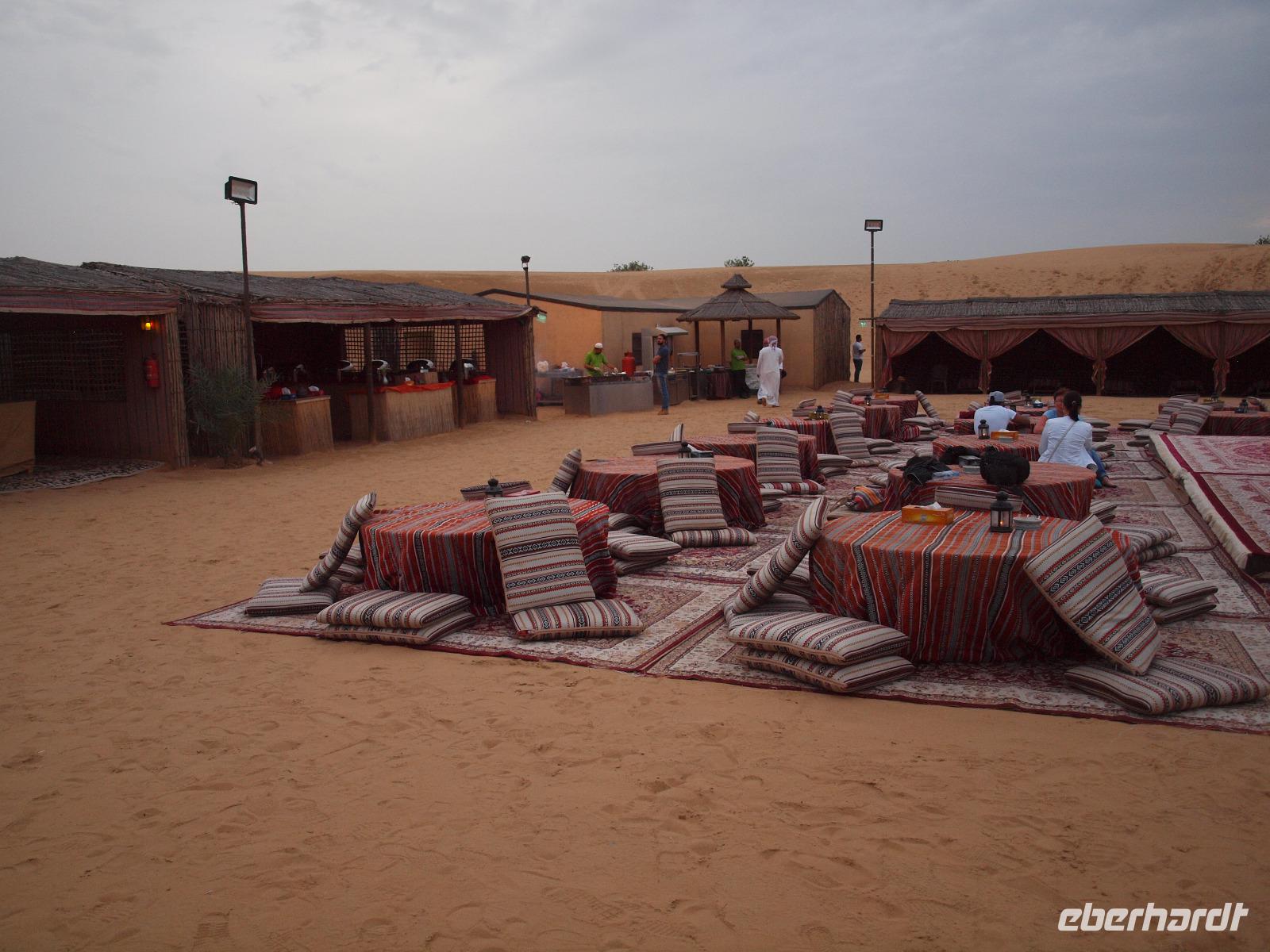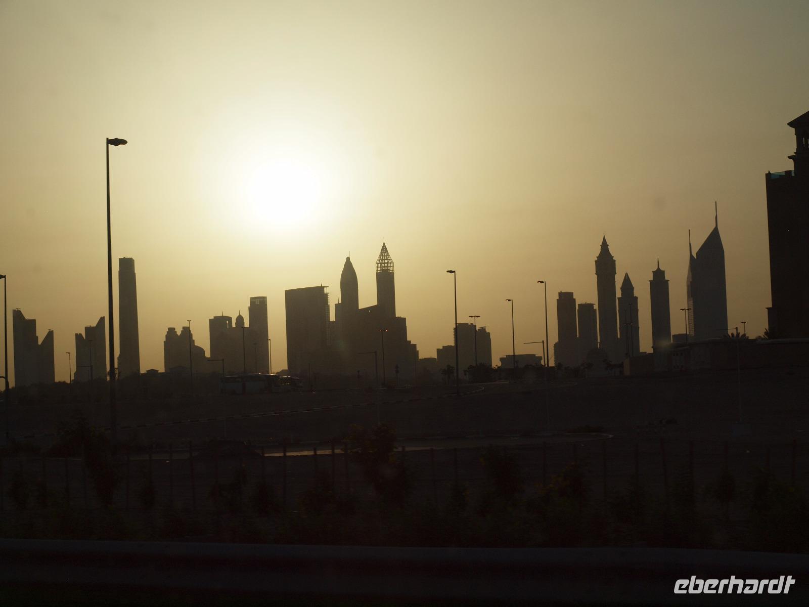 Als Kontrastprogramm zu gestern widmen wir uns heute noch einmal der Geschichte Dubais. Gemeinsam mit Anja spazieren wir durch unseren Stadtteil, vorbei an den alten Häusern, die liebevoll restauriert wurden und heute kleine Kunststudios und auch ein Kaffeemuseum beherbergen. Wir laufen weiter entlang des Dubai Creeks in Richtung Souk. Hier haben sich schon früher die Stoffhändler aus Indien nieder gelassen und so werden hier auch heute noch verschiedene Stoffe, Tücher, Schals und Kleidungsstücke angeboten. Am Wasser angekommen fahren wir dann mit der Abra hinüber auf die andere Seite des Dubai Creeks um dort den Gewürz- und Goldsouk zu besuchen. Um den Vormittag abzurunden fahren wir noch eine kleine Extrarunde auf dem Dubai Creek bevor wir wieder auf der Seite unseres Hotels ankommen. Nun haben wir noch etwas Freizeit bis zum Nachmittag bis uns die Jeeps für die Wüstensafari abholen. Auf die Minute stehen zwei Fahrer mit Ihren Jeeps vorm Hotel und bringen uns zum Treffpunkt am Anfang der Wüste. Es dauert ein wenig, bis alle ankommen, doch die Zeit können wir fürs Fotografieren nutzen. Und dann geht es endlich los. Die tollkühnen voran und immer schön hintereinander mit ausreichend Abstand fahren wir über die Sanddünen. Mal mehr, mal weniger Gas, eine Drehung rechts und wieder eine links. Es geht rauf und runter, zwischendurch kreuzen auch mal Kamelherden unseren Weg. Nach einer Weile versammelt sich die Karawane wieder und wir legen eine kleine Pause ein um den Druck der Reifen wieder zu erhöhen, denn wir sind schon bald da. Nach ein paar weiteren Kilometern erreichen wir schließlich das Wüstencamp. In der Mitte befindet sich Bühne, hier werden im Laufe des Abends ein Tänzer und eine Bauchtänzerin zu sehen sein. Außerdem können sich die Frauen unter uns mit Henna verschönern lassen oder aber man probiert sich an der Wasserpfeife. Ein wirklich schöner und abwechslungsreicher Abend in der Wüste neigt sich nach und nach dem Ende und schon bald werden wir wieder zurück ins Hotel gebracht.