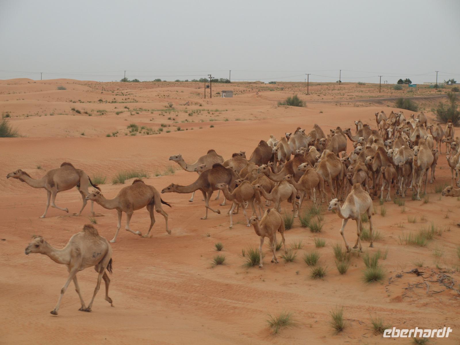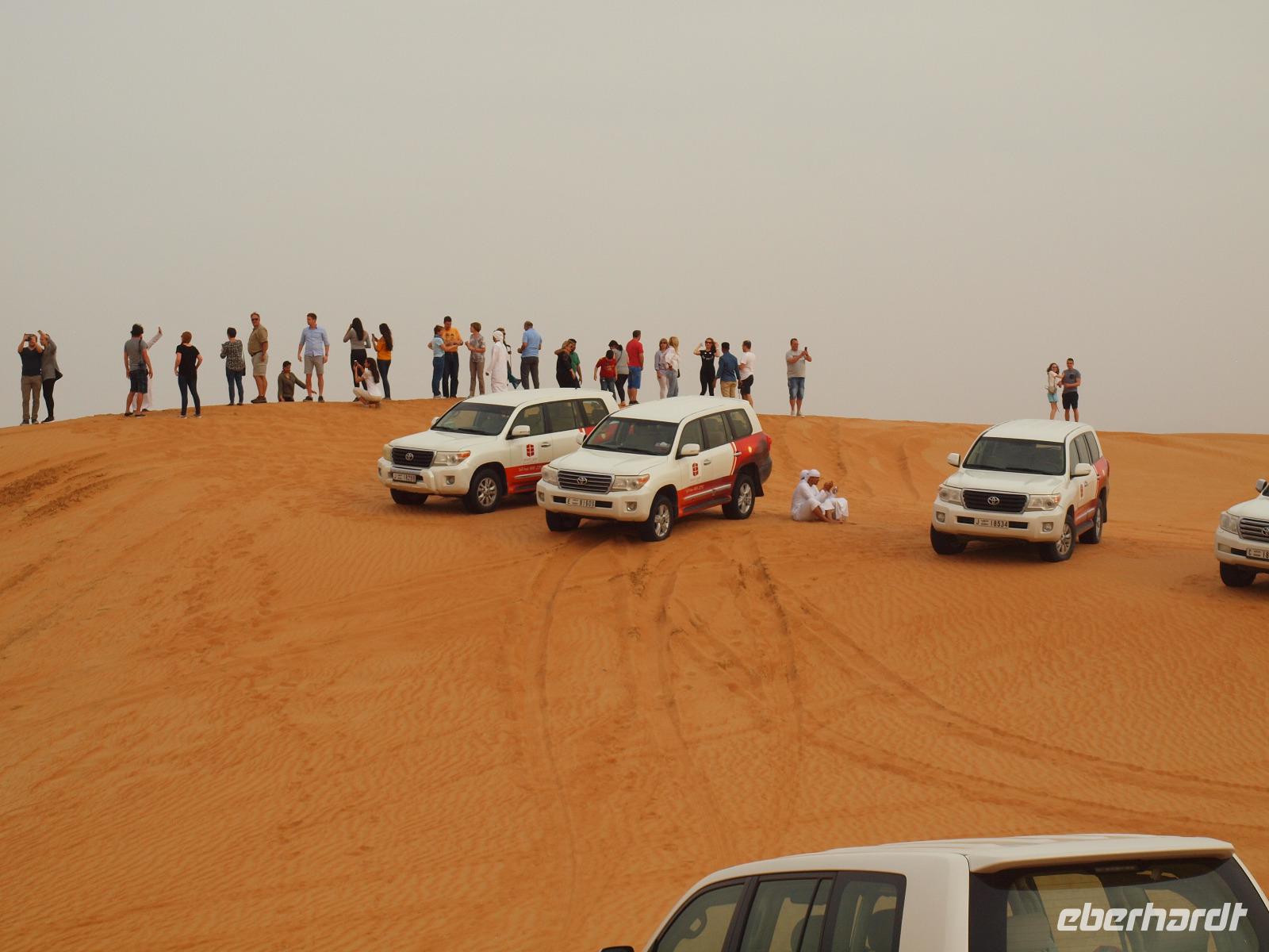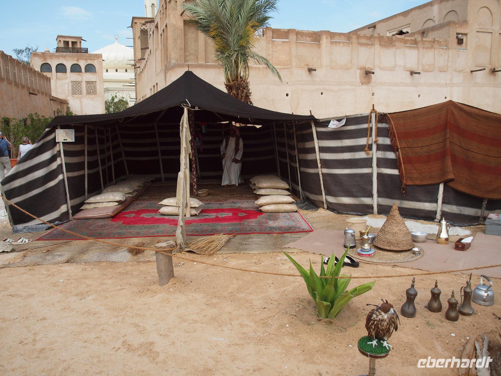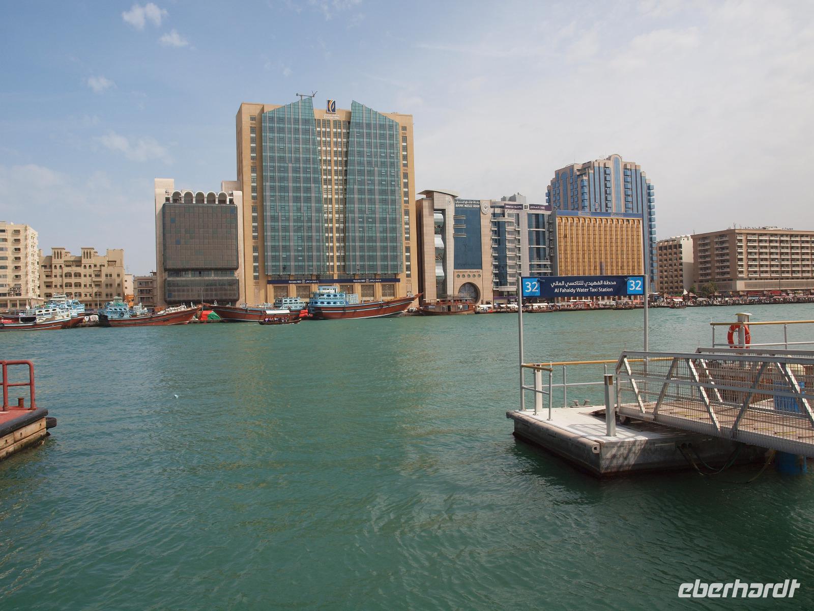 Als Kontrastprogramm zu gestern widmen wir uns heute noch einmal der Geschichte Dubais. Gemeinsam mit Anja spazieren wir durch unseren Stadtteil, vorbei an den alten Häusern, die liebevoll restauriert wurden und heute kleine Kunststudios und auch ein Kaffeemuseum beherbergen. Wir laufen weiter entlang des Dubai Creeks in Richtung Souk. Hier haben sich schon früher die Stoffhändler aus Indien nieder gelassen und so werden hier auch heute noch verschiedene Stoffe, Tücher, Schals und Kleidungsstücke angeboten. Am Wasser angekommen fahren wir dann mit der Abra hinüber auf die andere Seite des Dubai Creeks um dort den Gewürz- und Goldsouk zu besuchen. Um den Vormittag abzurunden fahren wir noch eine kleine Extrarunde auf dem Dubai Creek bevor wir wieder auf der Seite unseres Hotels ankommen. Nun haben wir noch etwas Freizeit bis zum Nachmittag bis uns die Jeeps für die Wüstensafari abholen. Auf die Minute stehen zwei Fahrer mit Ihren Jeeps vorm Hotel und bringen uns zum Treffpunkt am Anfang der Wüste. Es dauert ein wenig, bis alle ankommen, doch die Zeit können wir fürs Fotografieren nutzen. Und dann geht es endlich los. Die tollkühnen voran und immer schön hintereinander mit ausreichend Abstand fahren wir über die Sanddünen. Mal mehr, mal weniger Gas, eine Drehung rechts und wieder eine links. Es geht rauf und runter, zwischendurch kreuzen auch mal Kamelherden unseren Weg. Nach einer Weile versammelt sich die Karawane wieder und wir legen eine kleine Pause ein um den Druck der Reifen wieder zu erhöhen, denn wir sind schon bald da. Nach ein paar weiteren Kilometern erreichen wir schließlich das Wüstencamp. In der Mitte befindet sich Bühne, hier werden im Laufe des Abends ein Tänzer und eine Bauchtänzerin zu sehen sein. Außerdem können sich die Frauen unter uns mit Henna verschönern lassen oder aber man probiert sich an der Wasserpfeife. Ein wirklich schöner und abwechslungsreicher Abend in der Wüste neigt sich nach und nach dem Ende und schon bald werden wir wieder zurück ins Hotel gebracht.
