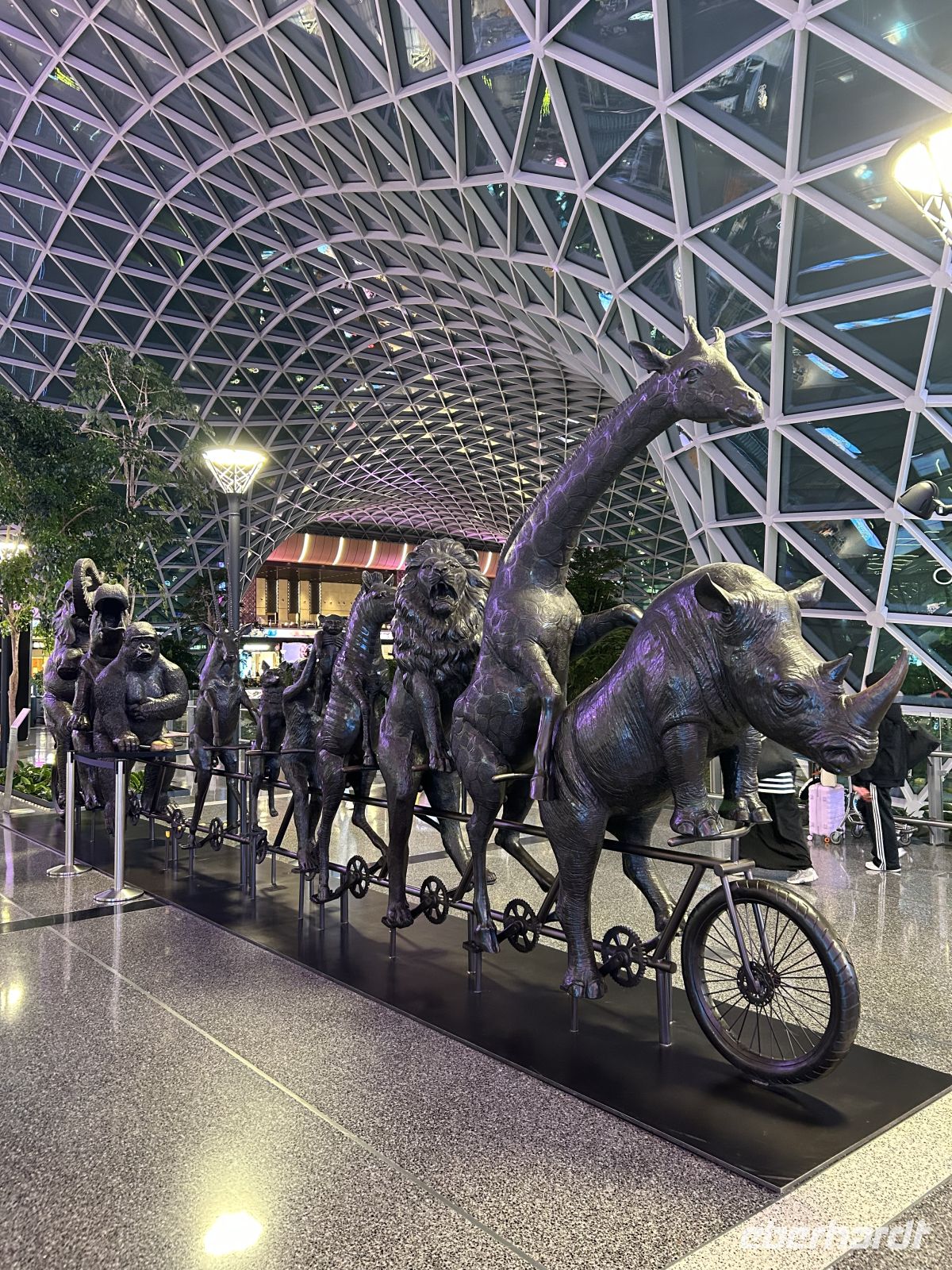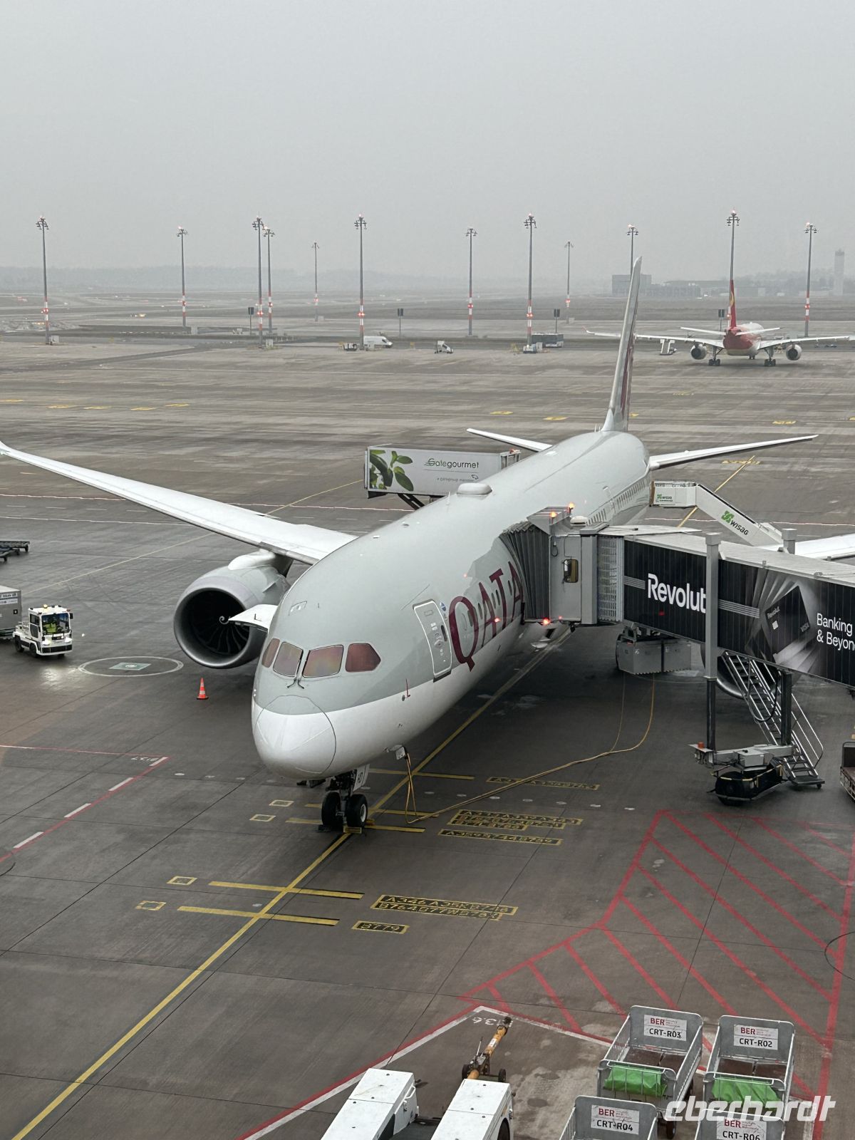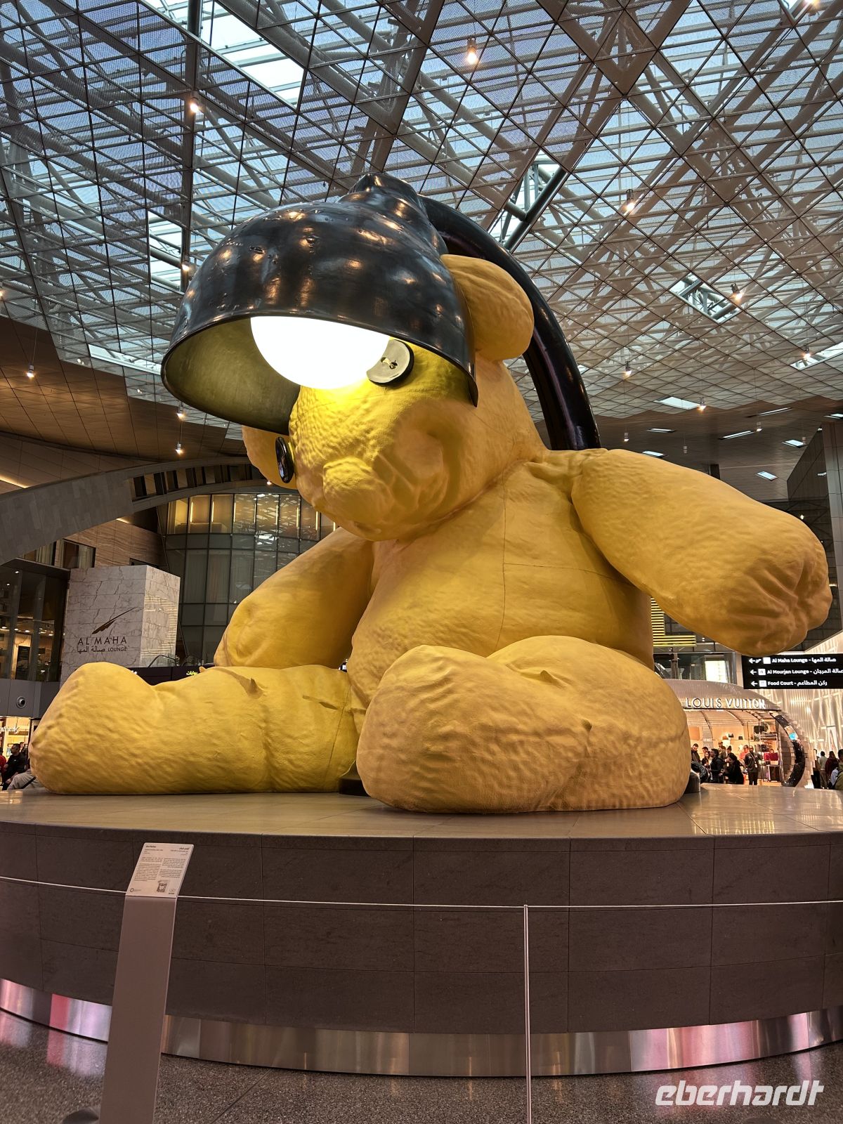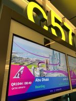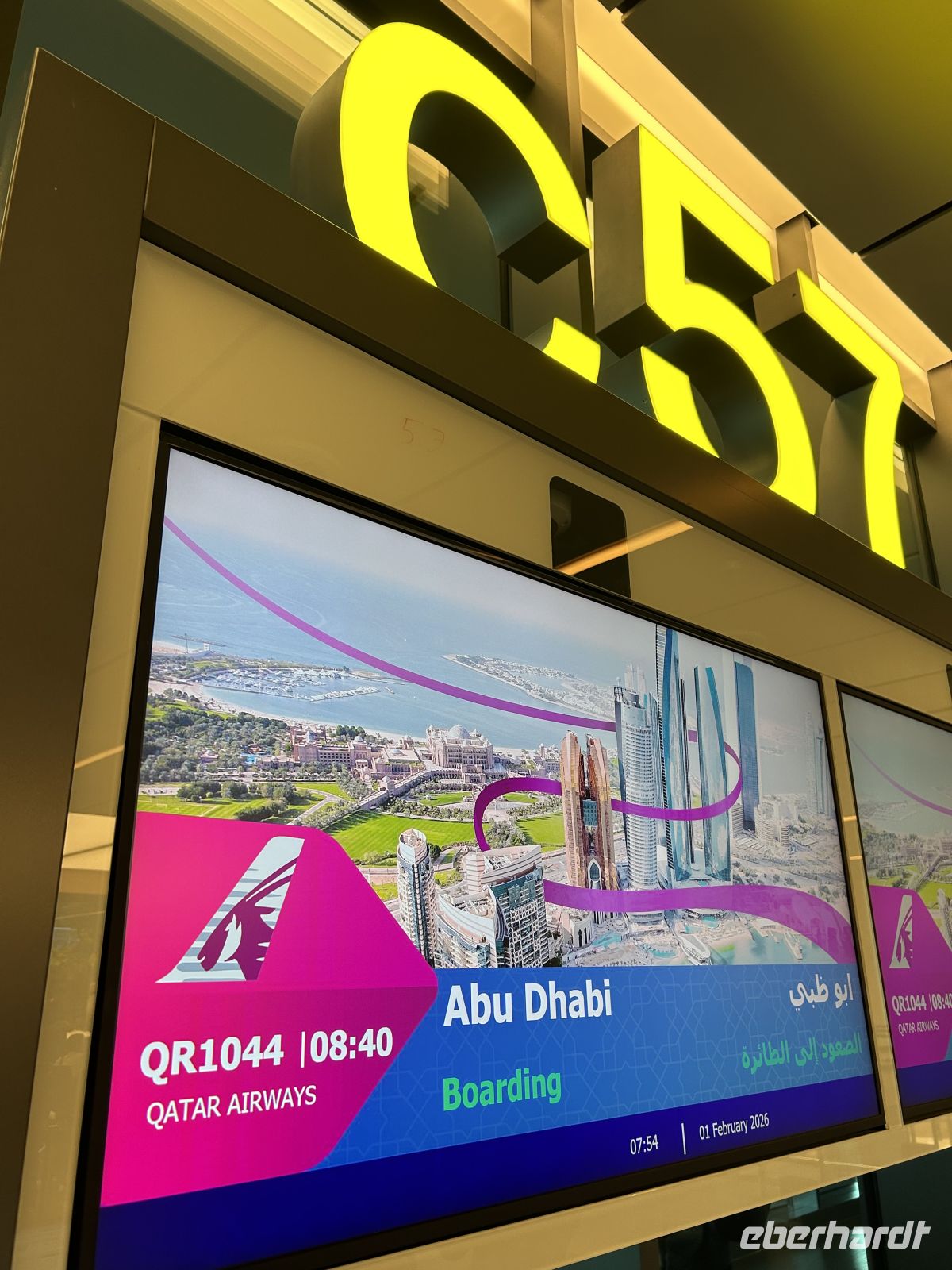 Am Flughafen Doha zeigt sich Qatar Airways beim Check-in und an der Kofferabgabe leider nicht von der glänzenden Seite. Dafür laufen Passkontrolle und Sicherheitscheck erstaunlich schnell. Wir genießen noch einmal die Weitläufigkeit des Flughafens – und irgendwann hebt der Vogel dann auch endlich ab. Trotz verspätetem Abflug landen wir pünktlich in Abu Dhabi, der Hauptstadt der VAE.